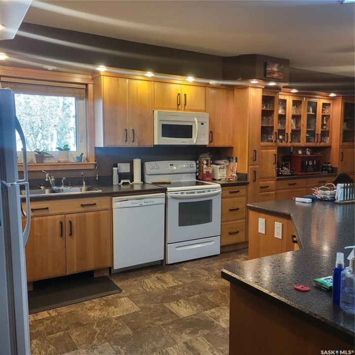 RM of Cana #214. Located only 7 miles east of Melville along Hwy #15 sits this beautiful and immaculate 11 acre acreage. The sellers are the original owners and built the house and developed the yard site. The house hade double 2" x 4" walls, newer triple pane PVC windows, stucco exterior, custom built kitchen cabinets, wood fireplace and composite decking on both decks. there are 3 bedrooms on the main floor plus another bedroom in the basement. the master bedroom also has a 2 pc ensuite. The laundry room is conveniently setup at the back entrance. The basement is fully developed with a huge family room, wet bar and another bathroom. The property is hooked up to the Yorkville water pipeline for an excellent water source. there is also a large dugout with its own pressure system in the house and can be used to water the garden and lawn area. The 28' x 32' garage has matching stucco finish with the house and has power and cement floor. There are numerous garden sheds, some with power, for extra storage. The fire pit area has brick walk way, with a TV stand and is well sheltered with trees and shrubs.