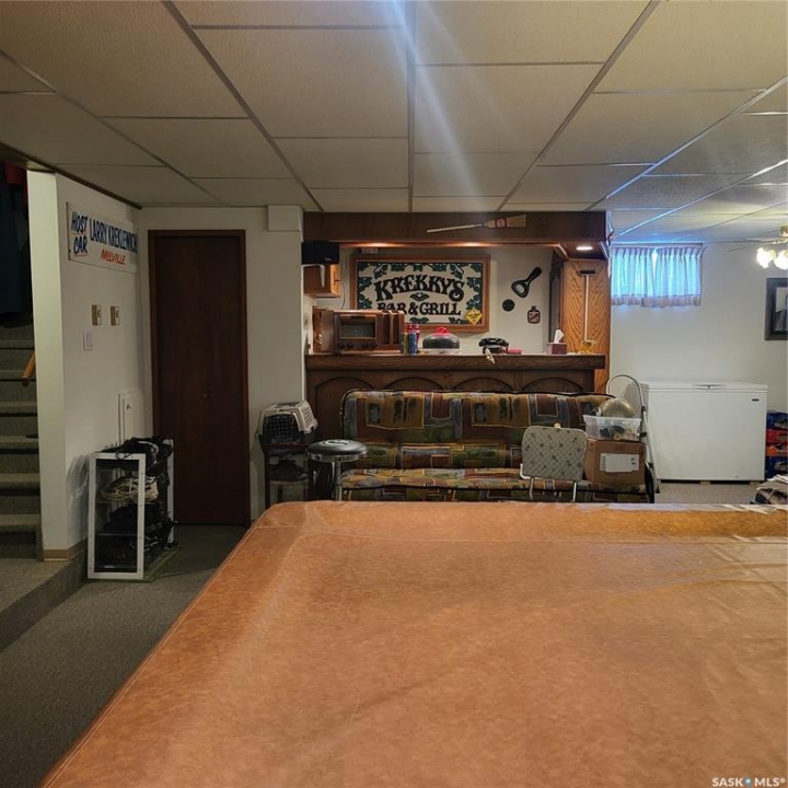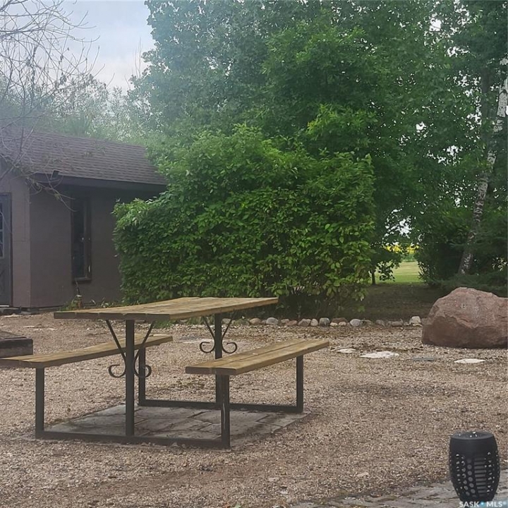 RM of Cana #214. Located only 7 miles east of Melville along Hwy #15 sits this beautiful quarter of land with an immaculate 11 acre yard site. The sellers are the original owners and built the house and developed the yard site. The house hade double 2" x 4" walls, newer triple pane PVC windows, stucco exterior, custom built kitchen cabinets, wood fireplace and composite decking on both decks. there are 3 bedrooms on the main floor plus another bedroom in the basement. the master bedroom also has a 2 pc ensuite. The laundry room is conveniently setup at the back entrance. The basement is fully developed with a huge family room, wet bar and another bathroom. The property is hooked up to the Yorkville water pipeline for an excellent water source. there is also a large dugout with a well beside it and has a pressure system in the house and can be used to water the garden and lawn area. The 28' x 32' garage has matching stucco finish with the house and has power and cement floor. There are numerous garden sheds, some with power, for extra storage. The fire pit area has brick walk way, with a TV stand and is well sheltered with trees and shrubs. The balance of the attached quarter has 151 acres of good quality cultivated grain land.
