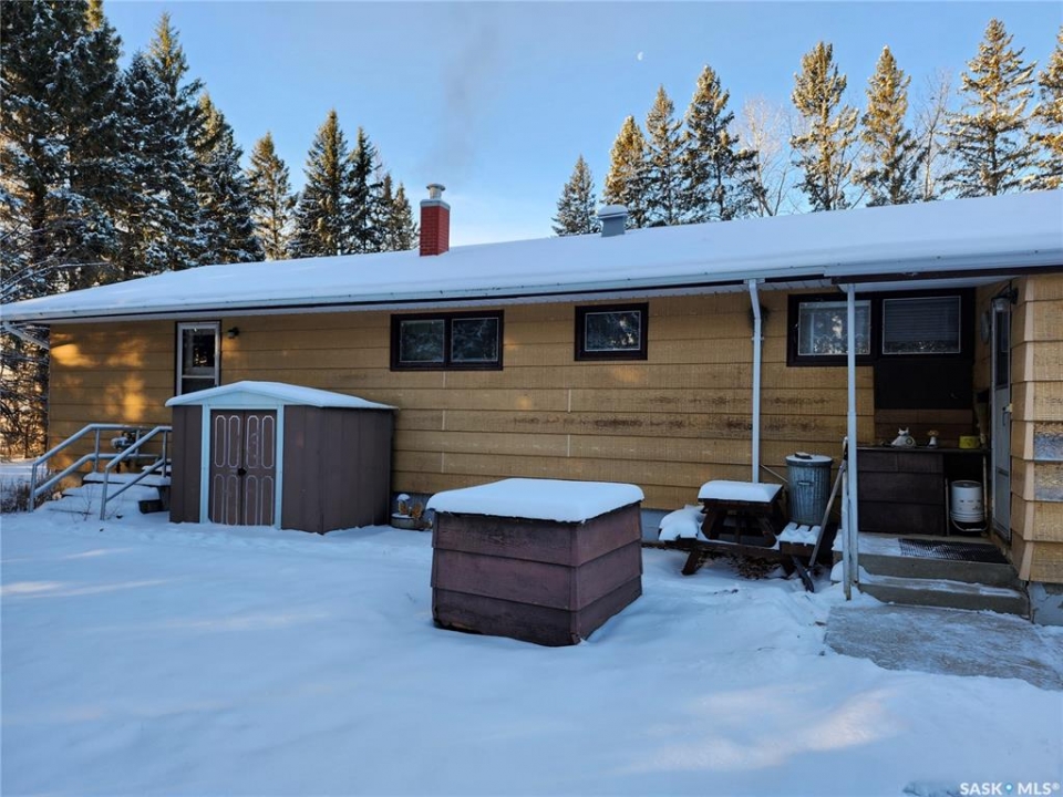 A RARE ACREAGE OPPORTUNITY JUST MINUTES FROM ESTERHAZY Propeties like this RARELY come to market. This exceptional scenic acreage is located just 2km west of Esterhazy and 1 km north of Highway 22. Close enough to town to enjoy NATURAL GAS SERVICE, yet far enough to offer true privacy and tranquility. This 10 acre retreat is surrounded by mature pine trees. It is only a short walk to a secluded valley and creek, and offers a convenient two-minute drive to town. In real estate, LOCATION IS EVERYTHING, and this acreage truly delivers. The solid, well-insulated 1470 sqft home sits in a private, park-like setting framed by sheltering pines. Some rooms were previously used as work and office space, and they provide flexible options for additional bedrooms, hobby rooms, or personalized living space. The property also features a 24x24 detached garage, a workshop, a large outbuilding, a new well pump, a septic pump approx 2 years old, and an electric pump for cistern water. The beautifully maintained yard and garden, along with the surrounding countryside, offer peaceful views and a strong connection to nature. This is an outstanding opportunity for buyers seeking space, privacy, and the convenience of town services in a truly rare acreage setting.