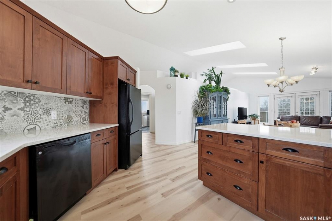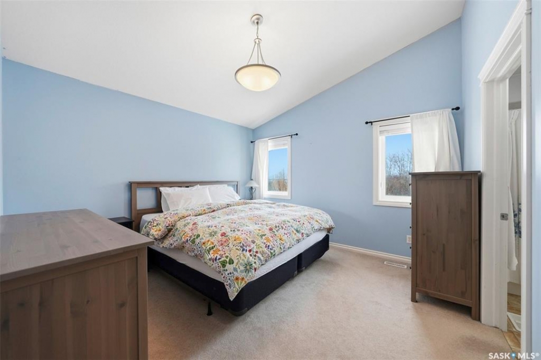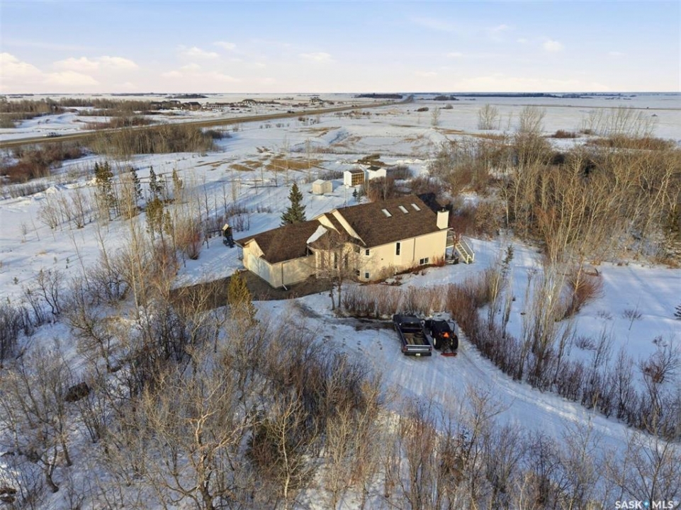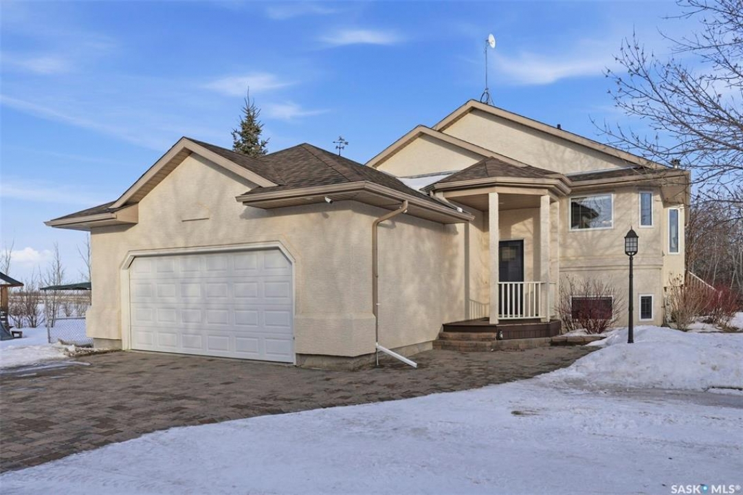 Rare opportunity to own a 14-acre acreage just 10 minutes from Saskatoon city limits. The perfect blend of privacy, efficiency, low utility costs and future potential. Built in 2005 by Ehrenburg, this quality home offers nearly 2,400 sq ft of fully finished well laid out living space. The layout is functional and inviting, with loads of natural light & numerous recent upgrades including new shingles (2023), professionally renovated bathroom (2021), updated flooring (2021), and a patio stone paved driveway. If vaulted ceilings, custom Alder wood cabinets, quartz countertops and countless other special touches don't do it for you, then surely the warm wood burning fireplace in the family room will. Operating costs here are exceptionally low thanks to the geothermal heating system. With healthy potable well water (reverse osmosis in place) and utilities limited to electricity only, this property offers highly efficient and predictable monthly expenses that are in uncharted territory for savings. The septic system is liquid discharge — considered best-case for rural properties — providing simple, low-maintenance operation with no anticipated future complications. Outside, enjoy a mature, established yard site with space to expand, develop, or simply enjoy the peace and quiet of acreage living under open Saskatchewan skies. This acreage is not inside a subdivision so there are no excessive building restrictions, architectural controls or animal restrictions. This property is a beautiful canvas that can be enjoyed today but could easily be transformed into a horse lover's dream. Opportunities this close to Saskatoon don't come up often - especially on 14 acres with a high a quality home, energy efficiency, a beautiful well treed and private yard with subdivision potential. Not to mention it's a paved commute to Saskatoon with very little gravel to your front door. Contact your favourite realtor today for an exclusive showing!