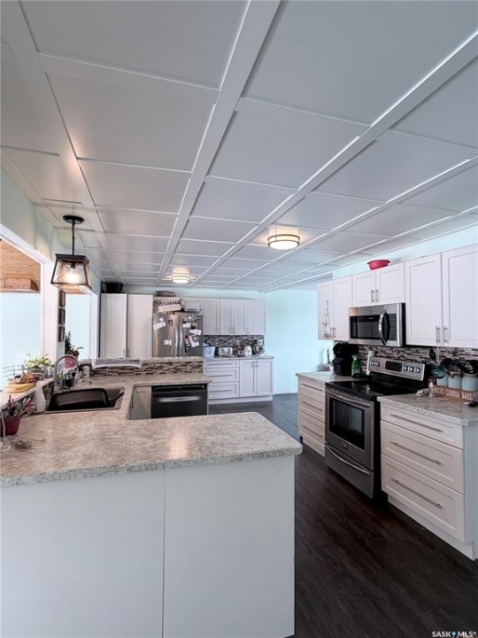 Escape the city and enjoy peaceful, self sufficient prairie living at the move-in ready AK Ranch, located less than an hour from Regina and just minutes to Indian Head. This spacious 5 bedroom, 2 bathroom bungalow offers comfort, functionality, and rural charm. The bright great room features a cozy brand new wood burning stove and large picture windows, while the open kitchen and generous dining area are perfect for everyday living and entertaining. The main floor includes a large primary bedroom with his and hers closets, a second bedroom, and a 4-piece bathroom. The fully renovated lower level provides three additional bedrooms, a family room with ample storage, a 3-piece bathroom, and laundry/utility room. Recent upgrades include a new wood burning stove, Green Sand Water Treatment System, high-efficiency gas furnace, dishwasher, and over the range microwave. Ideal for hobby farmers or those seeking space and independence, the property features multiple powered outbuildings, three fenced areas, a dirt arena, corrals surrounding the barn, and plenty of room for animals, gardening, or storage. An insulated double detached garage adds convenience, while mature chokecherry, apple, and willow trees line the private lane, creating a beautiful and private setting. Ample room for many garden areas. A rare opportunity to embrace the freedom of acreage living; space, privacy, and self sufficient lifestyle all in one exceptional property.