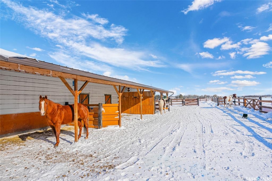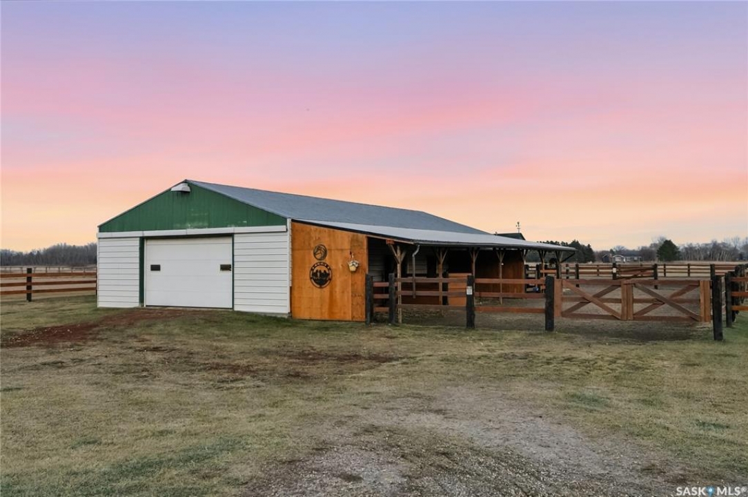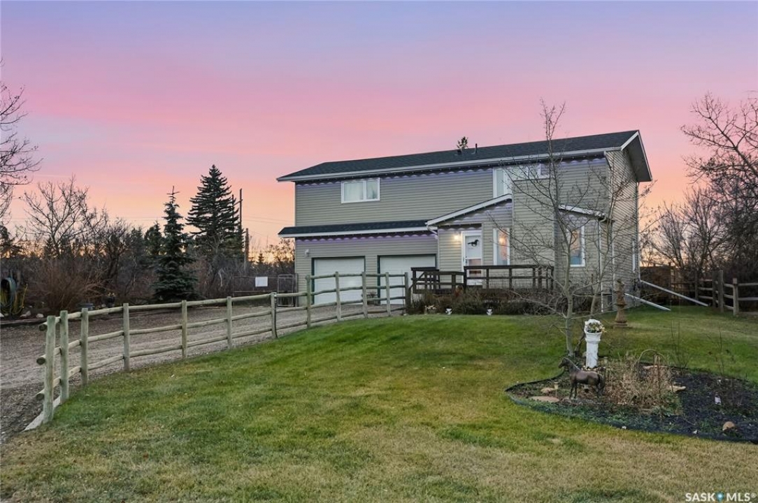 Just south of the city on Tamke Road lies your own slice of polished country paradise — beautifully updated and ready for your lifestyle. This impeccably kept 10 acre dream property is fully cross fenced with electric wire and an automatic watering bowl, complete with a large sand footing riding arena perfect for everything from training days to sunset rides. The impressive 30x70 pole building features a large open area, tack space, with one stall currently set up and ready to go, while the other side offers a fully insulated and heated shop- ideal for the mechanic, woodworker, toy collector, or hobby enthusiast in the family. And ladies, you'll fall in love with the incredible “She Shed” space that it currently is used as. But the one side of the outbuilding could be effortlessly transformed into the perfect heated workshop, fitness studio, creative retreat, or private escape. Even the chickens are living their best life here in what can only be described as the Taj Mahal of chicken coops. The yard has been thoughtfully reimagined, with the former inground pool professionally covered to create a stunning treed oasis that's perfect for kids, pets, entertaining, or simply enjoying peaceful prairie evenings under the stars. Inside the 1,981 sq ft two-storey home you'll find many interior and exterior updates that make it feel fresh and move-in ready, including luxury vinyl plank flooring throughout (no carpet!), a cozy electric fireplace, an updated kitchen with stainless steel appliances, four spacious bedrooms upstairs with breathtaking acreage views, and an attached double garage. Municipal water service provides added convenience and peace of mind, while the unfinished basement offers excellent storage. This property truly has it all — horses, hobbies, toys, style, and space — just minutes from the city. Impeccably maintained and ready for its next chapter, your acreage lifestyle starts here.