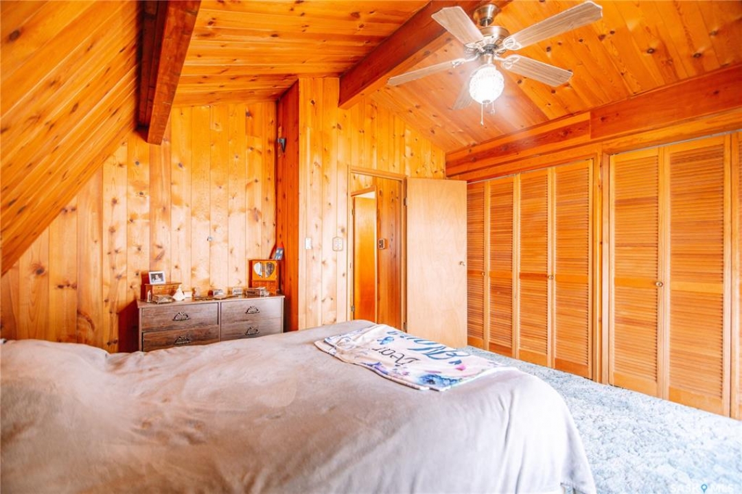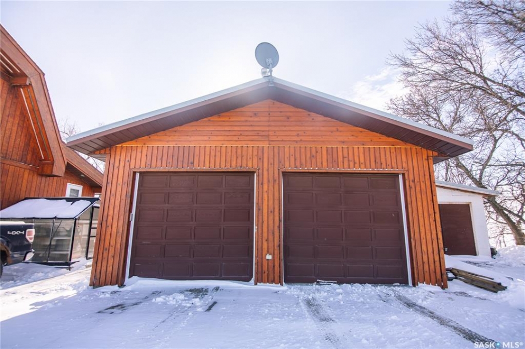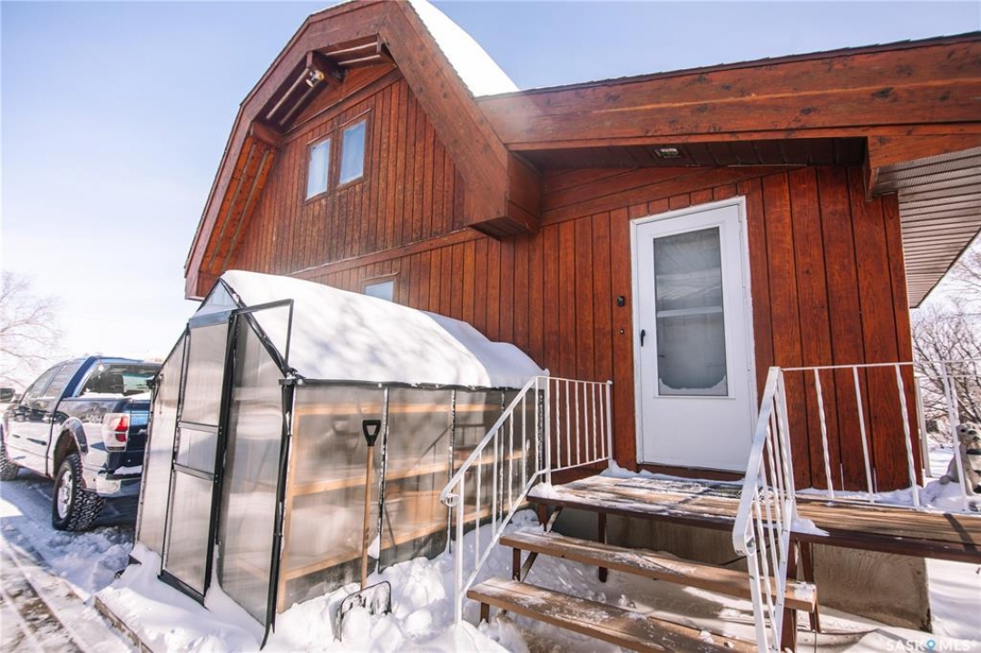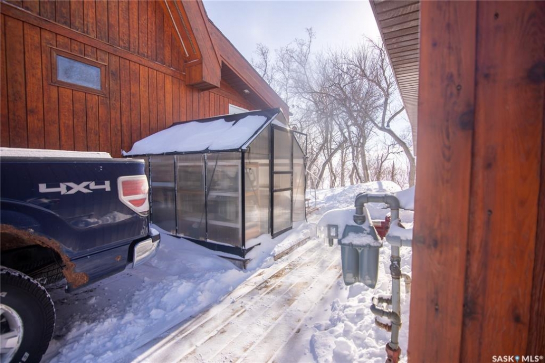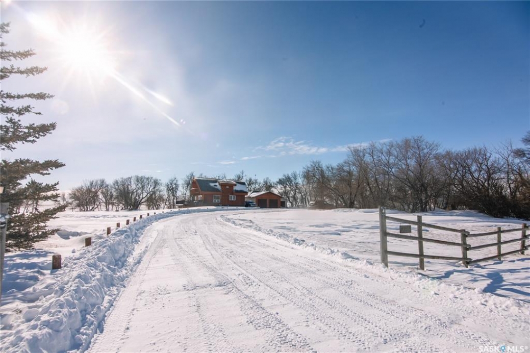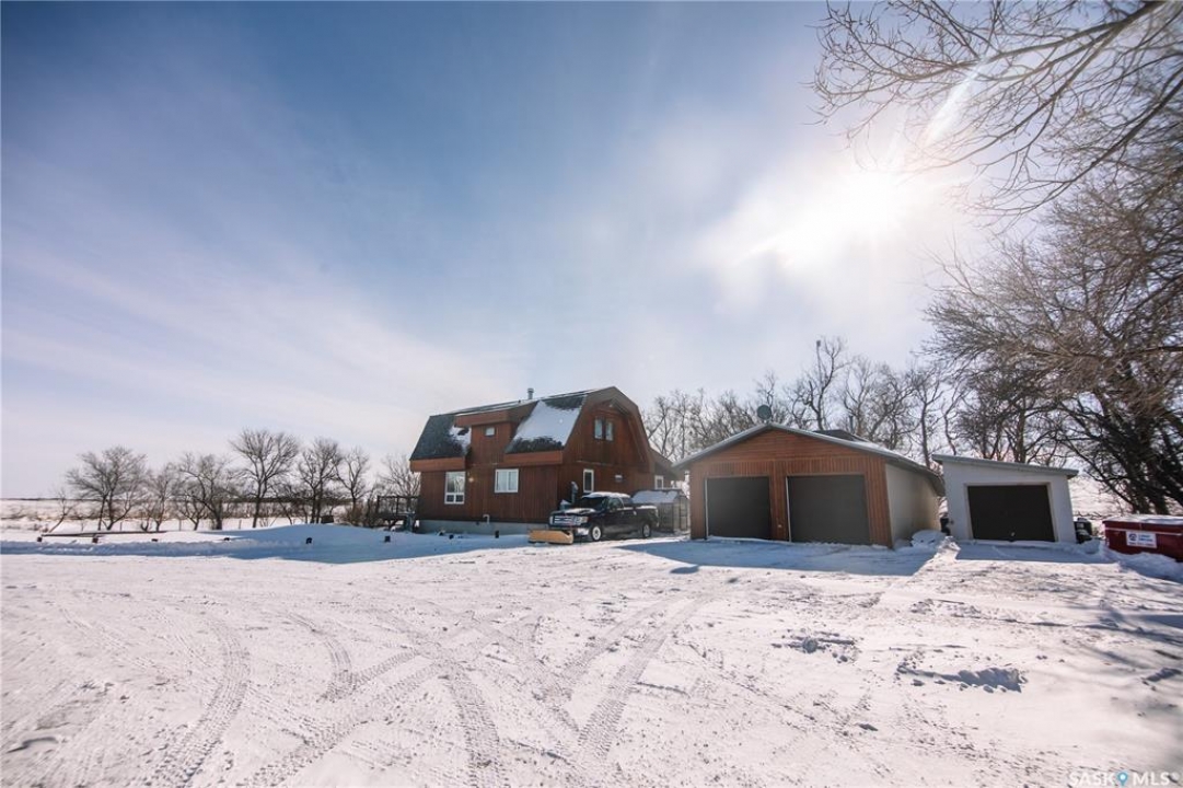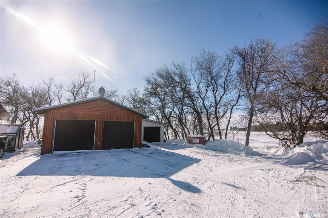 Welcome to this cozy acreage located just 13 km NE of Bethune & only minutes from the lake. Offering the perfect balance of peaceful country living & manageable upkeep, this beautifully treed 2-acre parcel is sheltered by a mature shelterbelt, providing privacy, space to roam, & room for kids or hobbies without overwhelming maintenance. As you arrive, you'll immediately appreciate the tranquil setting & wide-open space. Step inside to a spacious porch/mudroom, the perfect spot to settle in and comfortably kick off your boots. The main floor features a warm & inviting country kitchen, an adjoining dining area, and a bright living room filled with natural light from an abundance of windows. A wood-burning fireplace adds charm and comfort — a true necessity for Saskatchewan winters. A conveniently located 3-piece bathroom completes the main level. Upstairs, you'll find a lovely primary bedroom with balcony doors that open to an east-facing view — the ideal place to enjoy your morning coffee in the sunrise. Two additional bedrooms & a 4-piece bathroom complete the upper floor. The fully developed basement adds valuable living space, offering a large recreation room, a den, a 2-piece bathroom, and a generous laundry and storage area. Outside, the property continues to impress with a 24' x 32' radiant heated garage — perfect for vehicles, projects, or hobbies. Additional outbuildings include two storage sheds and a small greenhouse for those with a green thumb. A truck with a blade is also included, ensuring you're well-equipped for snowy days and winter commuting. Notable upgrades include: Furnace and central air conditioning (2020), Large wrap around deck (approx. 2 years old), 200-amp electrical service, Built-in shutters on main floor windows. *Note that the current owners haul water (cistern) from a neighboring farm well, water wagon included in sale. This acreage has been a wonderful family home for many years and is ready for its next family chapter.