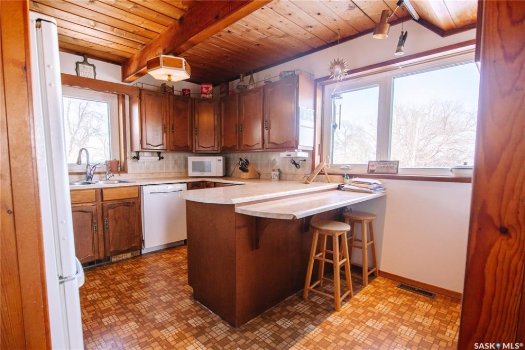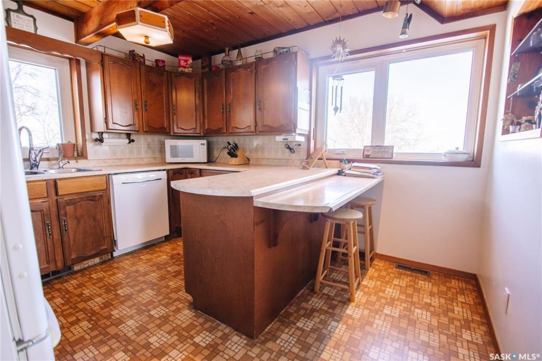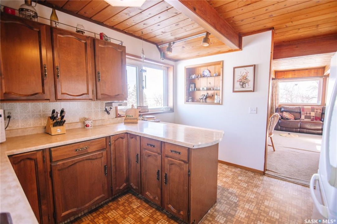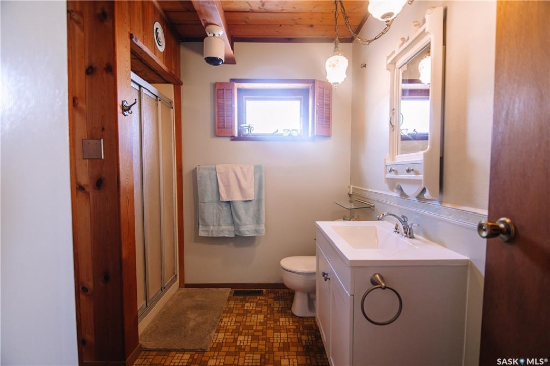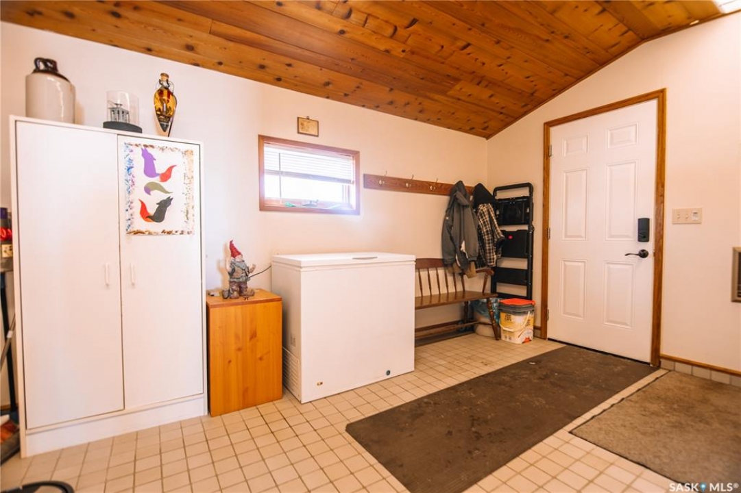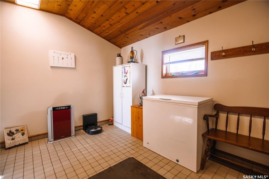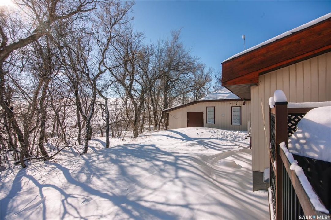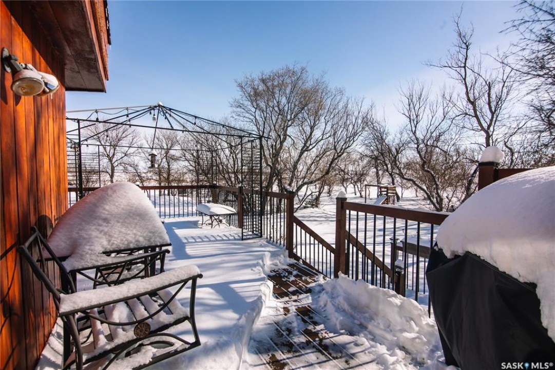 Welcome to this cozy acreage located just 13 km NE of Bethune & only minutes from the lake. Offering the perfect balance of peaceful country living & manageable upkeep, this beautifully treed 2-acre parcel is sheltered by a mature shelterbelt, providing privacy, space to roam, & room for kids or hobbies without overwhelming maintenance. As you arrive, you'll immediately appreciate the tranquil setting & wide-open space. Step inside to a spacious porch/mudroom, the perfect spot to settle in and comfortably kick off your boots. The main floor features a warm & inviting country kitchen, an adjoining dining area, and a bright living room filled with natural light from an abundance of windows. A wood-burning fireplace adds charm and comfort — a true necessity for Saskatchewan winters. A conveniently located 3-piece bathroom completes the main level. Upstairs, you'll find a lovely primary bedroom with balcony doors that open to an east-facing view — the ideal place to enjoy your morning coffee in the sunrise. Two additional bedrooms & a 4-piece bathroom complete the upper floor. The fully developed basement adds valuable living space, offering a large recreation room, a den, a 2-piece bathroom, and a generous laundry and storage area. Outside, the property continues to impress with a 24' x 32' radiant heated garage — perfect for vehicles, projects, or hobbies. Additional outbuildings include two storage sheds and a small greenhouse for those with a green thumb. A truck with a blade is also included, ensuring you're well-equipped for snowy days and winter commuting. Notable upgrades include: Furnace and central air conditioning (2020), Large wrap around deck (approx. 2 years old), 200-amp electrical service, Built-in shutters on main floor windows. *Note that the current owners haul water (cistern) from a neighboring farm well, water wagon included in sale. This acreage has been a wonderful family home for many years and is ready for its next family chapter.