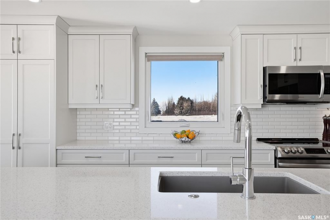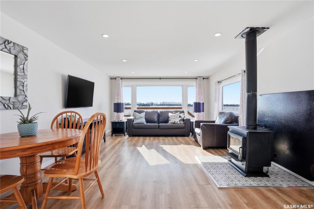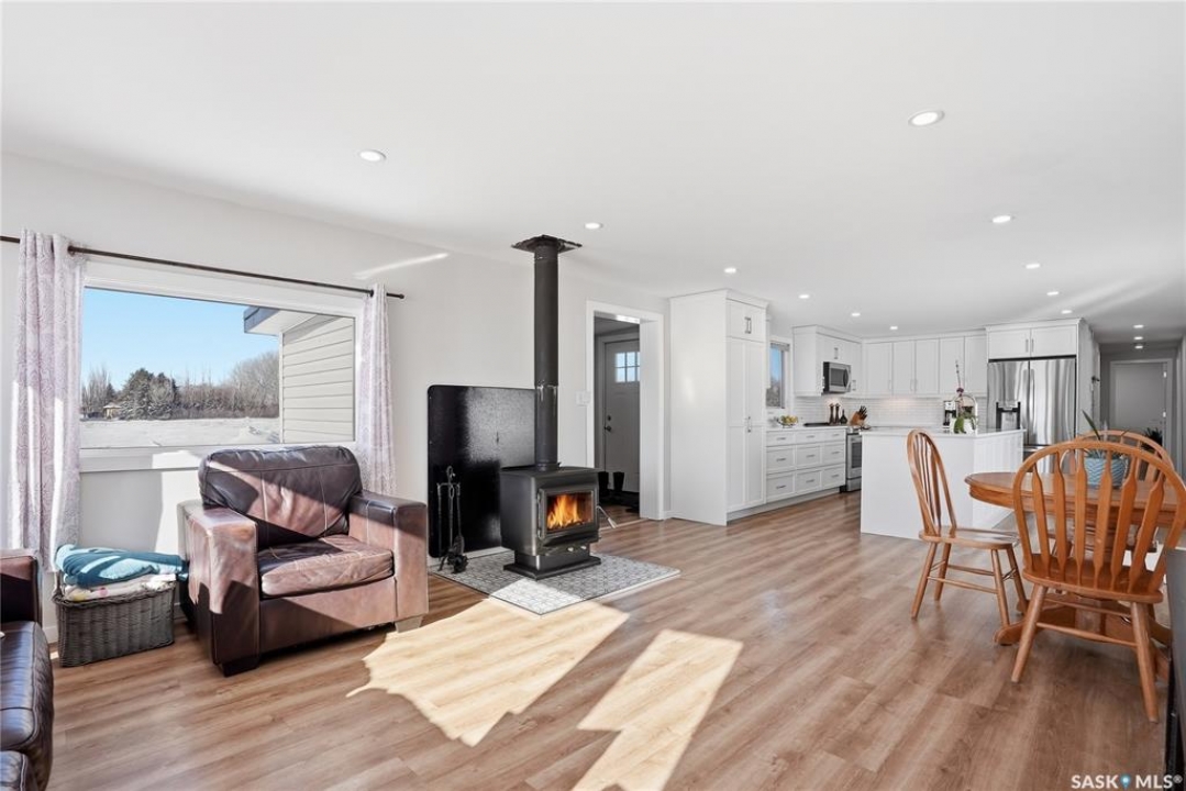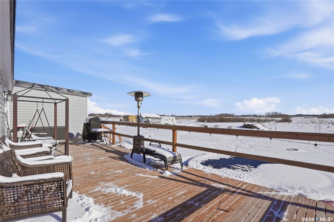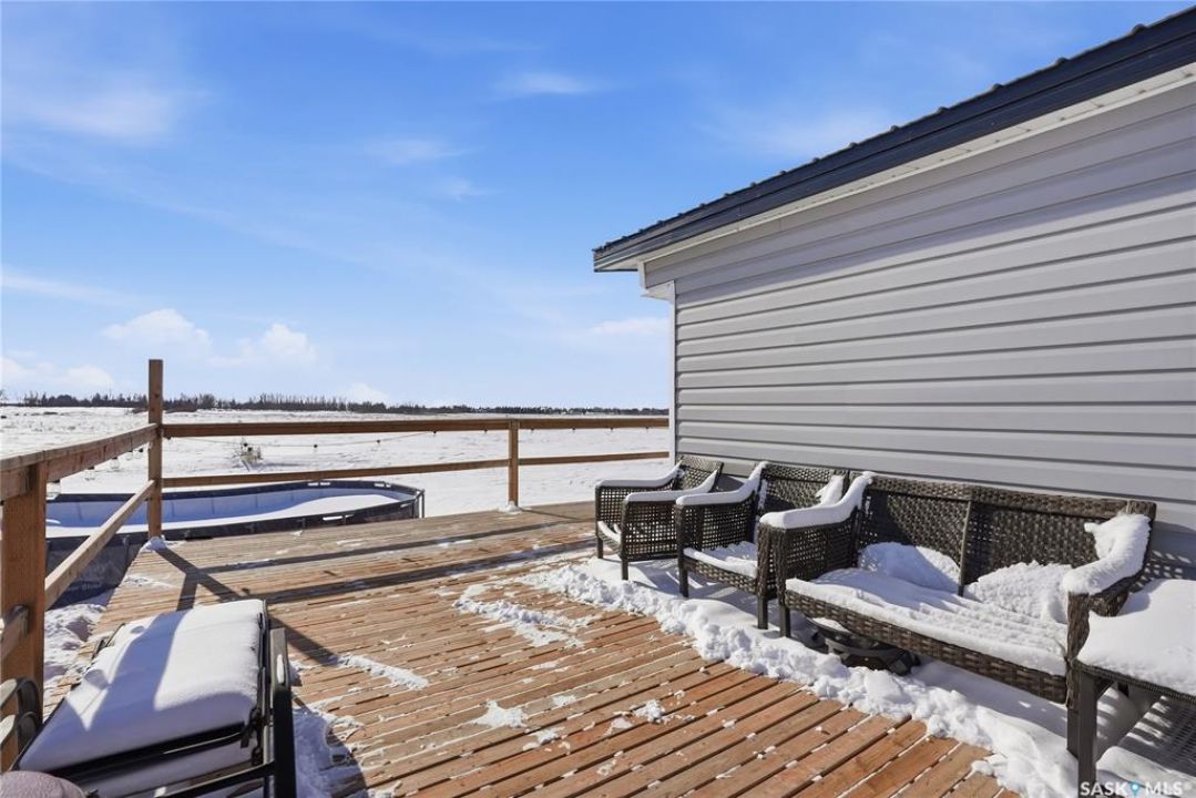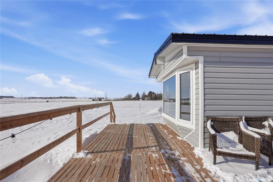 Welcome to 9 Waz Road. This gem of an acreage is one you will not want to miss. Totally renovated mobile home located on 12 acres of owned land. Just 10mins outside of Saskatoon. Affordable out of town living with tons of future possibilities and options. Walk in and instantly love the modern country vibe. You are first greeted with a large mudroom with ample space for organization and storage. Continue through and you will love the open concept main area. Bright, clean and very functional kitchen with oversized island, stainless appliances, custom backsplash and quartz countertops. Cozy up with wood burning fireplace finishing off the front living room nicely. You will appreciate the extra width in this home as there were two additions added. Spacious primary bedroom with full ensuite. Three additional bedrooms and another full bath. Large laundry area and luxury vinyl plank throughout. Over 1400 sq. ft on one level. Many big ticket renovations done in 2022 include windows, doors, vinyl siding, shingles, soffit, fascia, furnace, on-demand hot water, electrical, plumbing, flooring, kitchen – virtually everything. Heated crawl space with metal skirting (dug in deeper) and spray foam insulation. Brand new septic also done in 2022 ($32K value). new central air conditioning and generator (2024). Amazing opportunity to get into acreage living now and enjoy your very own space. Conveniently located just outside Clavet with an easy short drive on gravel. CSA approved and reasonable home insurance ($4,000/ year).