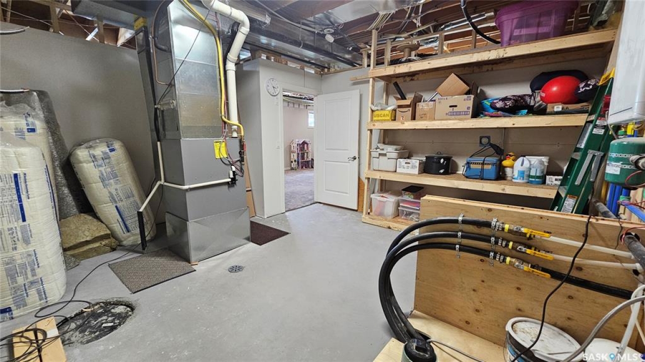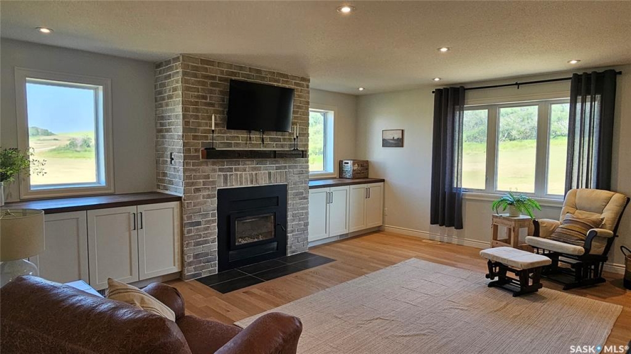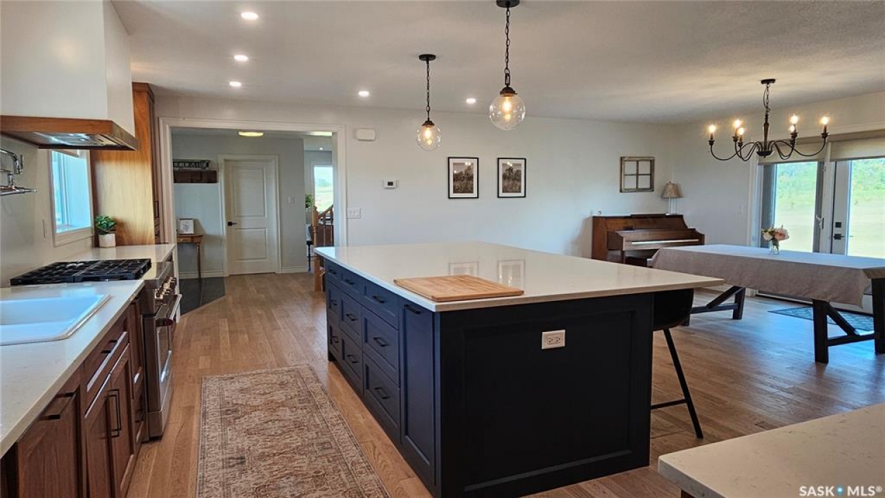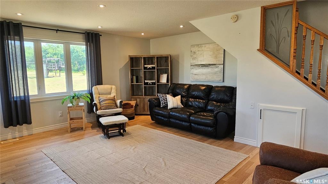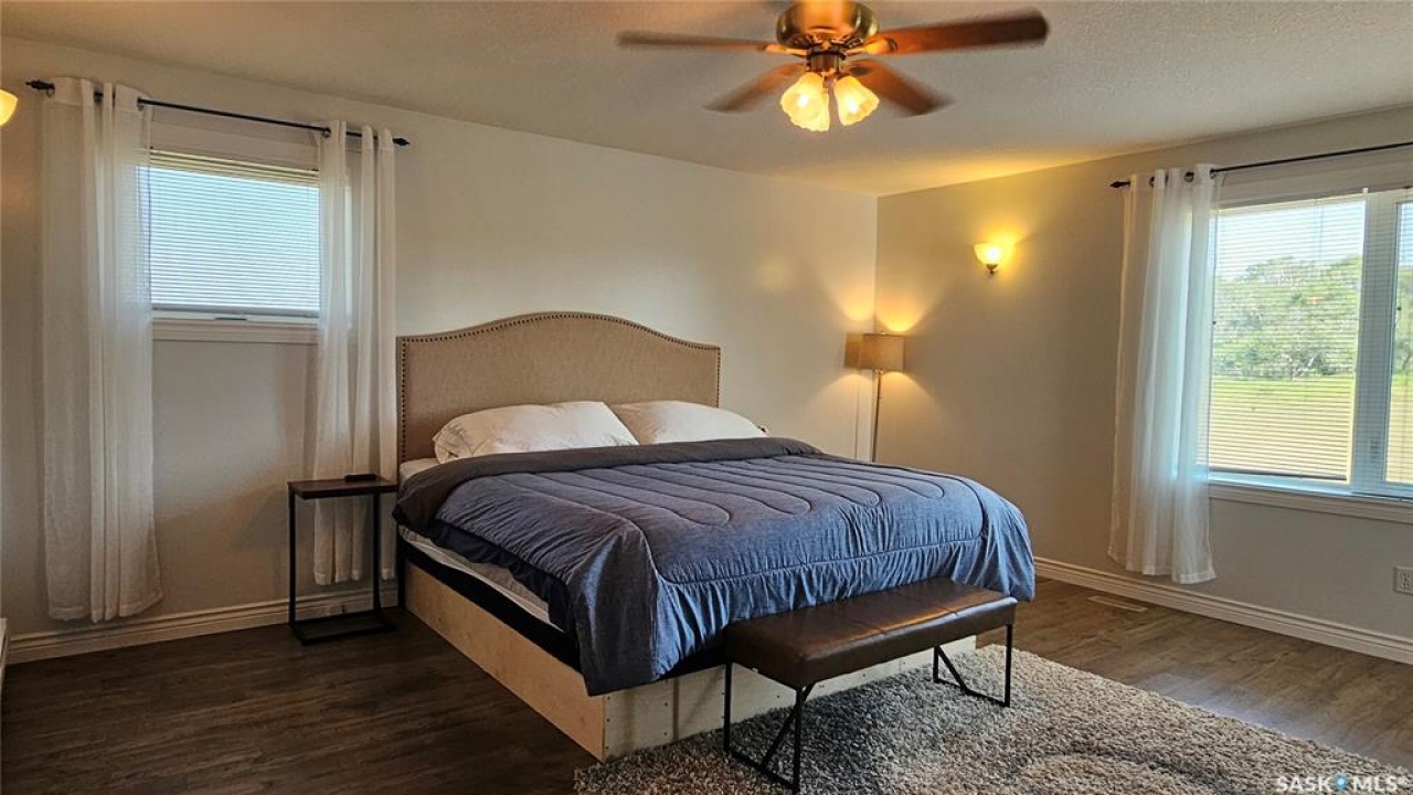 Welcome to Top of The Hill Quarter, a rare 160 acre opportunity just east of Duval, SK. If you've been dreaming about space, privacy, and a home that truly has it all, this is it. This fully updated two storey offers 2,216 sq.ft. of beautifully designed living space with 5 large bedrooms and 4 modern bathrooms. The kitchen is absolutely the heart of this home; a chef's dream with a huge island made for entertaining and a stunning butler's pantry complete with a second sink, freezer, and space for another dishwasher. It's functional, stylish, and perfect for busy families or hosting. The cozy living room features a wood burning fireplace that makes the whole space feel warm and inviting. Upstairs, the primary suite is your own private retreat with a gorgeous ensuite and a spacious walk in closet. Comfort and practicality were clearly top of mind here, heated floors in the basement and in the impressive 40' x 80' heated shop make Saskatchewan winters no problem. There's also a 24' x 24' heated garage/storage building for even more flexibility. The property is well set up with a reliable well, separate septic systems for the home and shop, and a dugout water system that keeps the yard lush and green. Portions of the land are currently rented out for agriculture, providing income potential, and there are gravel deposits on site, adding even more long term value. Located just 8 minutes to Strasbourg, 15 minutes to Last Mountain Lake, 25 minutes to Rowan's Ravine Provincial Park, and under an hour to Regina-you truly get the best of peaceful rural living with convenience close by. This property needs to be seen in person to fully appreciate everything it offers. Whether you're looking for a family acreage, a working property, or a smart investment, Top of The Hill Quarter delivers space, comfort, and opportunity all in one incredible package.