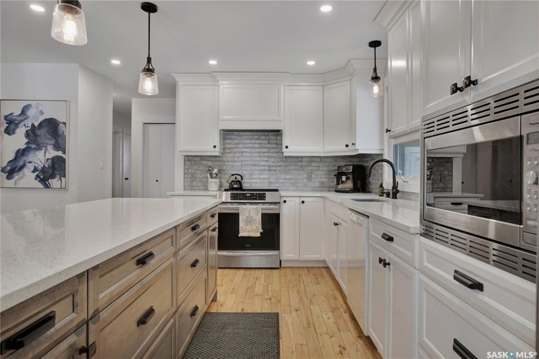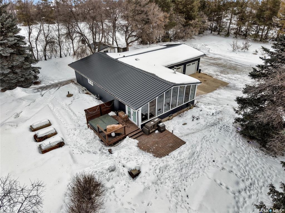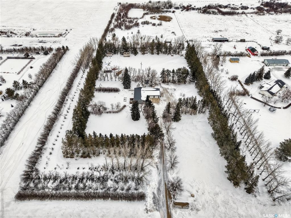 It's not often you find an acreage with all 4 of the must have “wants”: an excellent location, a completely renovated home, and services like natural gas, city water and good internet service. But this property checks all four boxes. Located just 1.5 km east of Osler toward the river, this 26.95-acre property offers a peaceful escape from the hustle and bustle. As you arrive, a scenic, tree-lined driveway welcomes you in, while the mature shelterbelt surrounding the home provides both privacy and protection from prairie winds. Inside, you're greeted by a spacious mudroom with built-in cabinetry and direct access to the oversized 25 x 27 heated garage, perfect for keeping everyday life organized. In 2021, the main floor was completely renovated, featuring a brand-new custom kitchen with stone countertops, plenty of storage, and generous island seating, making it an ideal space for gathering with family and friends. One of the true highlights of the home is the front sunroom, where you can soak in the warmth of the southern exposure all winter long. In the evening, step outside to the hot tub and enjoy the northern lights overhead. With three bedrooms on the main floor and a fourth in the basement, there's plenty of space for a growing family or visiting guests. There is vast pasture land surrounding the property great for horses, leaving the yard site private, manageable, and beautifully contained. Recent updates include the furnace, water heater, tin roof, windows, flooring, and carpets, making this home truly move-in ready.