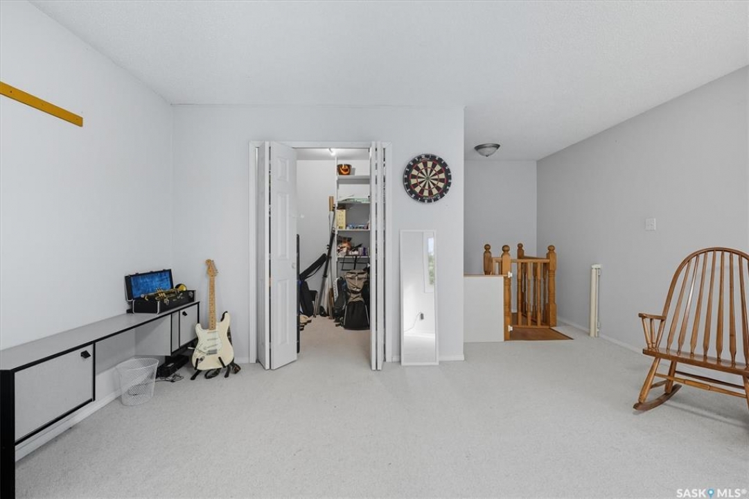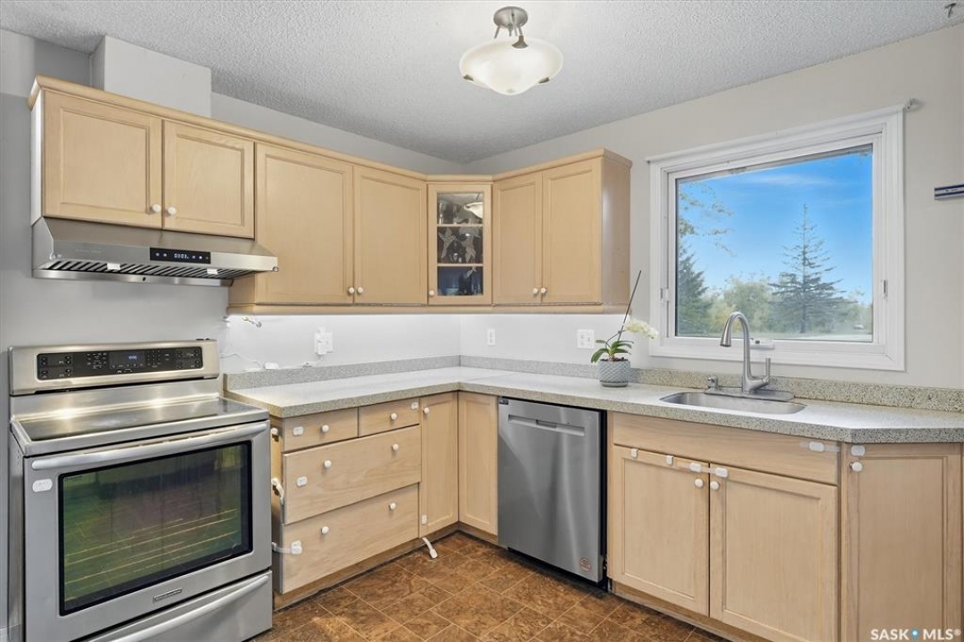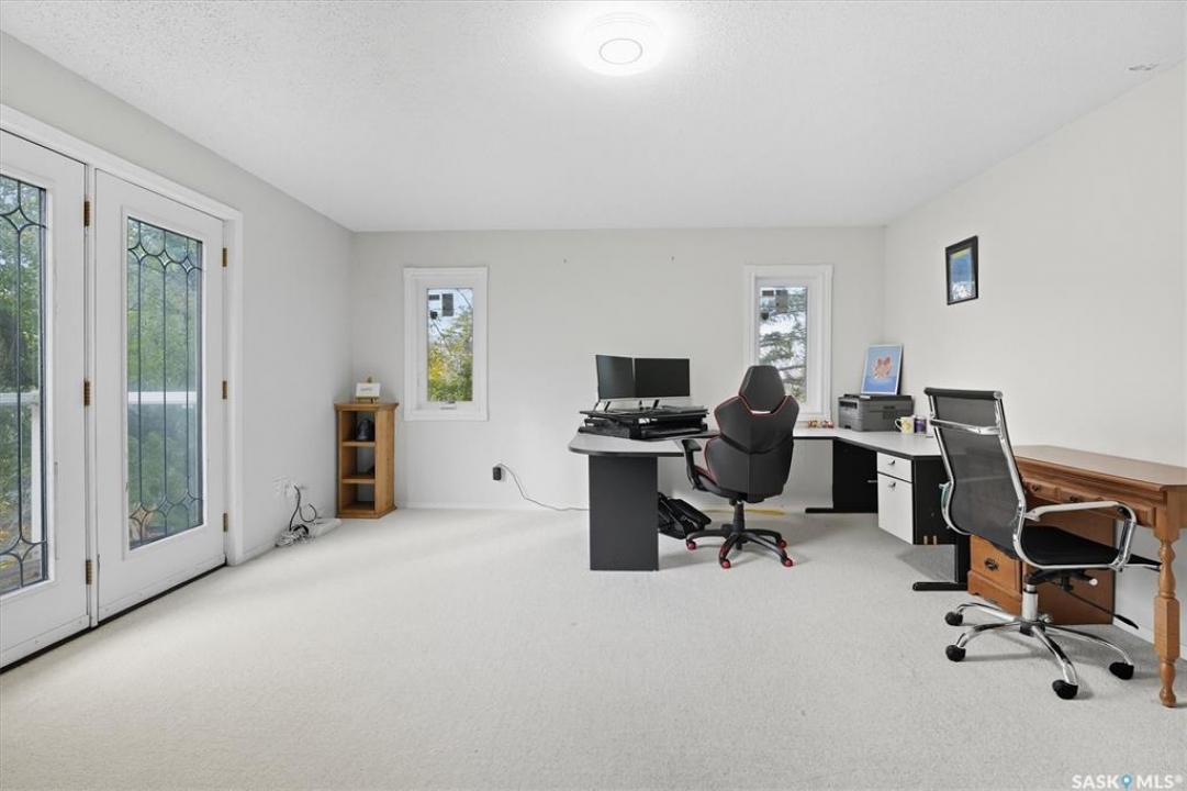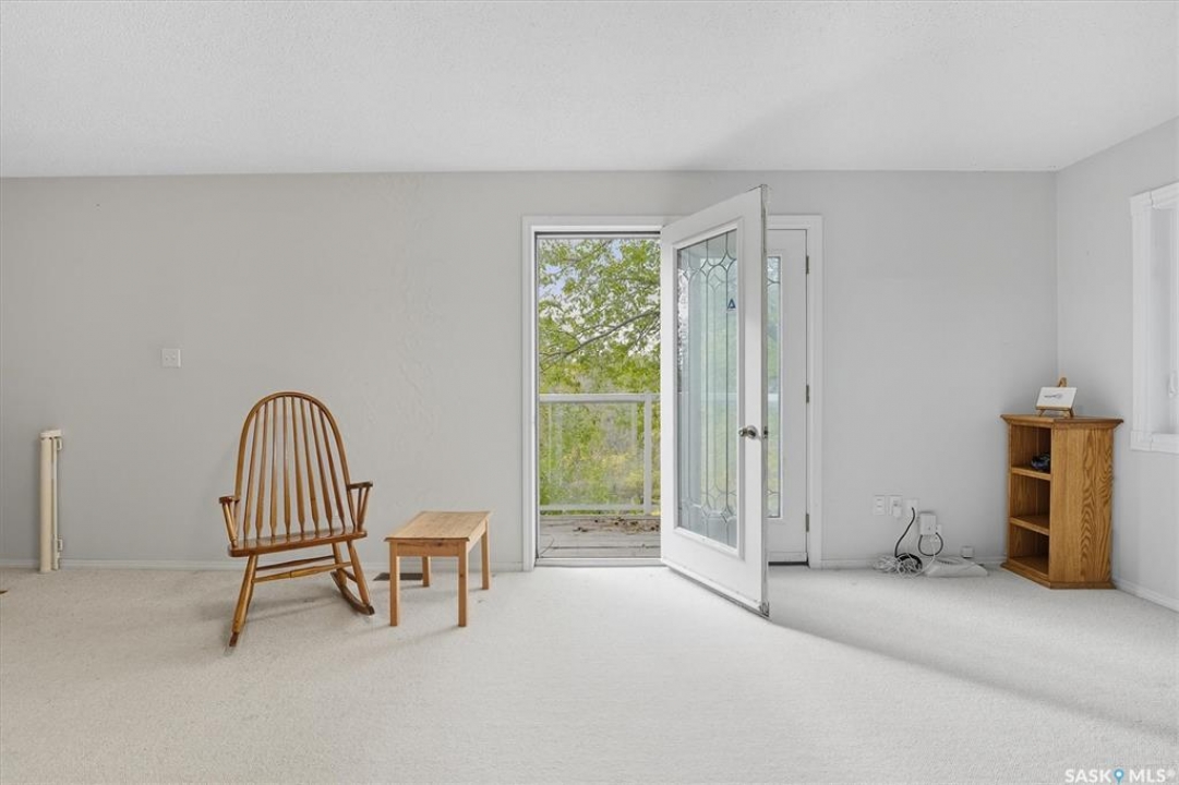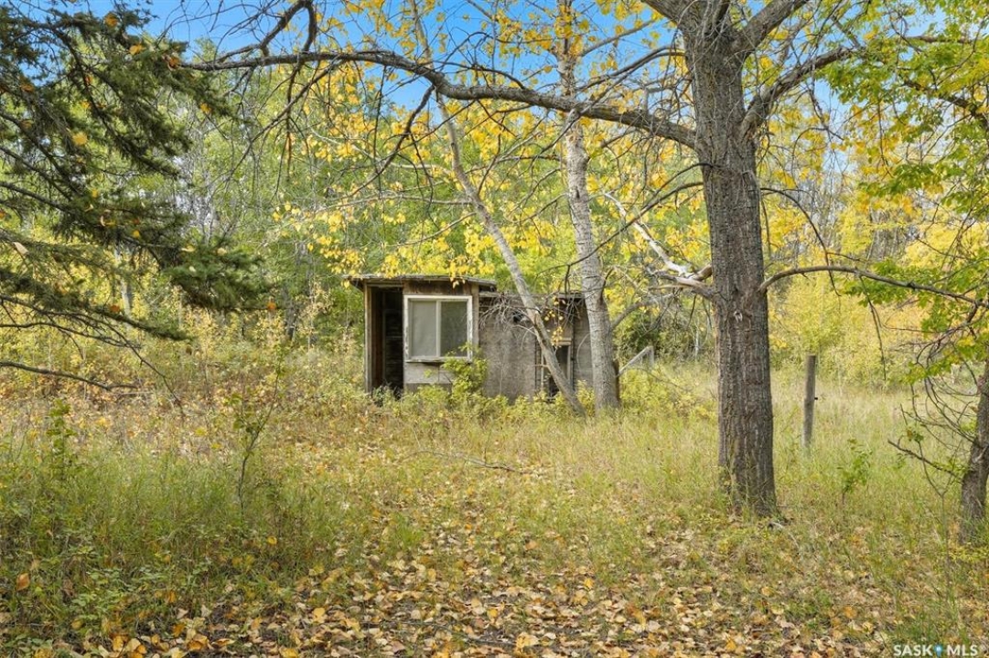 Acreage living just 7 minutes from Saskatoon! Welcome to 203 Spur Way in Saddle Ridge Estates — a charming 1.5- storey home on 4.99 acres in the rolling hills. This 4-bedroom, 2-bath home offers warmth, functionality, and space to grow — inside and out. The main floor features hardwood floors, a spacious kitchen with quartz counters, soft maple cabinetry, and matching appliances. The living room flows to the deck through patio doors, making entertaining a breeze. Cozy up downstairs by the gas fireplace, or retreat to the stunning loft bedroom via the oak spiral staircase, complete with Juliette balcony. Enjoy updated central A/C, windows and front door (all within the last 2 years), and a triple attached garage. The acreage includes a barn with box stall, water, tack room, and loft — perfect for horses, storage, or a studio. Now for the showstopper: a thoughtfully planned food forest with 25+ varieties including apple, plum, cherry, pear, grape, haskap, raspberry, kiwi, seabuckthorn, hazelnut, herbs, strawberries, and even asparagus. Over 70 haskaps, 65 asparagus, and dozens of fruit trees, all mulched, edged, and connected by a line watering system. A fenced 200m2 no-till garden produces enough vegetables for full seasonal self-sufficiency. Serviced with city water, septic mound, Fiber Optic internet with Prairie Crocus, school bus access to Clavet, and fully paved development - this property offers a rare blend of rural privacy and urban access. Acreages like this — with natural abundance, modern comfort, and easy commuting — are truly one of a kind.