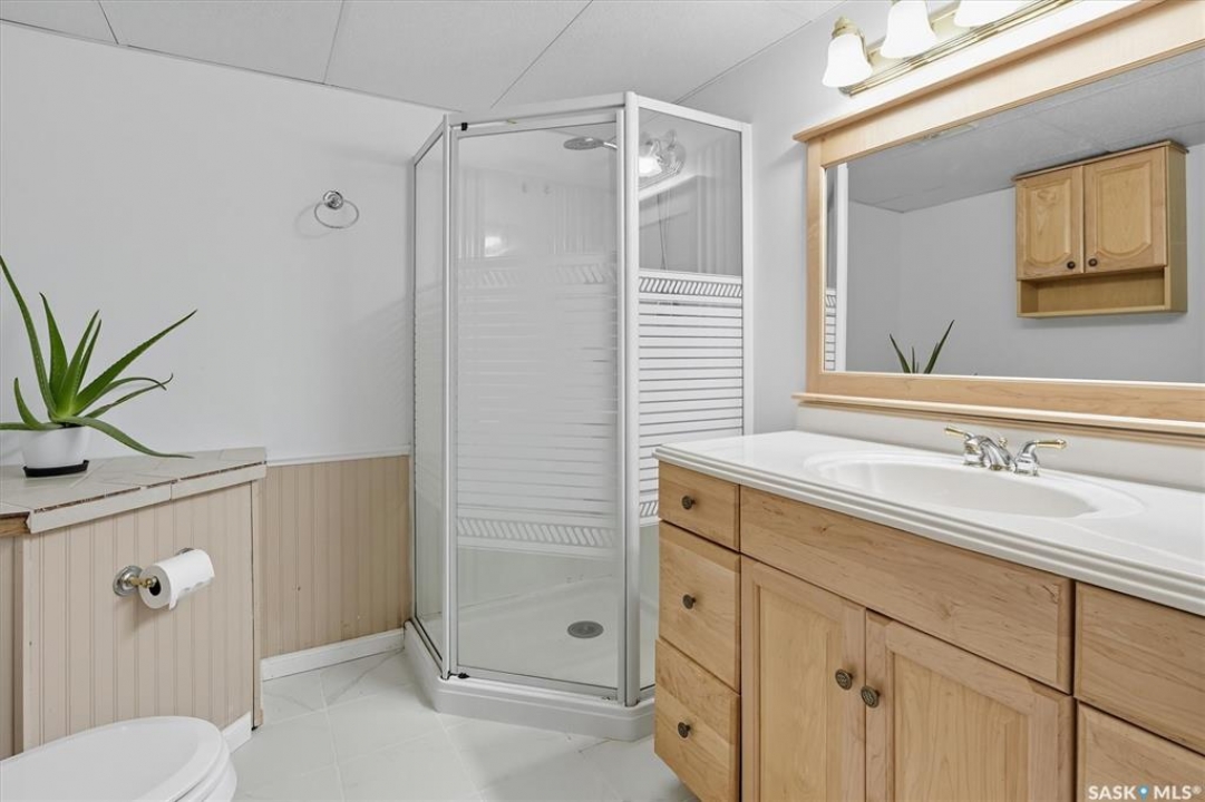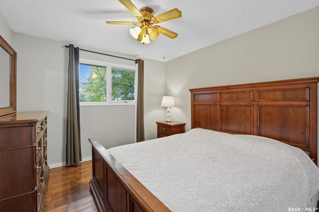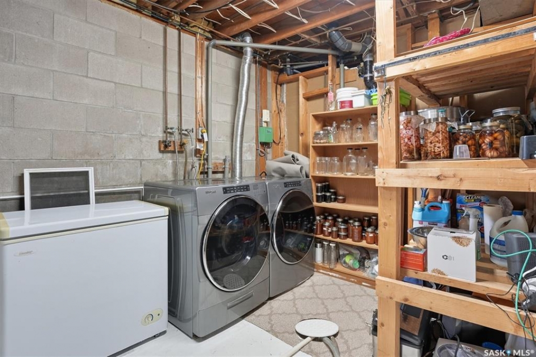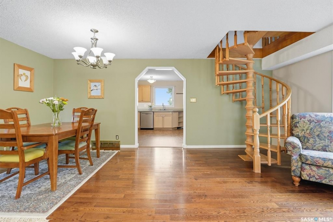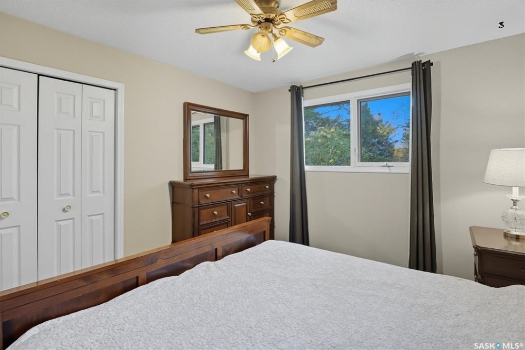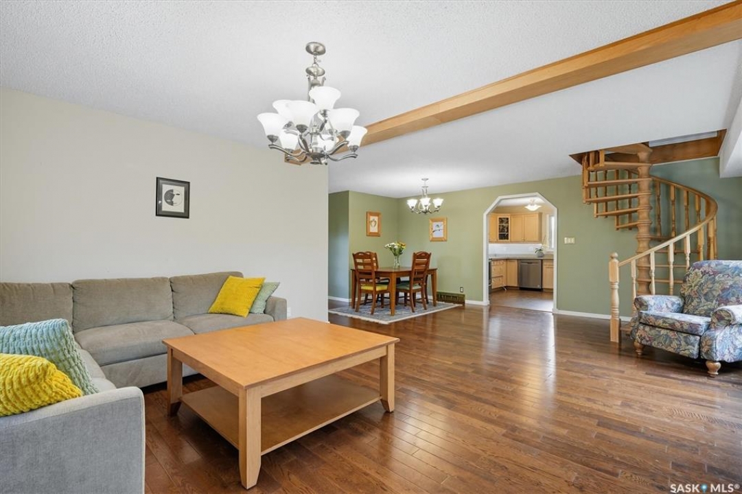 Acreage living just 7 minutes from Saskatoon! Welcome to 203 Spur Way in Saddle Ridge Estates — a charming 1.5- storey home on 4.99 acres in the rolling hills. This 4-bedroom, 2-bath home offers warmth, functionality, and space to grow — inside and out. The main floor features hardwood floors, a spacious kitchen with quartz counters, soft maple cabinetry, and matching appliances. The living room flows to the deck through patio doors, making entertaining a breeze. Cozy up downstairs by the gas fireplace, or retreat to the stunning loft bedroom via the oak spiral staircase, complete with Juliette balcony. Enjoy updated central A/C, windows and front door (all within the last 2 years), and a triple attached garage. The acreage includes a barn with box stall, water, tack room, and loft — perfect for horses, storage, or a studio. Now for the showstopper: a thoughtfully planned food forest with 25+ varieties including apple, plum, cherry, pear, grape, haskap, raspberry, kiwi, seabuckthorn, hazelnut, herbs, strawberries, and even asparagus. Over 70 haskaps, 65 asparagus, and dozens of fruit trees, all mulched, edged, and connected by a line watering system. A fenced 200m2 no-till garden produces enough vegetables for full seasonal self-sufficiency. Serviced with city water, septic mound, Fiber Optic internet with Prairie Crocus, school bus access to Clavet, and fully paved development - this property offers a rare blend of rural privacy and urban access. Acreages like this — with natural abundance, modern comfort, and easy commuting — are truly one of a kind.