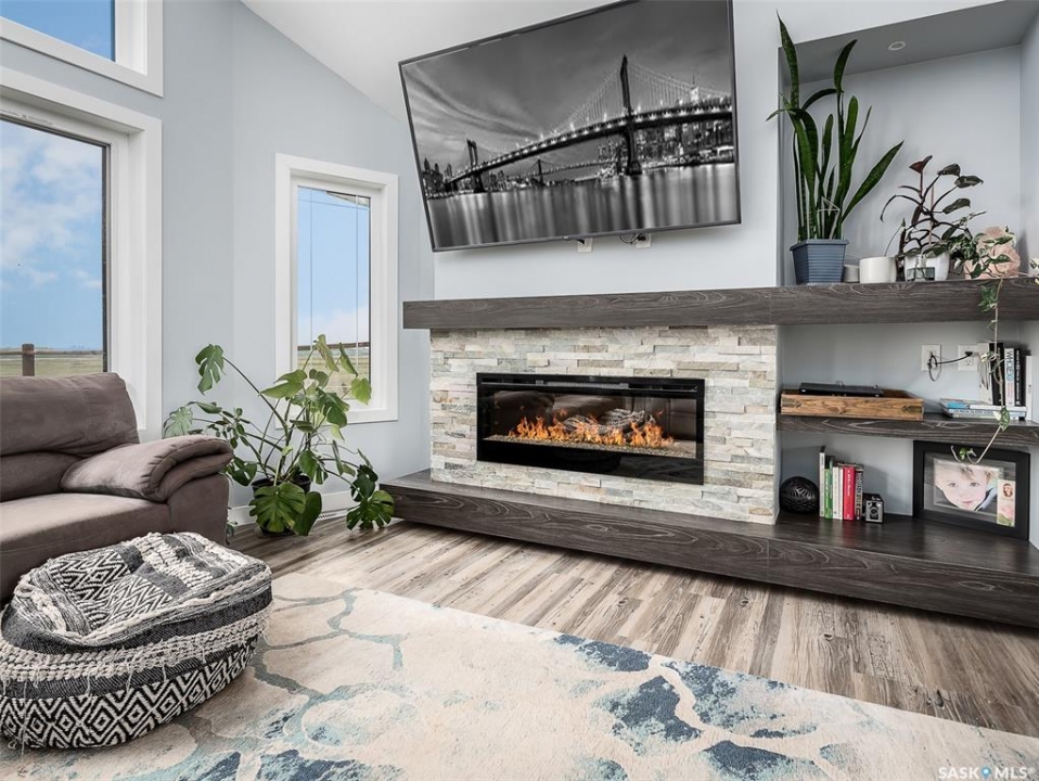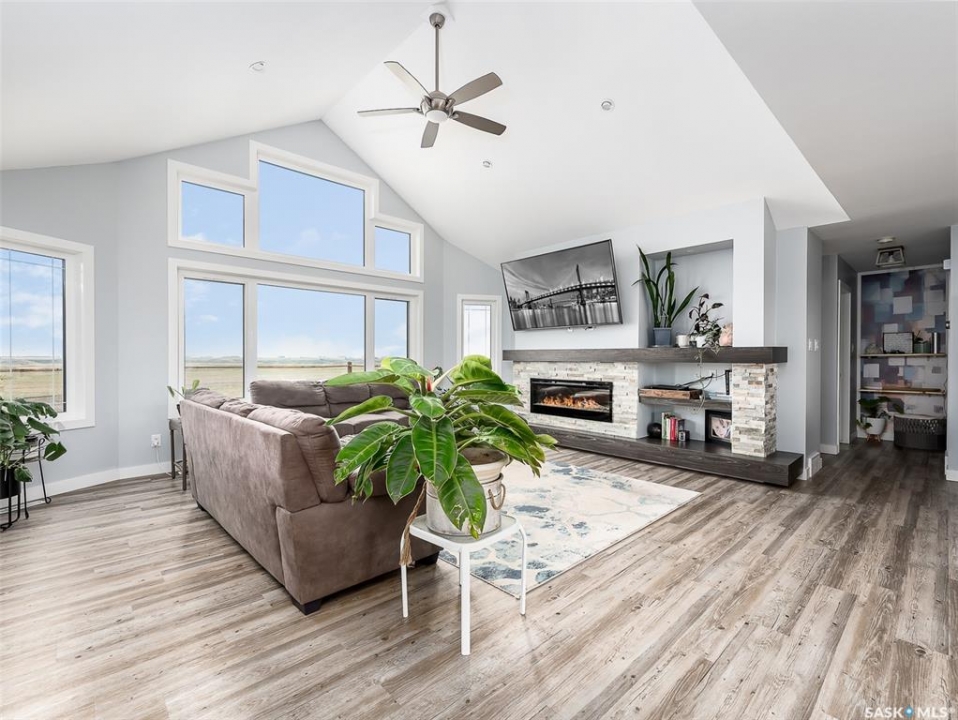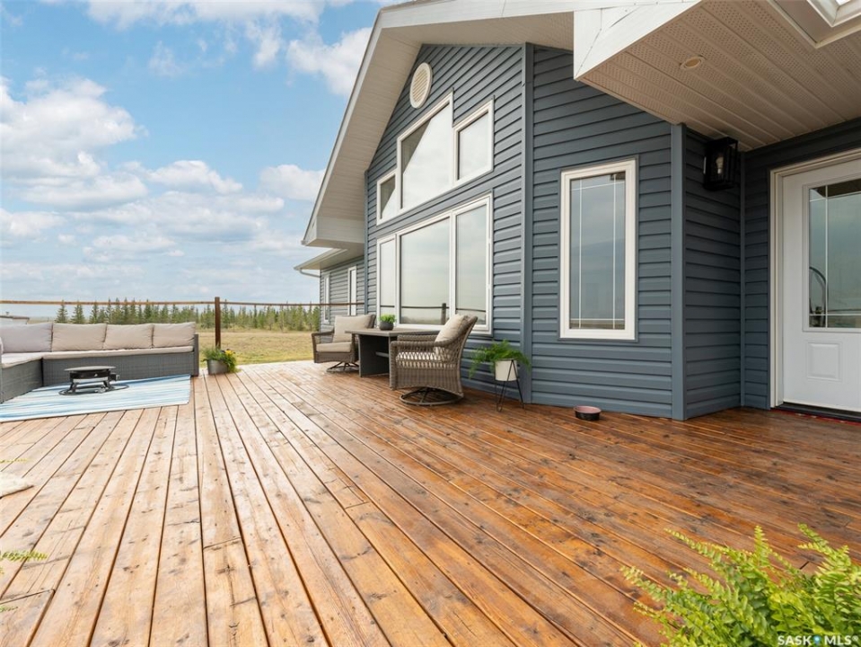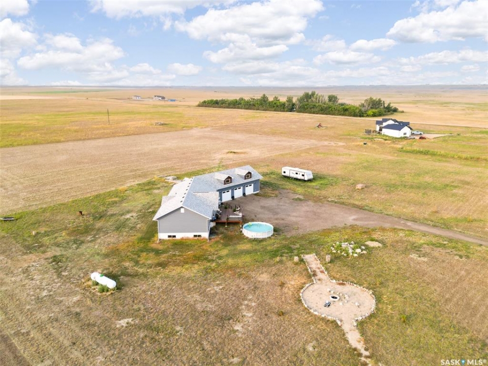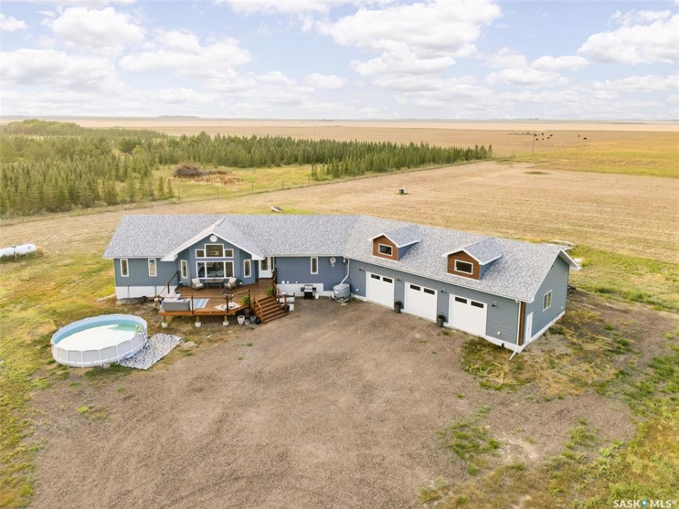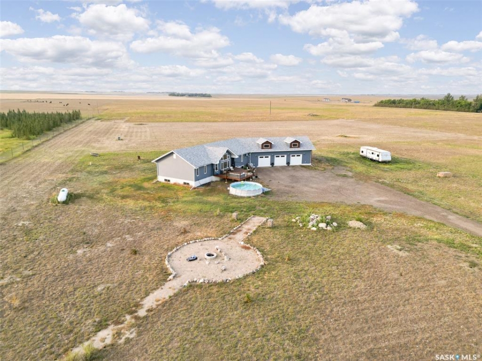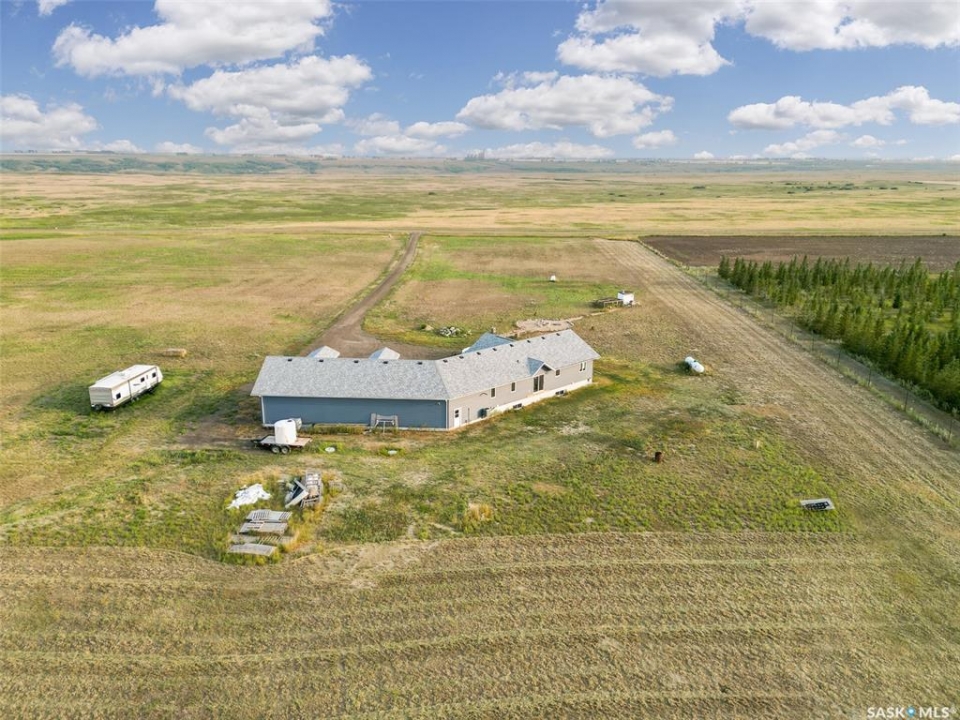 Dreaming of life in the country just minutes from the city?? Stargazing on your deck away from the city lights? Dreams do come true! This 10 acre parcel boasts a 1,600+ square foot home that is built with the best view in mind & the front deck will be your favourite place to soak up the sunrise! Inside, this home feels warm & welcoming with a modern farmhouse vibe! The view from the Living Room is stunning with huge south facing windows taking full advantage or the vaulted ceiling & is set off with a sleek Fireplace flanked by rustic built-ins. The open concept main floor is perfect for gathering with family & friends with the Kitchen boasting custom concrete countertops, deep farmhouse sink, corner pantry, stylish lighting & island with the Dining Room finished with feature wall & patio doors opening on to a new back deck. To one side of the home, you will find 2 spacious Bedrooms & full Bath with the Primary Suite (walk-in closet & 4pc Ensuite) on the opposite side of the house allowing for privacy. MAIN FLOOR LAUNDRY is adjacent to the MASSIVE HEATED GARAGE with soaring ceilings & dormers (future mezzanine??). The lower level is ready for your ideas with r/in plumbing for additional Bath & framing is set to begin to develop a Family Room, Bath & 2 Bedrooms (state of completion will depend on purchase timeline & is negotiable). Start planning your move to the country now & enjoy the peace & tranquility this change of address will bring! Directions: From MJ - Highway 1 East to Weyburn turn off. North on 301 to Twp Rd 172. East approximately 3kms to sign.