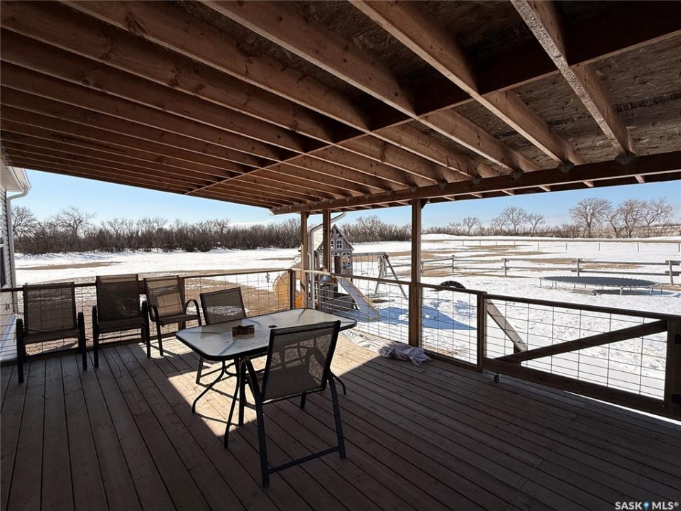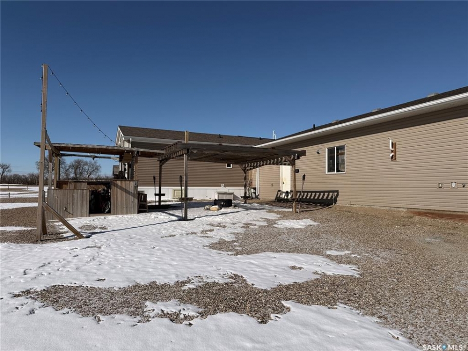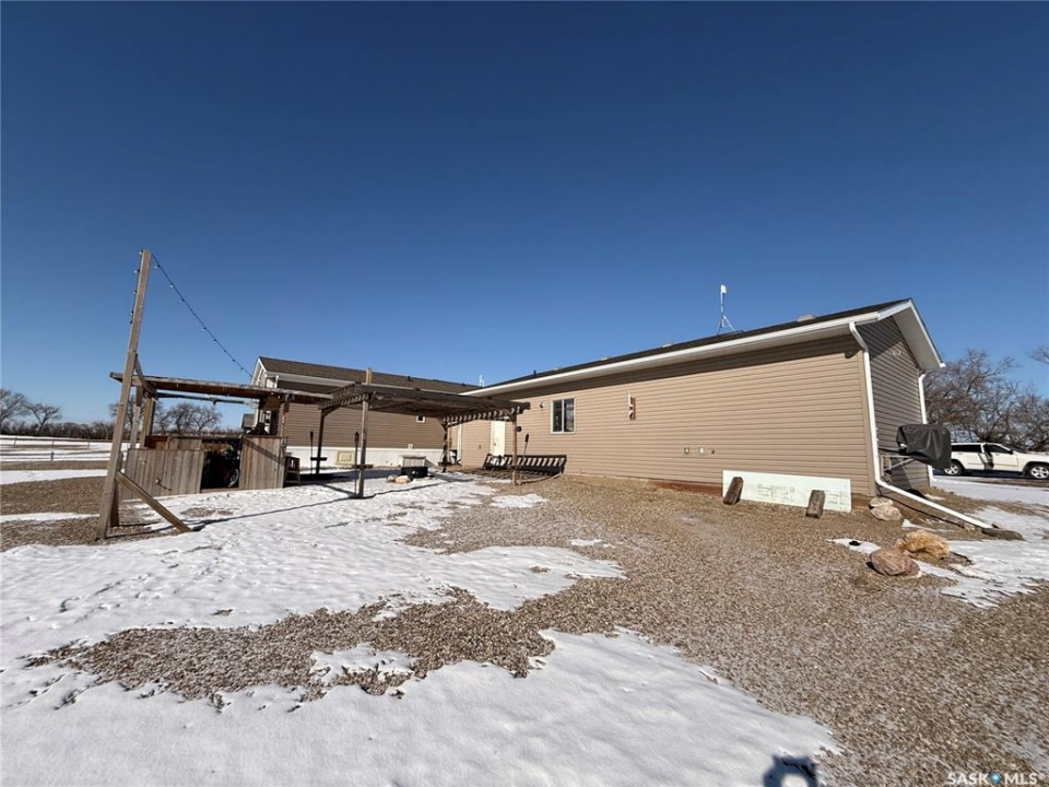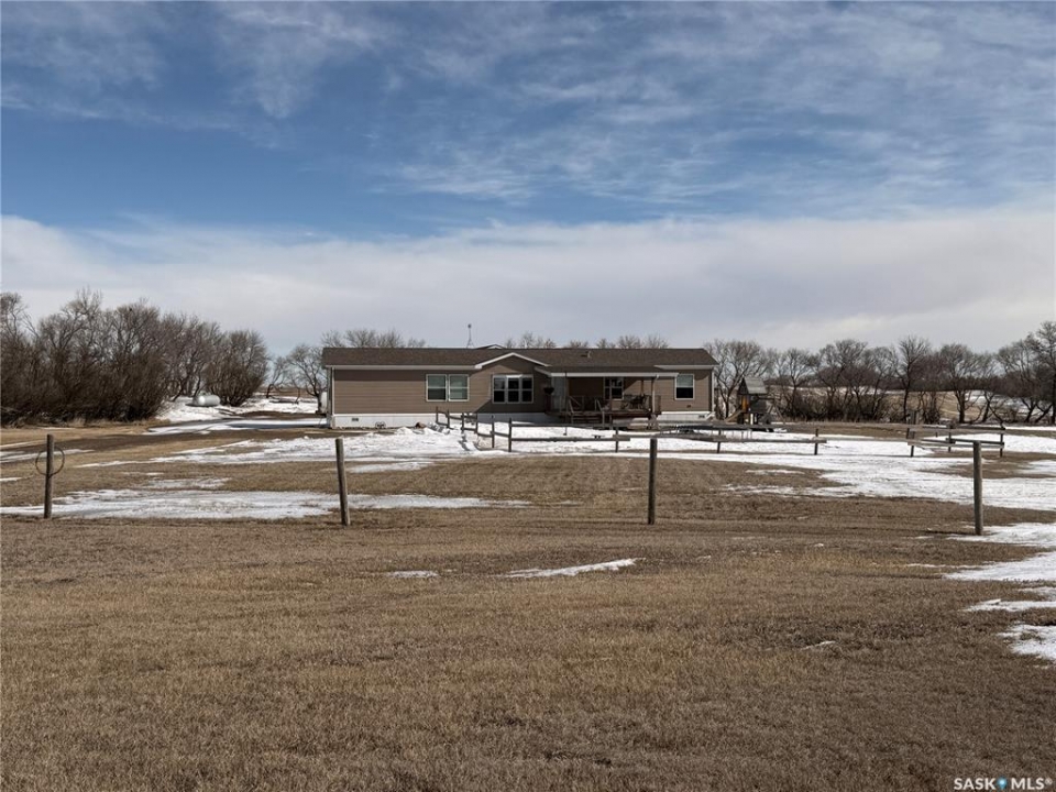 Tucked away on a no-thru road, just 15 minutes from the Town of Outlook with only 3 minutes of gravel...sits this move in ready, 4 acre West Outlook Acreage. This well-designed home features 3 Bedrooms and 2 Bathrooms with a thoughtful separate kids/parents floor plan that offers comfort and functionality. A dedicated playroom area gives families their own space while keeping the main living areas free and inviting. The heart of the home includes an open kitchen with breakfast bar seating just steps from the beautiful deck to take in those stunning country views! A true standout feature of this property is the impressive 30' x 34' heated garage/shop. Fully equipped with a half bathroom, sloped concrete floors, 220v plug, workbench, side-mount opener and even air conditioning, its perfectly set up for projects, storage, or a home-based business! Outdoors, the property continues to impress with a functional cook shack, 7 CAMPSITES (5 serviced with power, water, septic...2 only power and water) a propane hook-up for BBQ and a garden area with a trenched water line- offering both lifestyle and potential income opportunities! This is country living at its best- private, functional and packed with features!