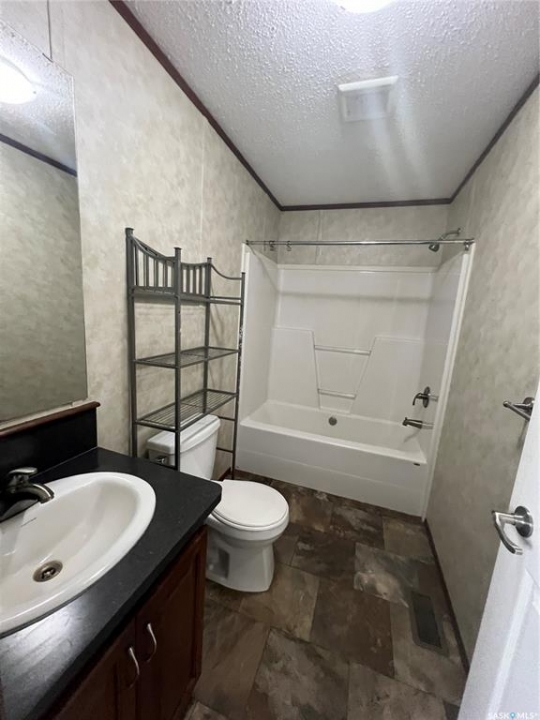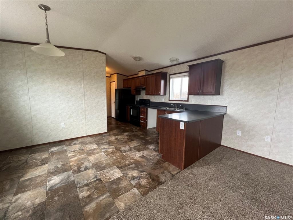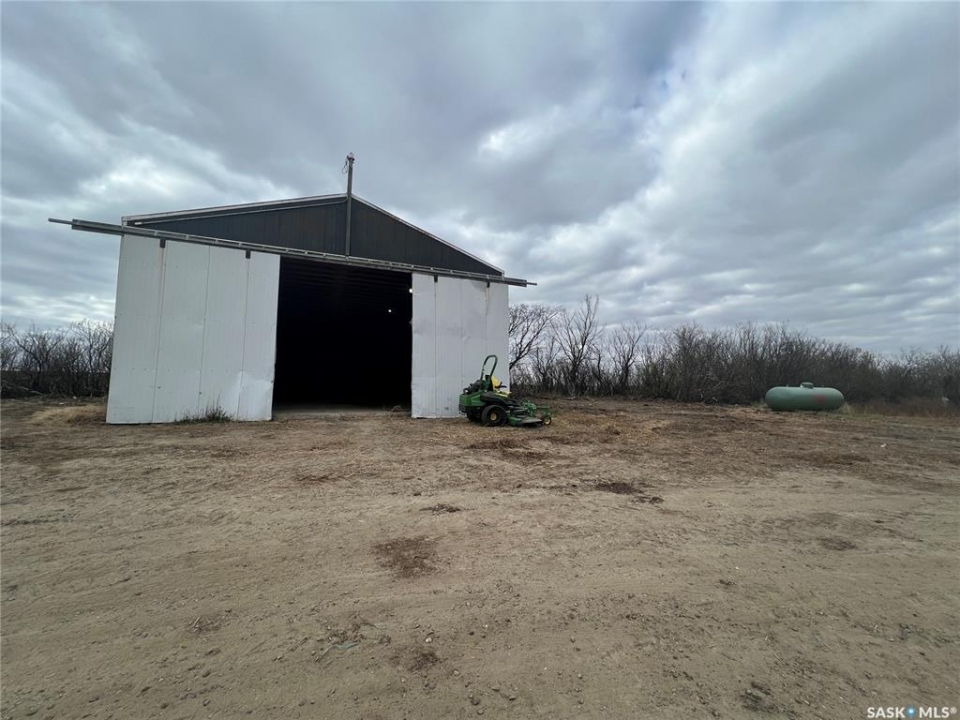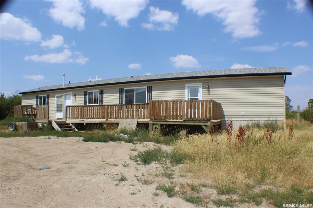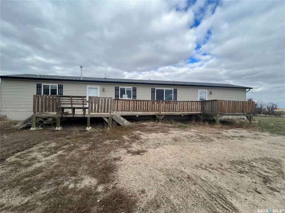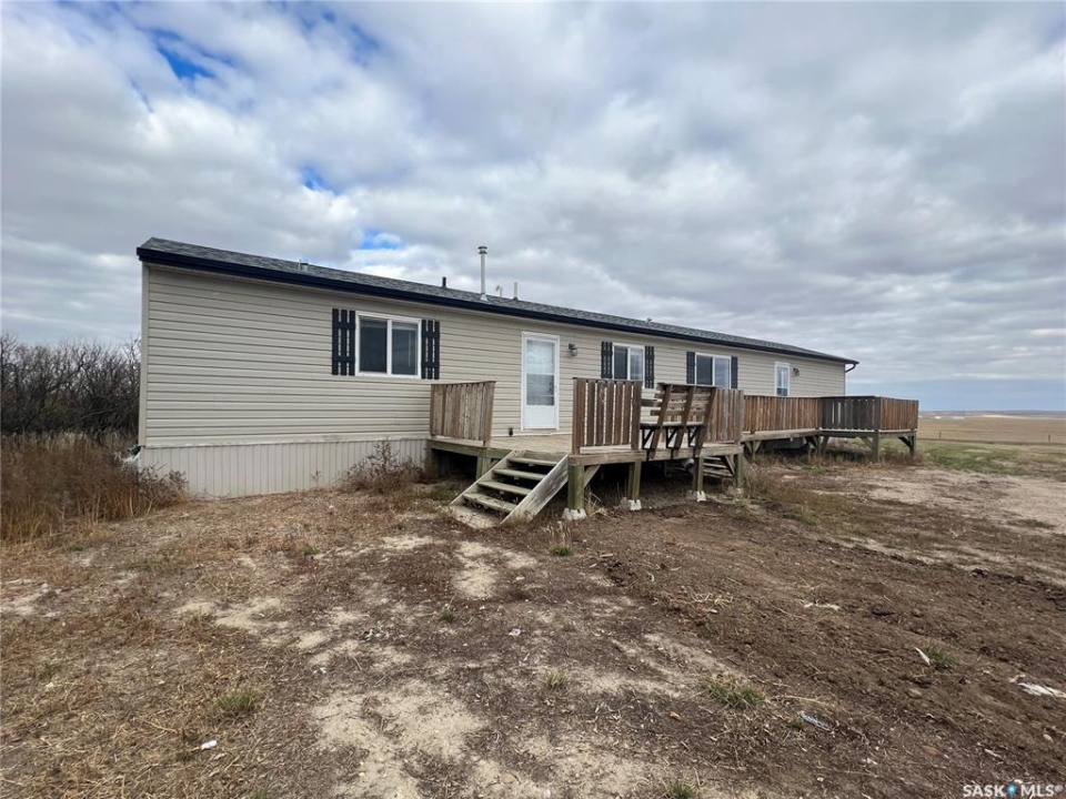 Welcome to this picturesque acreage boasting 4.94 acres of natural beauty and a well-maintained mobile home. Located in a serene countryside setting, this property offers a perfect combination of tranquility and convenience. The mobile home features 3 bedrooms, 2 baths, and cathedral ceilings, providing a comfortable and airy living space. With all appliances included, this home is ready for you to move in and start creating cherished memories. As you step inside the home, you will be greeted by a spacious and inviting living area with cathedral ceilings, creating an open and light-filled atmosphere. The well-designed layout ensures seamless flow between the living room, dining area, and kitchen. The kitchen comes equipped with modern appliances, making cooking, and entertaining a joy. The home comprises three bedrooms, offering ample space for the whole family or guests. The master bedroom features an en-suite bathroom for added privacy and convenience and a large walk-in closet. This property has privacy and great Saskatchewan views.