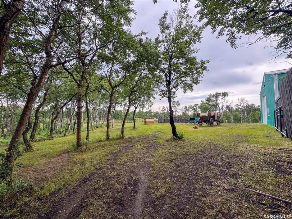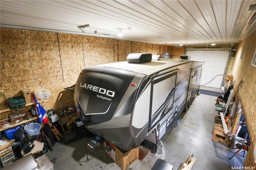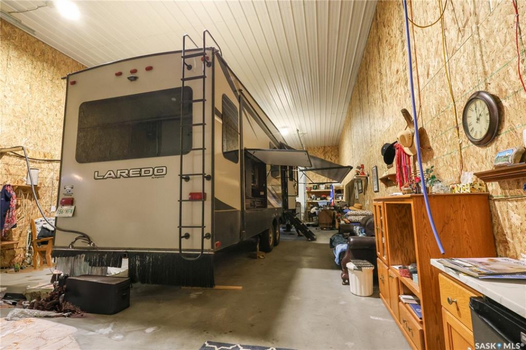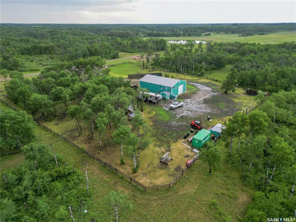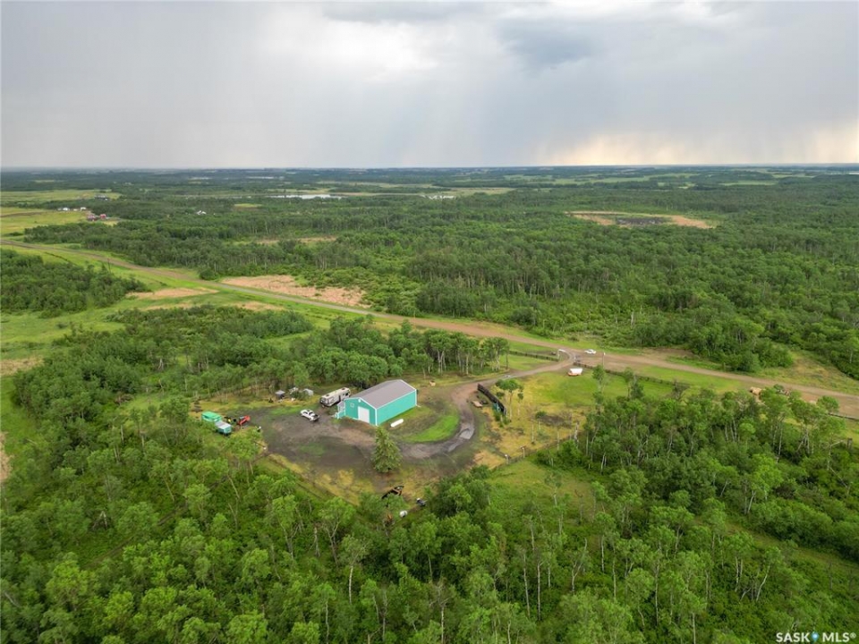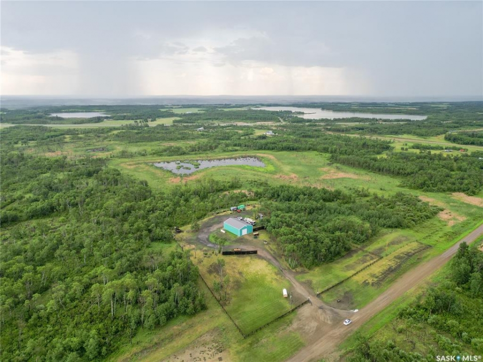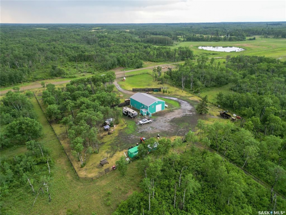 Remarkable 40 ft x 60 ft shop, built in 2021 and situated on 110.91 acres just 30 minutes from Prince Albert offers a perfect blend of functionality, space and privacy! This exceptional property features a spacious drive through shop with 14 ft overhead doors, providing ample room for large equipment or storage. The main floor includes a large workshop area, a cozy sitting space with ample cabinetry and a functional galley kitchen with sleek white cabinets. There is also a generous foyer and a 3 piece bathroom with a stand-up shower. The second level offers 2 sizable bedrooms, a combined laundry and bathroom area and an expansive storage room that provides plenty of space for all your organizational needs. Serviced by a 900 gallon concrete septic tank and a 54 ft well with a 36 inch diameter, this property provides a reliable water source, supplying approximately 25 ft of water. A brand new water softener and water filtration system was installed in 2026. The mature trees surrounding the property enhance the natural beauty and offer a sense of seclusion and privacy. Additionally, the property offers many trails throughout that are perfect for quading, hiking or simply enjoying the outdoors. This acreage offers plenty of space and versatile land creating exciting possibilities for a hobby farm or ranch. Whether you envision gardens, fenced enclosures, or room to accommodate your outdoor pursuits, the options are endless. Seize the chance to own this versatile property today!