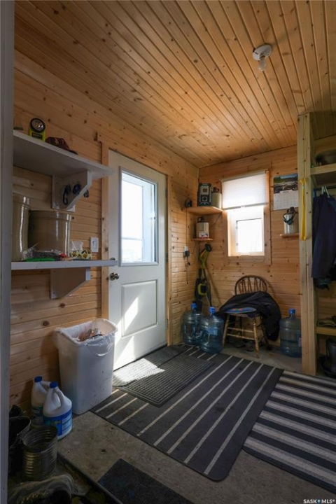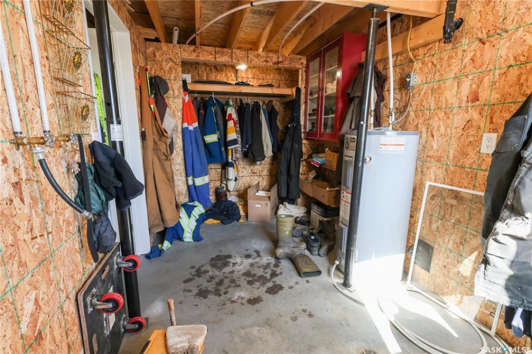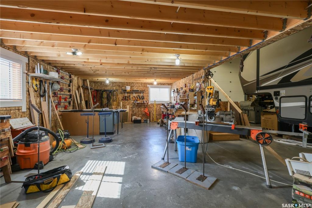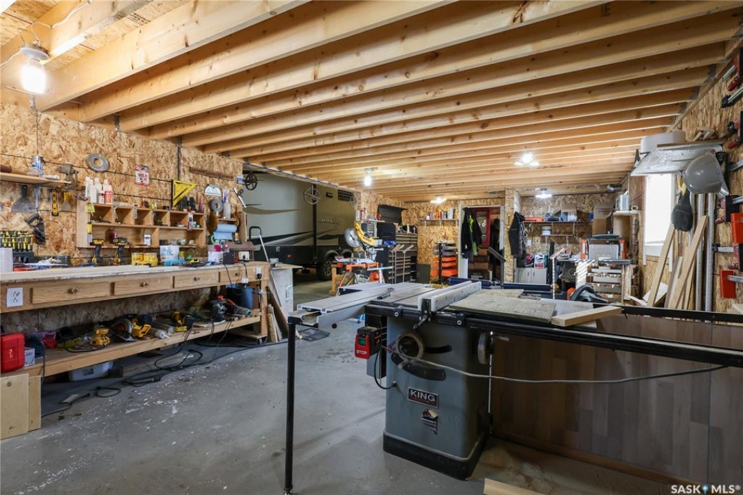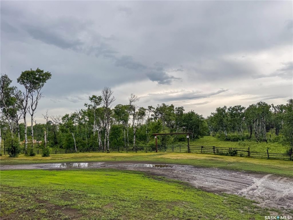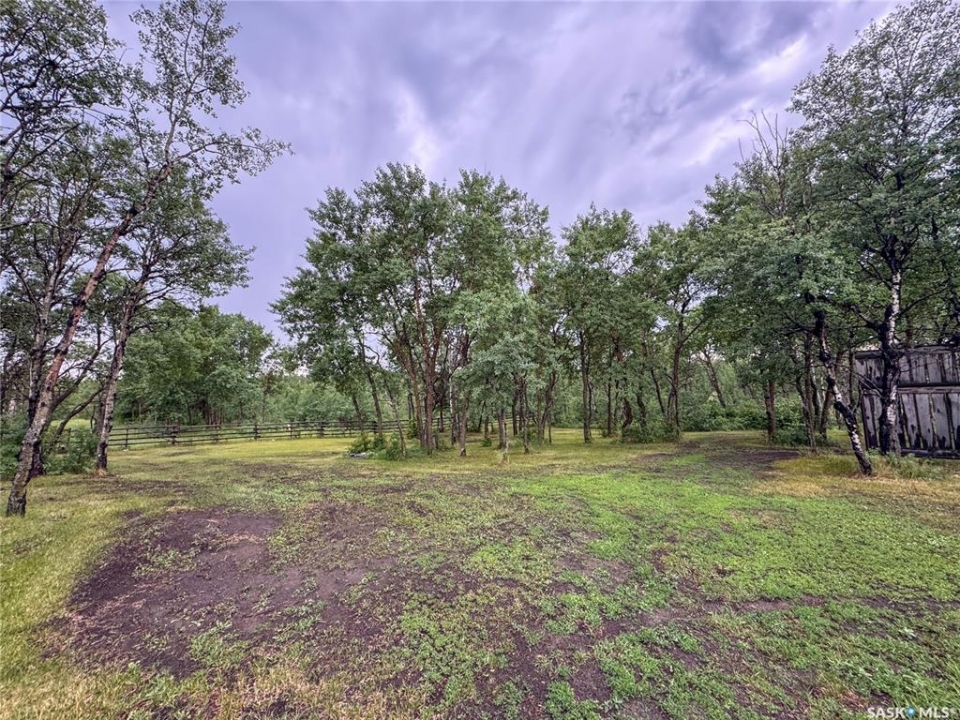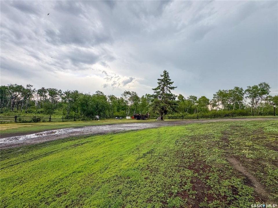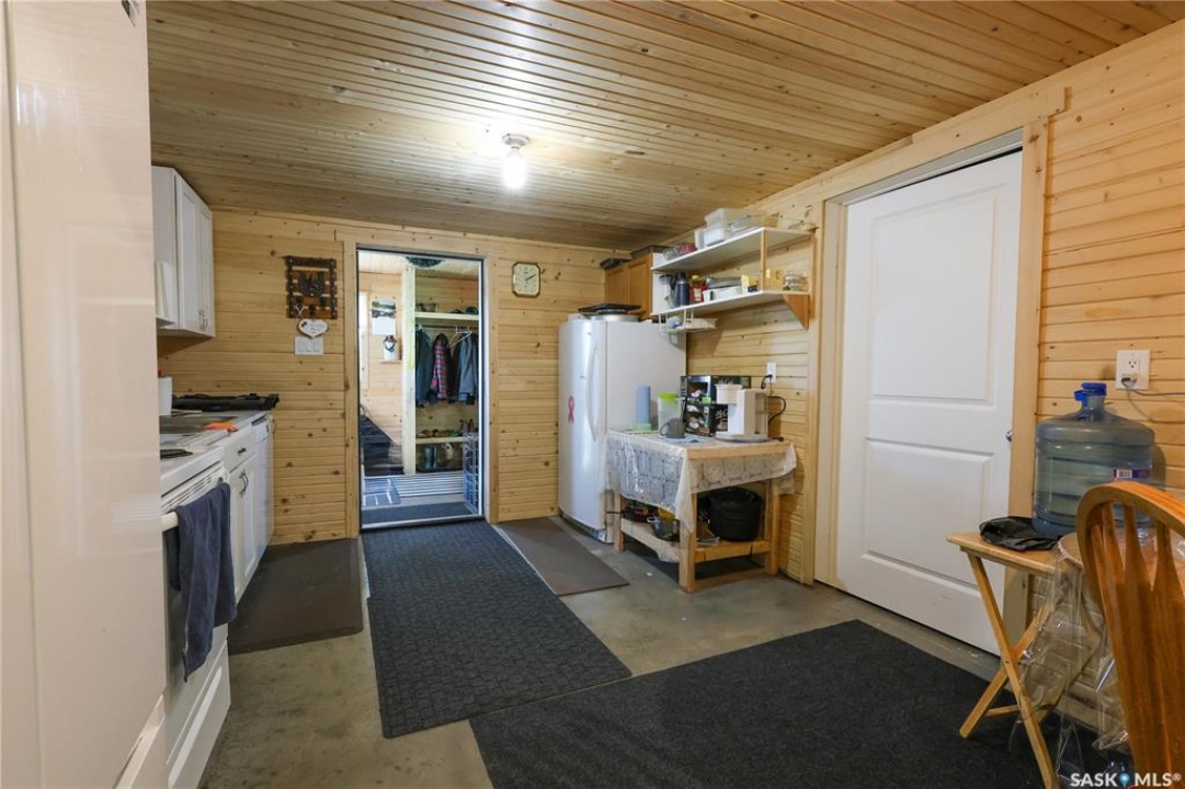 Remarkable 40 ft x 60 ft shop, built in 2021 and situated on 110.91 acres just 30 minutes from Prince Albert offers a perfect blend of functionality, space and privacy! This exceptional property features a spacious drive through shop with 14 ft overhead doors, providing ample room for large equipment or storage. The main floor includes a large workshop area, a cozy sitting space with ample cabinetry and a functional galley kitchen with sleek white cabinets. There is also a generous foyer and a 3 piece bathroom with a stand-up shower. The second level offers 2 sizable bedrooms, a combined laundry and bathroom area and an expansive storage room that provides plenty of space for all your organizational needs. Serviced by a 900 gallon concrete septic tank and a 54 ft well with a 36 inch diameter, this property provides a reliable water source, supplying approximately 25 ft of water. A brand new water softener and water filtration system was installed in 2026. The mature trees surrounding the property enhance the natural beauty and offer a sense of seclusion and privacy. Additionally, the property offers many trails throughout that are perfect for quading, hiking or simply enjoying the outdoors. This acreage offers plenty of space and versatile land creating exciting possibilities for a hobby farm or ranch. Whether you envision gardens, fenced enclosures, or room to accommodate your outdoor pursuits, the options are endless. Seize the chance to own this versatile property today!
