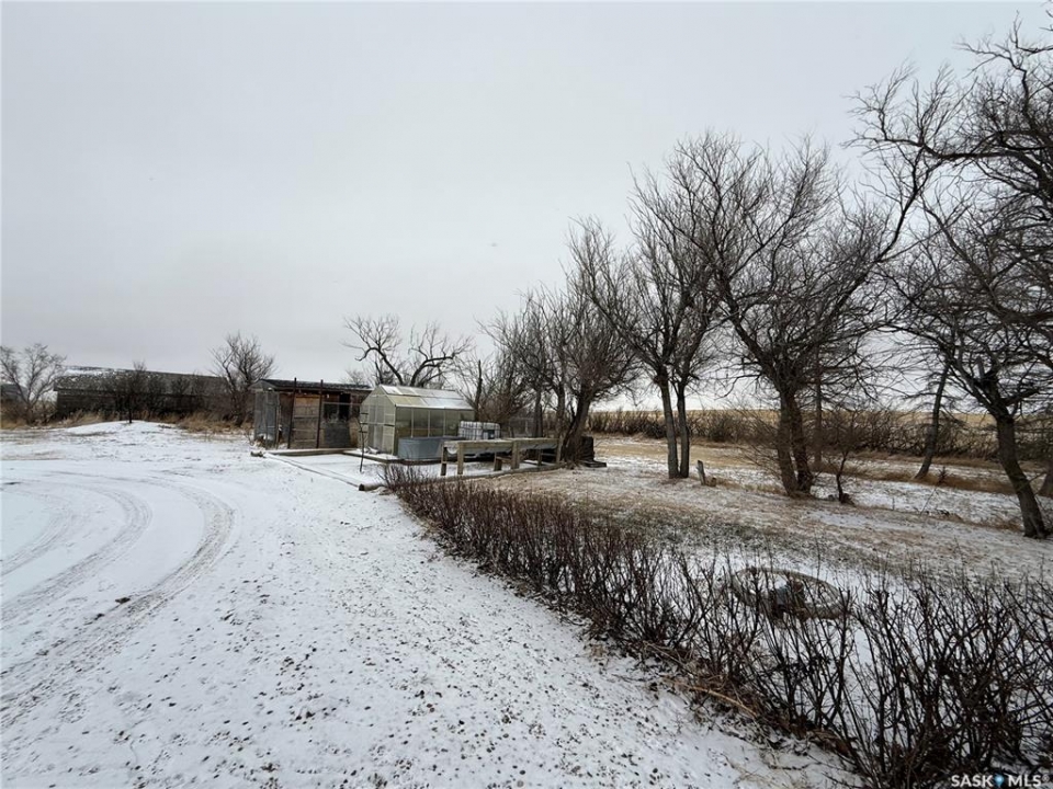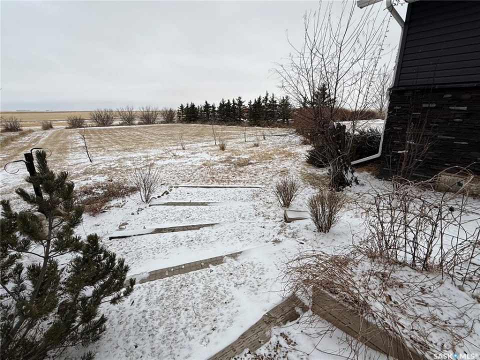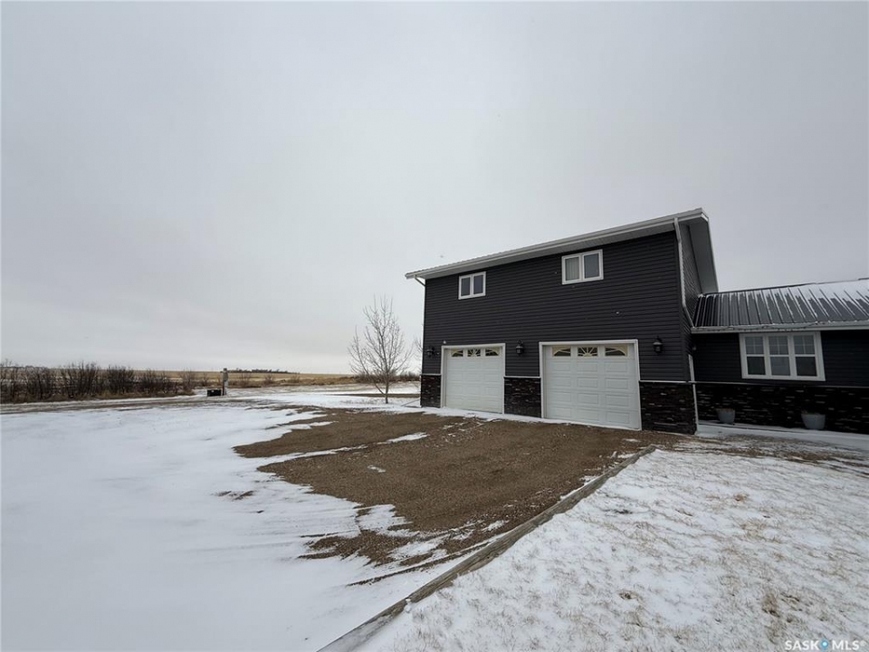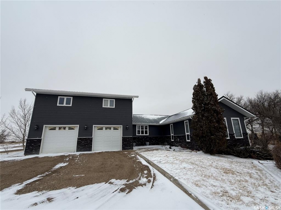 SE-04-25-20 W3 Space, Comfort & Functionality. Located just 4.5 miles south of Eston, this beautifully maintained acreage offers the perfect blend of space and rural charm. Featuring approx. 1,900 sq. ft. two-storey home (originally built in 1961 with a well-planned addition in 1998) Step inside to a large open-concept main floor that seamlessly connects the kitchen, dining, and living areas—perfect for everyday living and entertaining. The sunken living room is a cozy highlight, complete with a stunning stone radiant gas fireplace. The spacious dining area features garden doors that lead out to a covered deck, overlooking the beautifully landscaped yard. The main level also includes a useful bedroom (ideal as an office or den), a bright and versatile office/gym space filled with natural light, and a 4-piece bathroom with a jetted tub and tiled surround. Convenient access to the attached 30' x 30' double garage is also found on this level. Upstairs, you'll find three large bedrooms, including an expansive primary suite with windows on both sides and a walk-in closet. Most of the home has been upgraded with new triple-pane windows for improved efficiency and comfort. The basement offers even more functional space, including a family room, laundry/utility area, additional office space, and a 3-piece bathroom. Outside, the property truly shines. Enjoy the meticulously landscaped yard featuring stonework, tiered steps, mature trees, and a new covered deck. Additional features include: 44' x 76' heated shop with gas radiant heat, concrete floor, oil catch drain, and 24' x 18' power doors. The home has a metal roof and updated siding with stone accents. Cement patio area. Dugout located behind the shop. Large shed, barn, and greenhouse for added versatility .This is a rare opportunity to own a well-equipped acreage in a great location—offering space, privacy, and everything you need for country living.