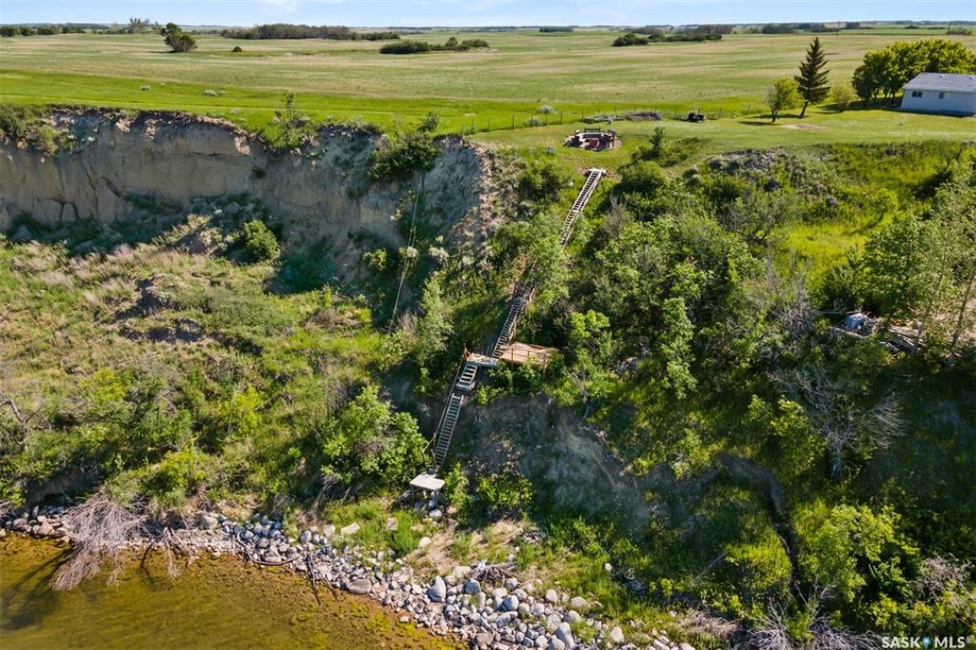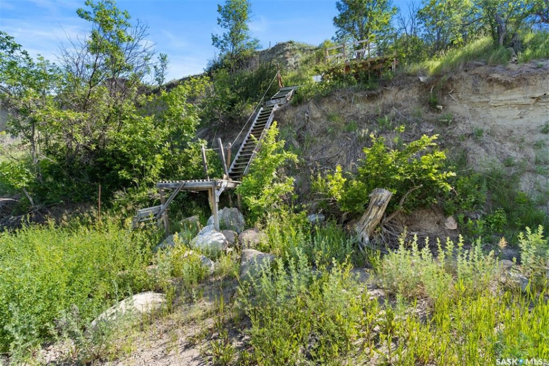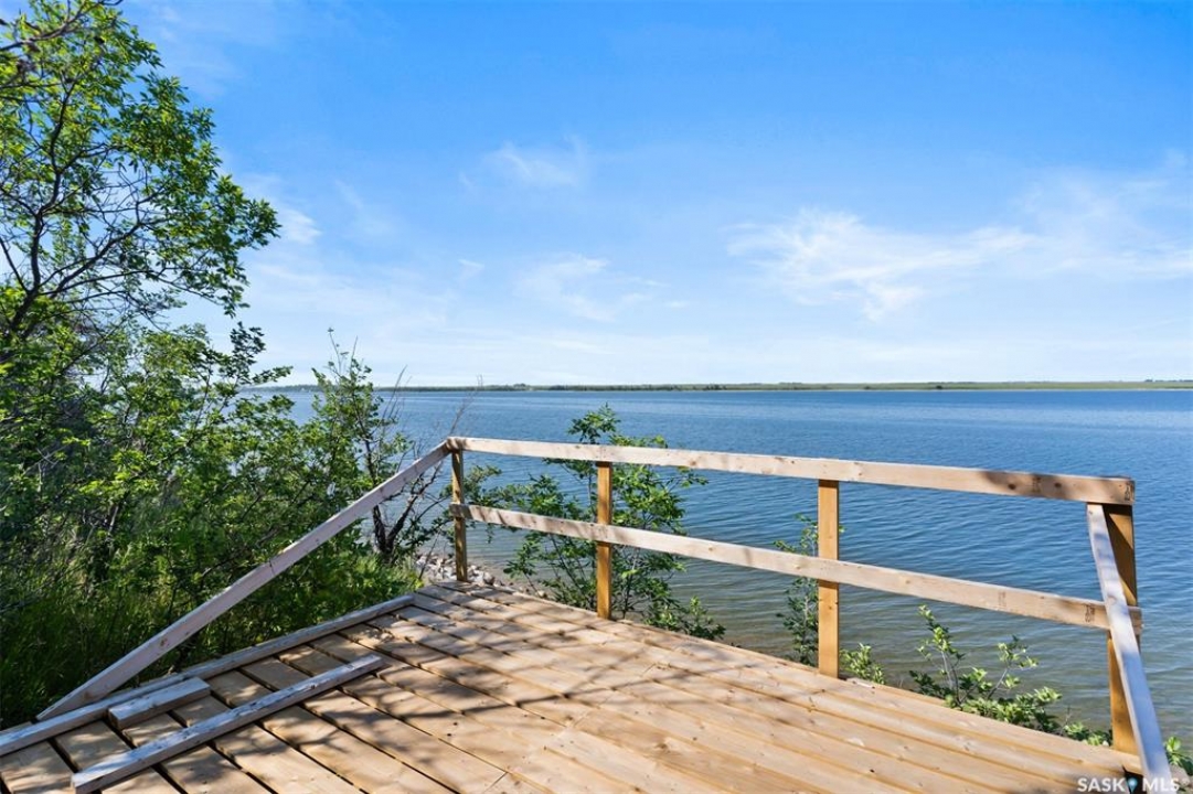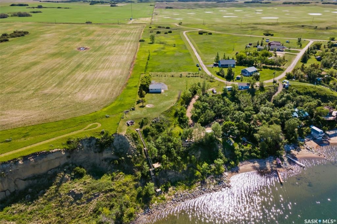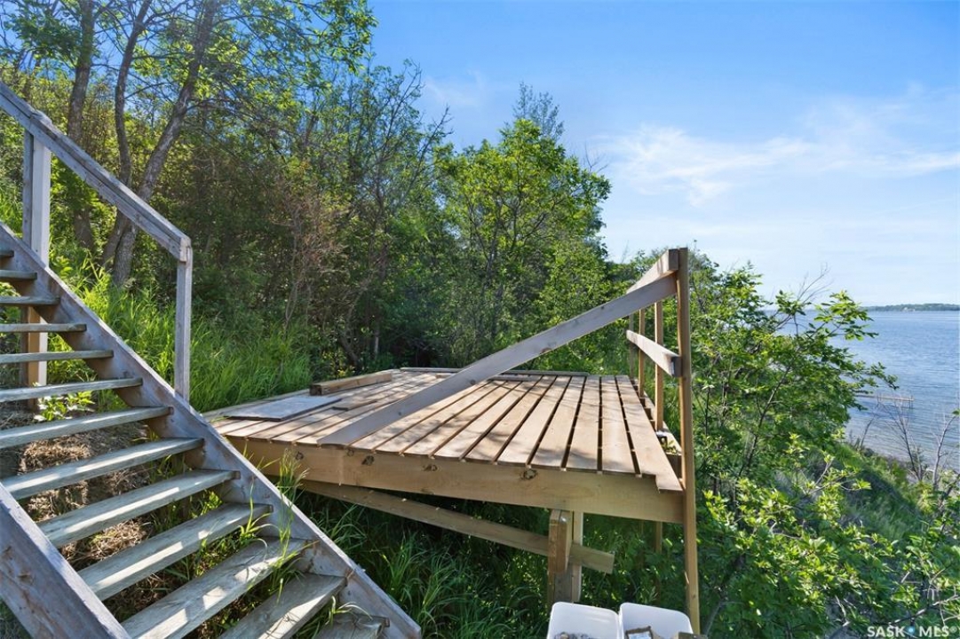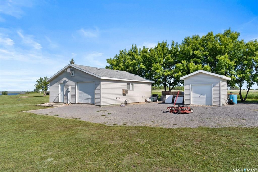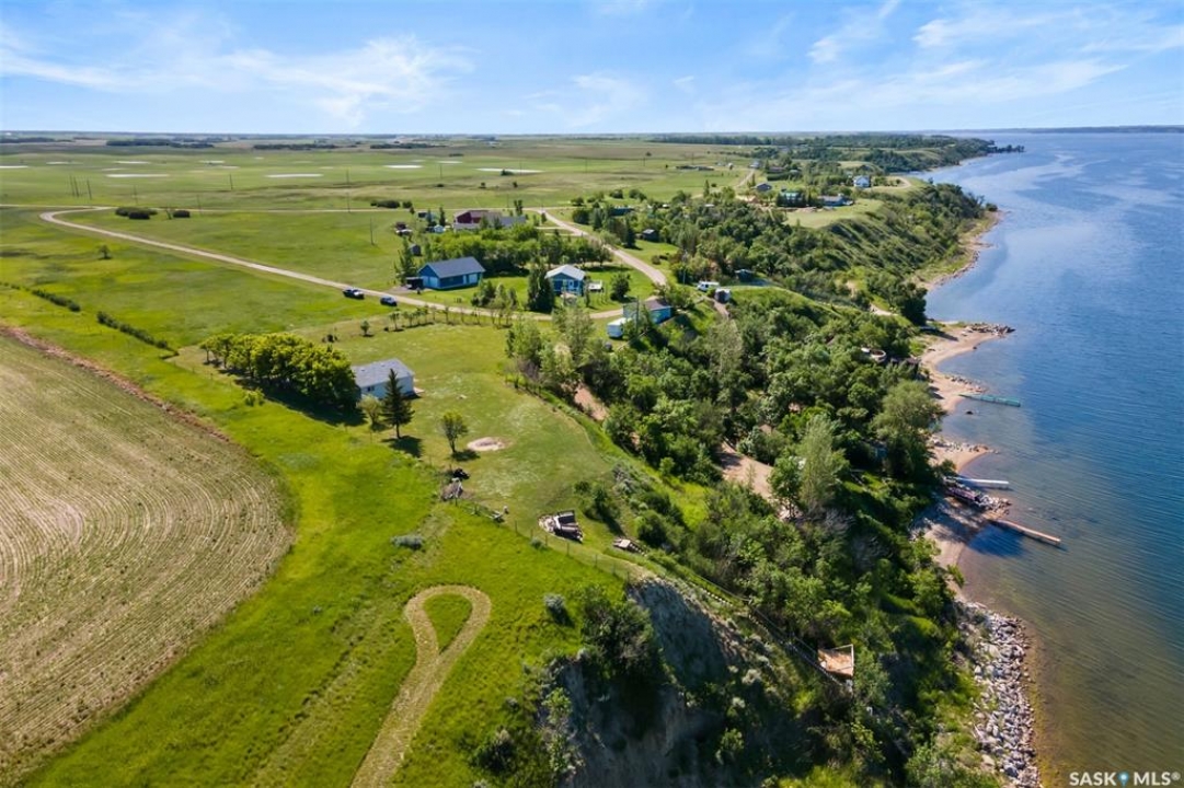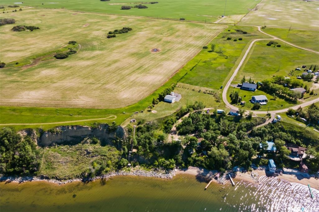 WATERFRONT LOT – 140 FEET OF LAKE FRONT, 40,000 SQFT – DOUBLE GARAGE HAS KITCHEN, SLEEPING AREA AND BATHROOM! This lot it 0.9 acre, is at farthest end of the resort and looks over and up the lake. There is a double garage (28x28), shed and 1250 galon septic. Ideal building site for cabin or lake house. Natural gas to lot edge. Double garage includes a 12x12 kitchen, 9.10x8.2 sleeping area and a 6.7x5 bathroom (water must be manually filled). The garage also insulated, boarded and includes a 100 amp panel and wall a/c. There is a stairway with landings down to the beach (30 feet easement). MacPheat Park is 30 minutes from Regina on mostly paved roads, the last few Km's are on grid, it has its own beach and boat launch and is minutes from Rowans Ravine Provincial Park. RV's/Trailers can be placed on the lot 5 years and then another 4 after build permit has been taken out. Please contact your Realtor to schedule a private tour.