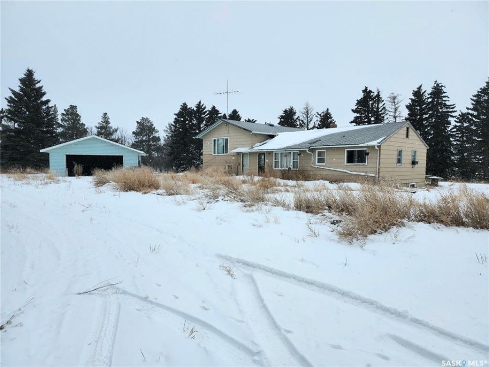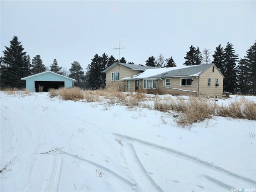 Discover the potential of this 15-acre parcel located near Handel, Saskatchewan—offering the perfect blend of privacy, space, and opportunity. Surrounded by mature, healthy trees and a well-established shelterbelt, this property provides a peaceful, acreage retreat ideal for families looking to build or invest in a rewarding project. The expansive yard offers plenty of room to create your dream outdoor space, whether for recreation, gardening, or future development. The main residence currently not in liveable condition spans approximately 3,500 sq ft and features two separate living areas—similar in layout to a duplex—offering a total of 7 bedrooms and 4 bathrooms. While the home has solid bones, it requires significant renovations to restore it to its full potential. Additional highlights include 24 x 24 garage built in 2005, along with a previously functional well and septic pump-out system, 60 x80 quonset in good condtion.