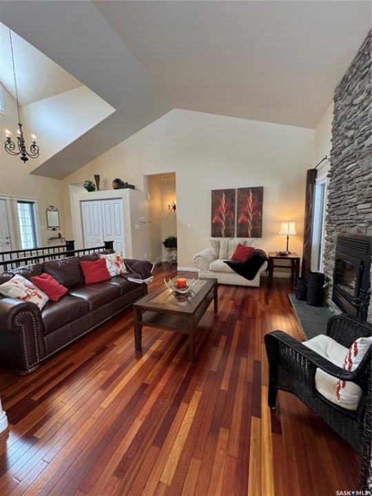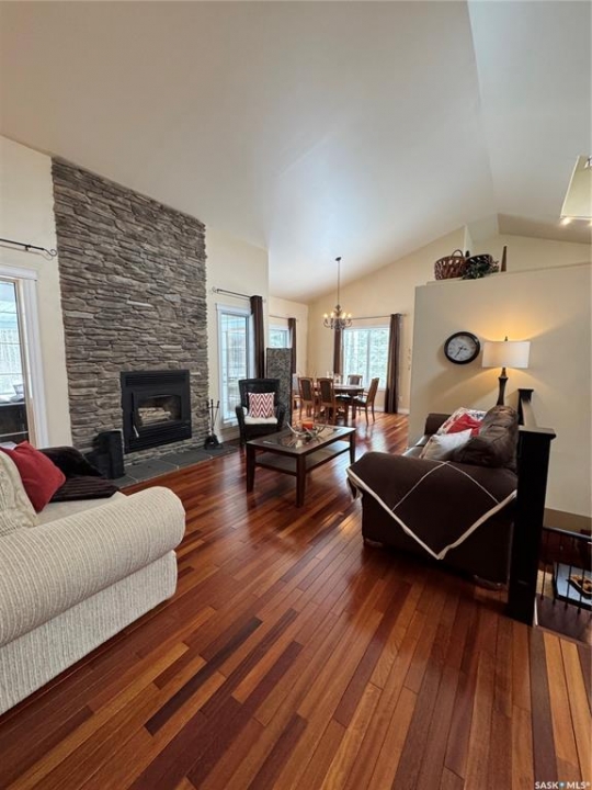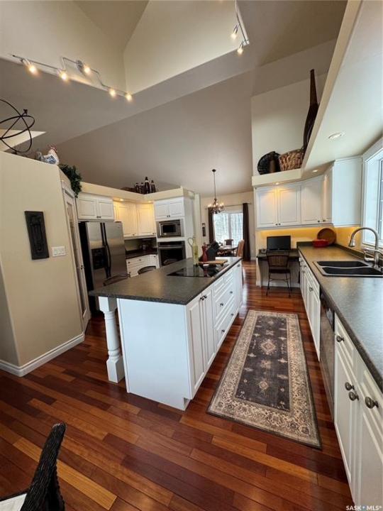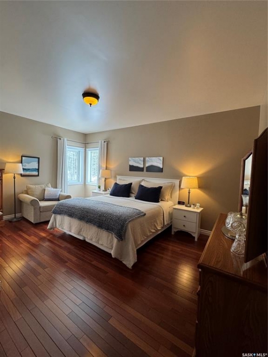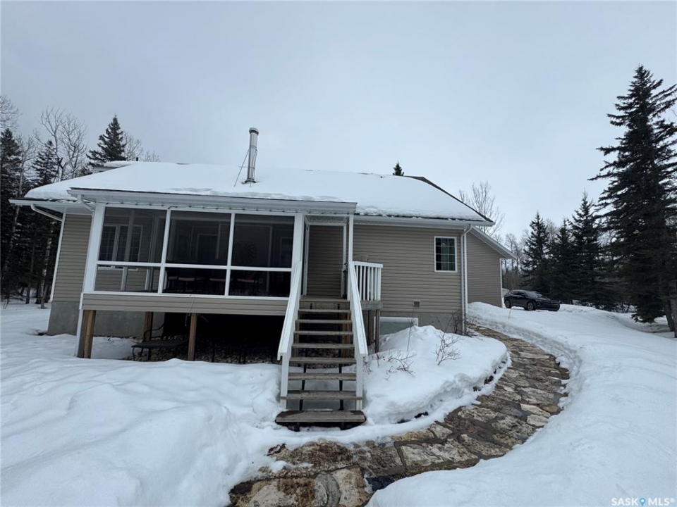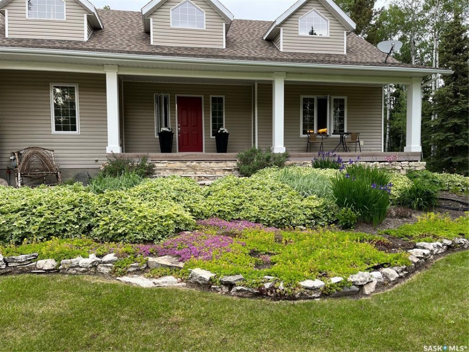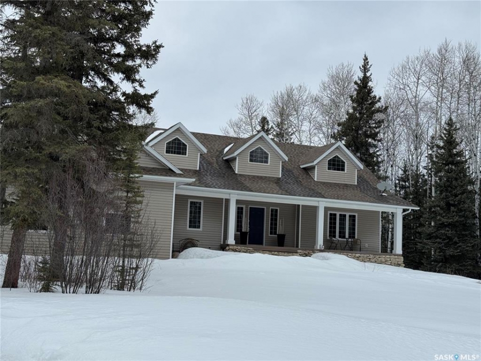 Tucked away in a peaceful, serene setting, this 2004-built, 3-bedroom, 3-bathroom home offers the perfect blend of comfort, space, and functionality. Situated on 4.96 acres, this property is ideal for those seeking privacy while still enjoying modern conveniences just minutes from town.Step inside to vaulted ceilings and charming dormer windows that fill the home with natural light. The main level features beautiful hardwood floors and a thoughtfully designed kitchen with ample cabinetry, built-in oven, & stovetop. A cozy wood-burning fireplace creates the perfect atmosphere for chilly evenings, while the 3 season sunroom off the dining area provides a relaxing space to enjoy backyard views throughout much of the year.The spacious primary suite serves as a private retreat, easily accommodating a king-sized bed & offering a walk-in closet along with a 4-piece ensuite complete with a Jacuzzi tub. Main-floor laundry adds everyday convenience.The fully developed lower level includes a large family room with heated floors, 2 generously sized bedrooms, a versatile bonus area ideal for workouts or hobbies, plus abundant storage and cold storage. A walk-out provides direct access to the attached garage.Outside, enjoy peaceful mornings on the front veranda or tackle projects in the impressive 36' x 45' heated shop. The landscaped yard features garden space, a garden shed, & a fire pit patio.Additional highlights include potable well water with reverse osmosis system, forced-air heating, central air conditioning, central vacuum, and high-speed WiFi for year-round comfort.Located just minutes from Hudson Bay, where we have a K–12 school (built in 2015), new swimming pool, skating arena, curling rink, hospital, library, a movie theatre.The area is surrounded by scenic lakes, wildlife, and extensive sledding trails, making it a paradise for outdoor enthusiasts.This turnkey property offers the best of country living with modern amenities.schedule your private viewing today!
