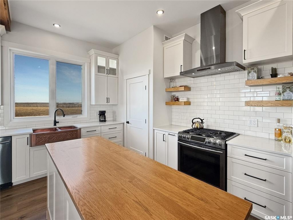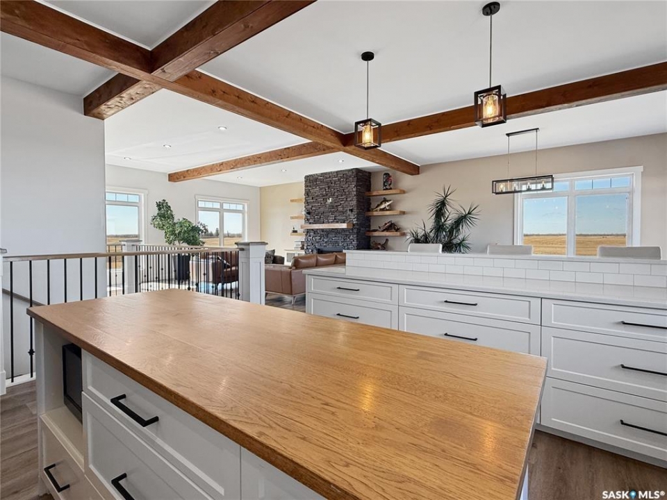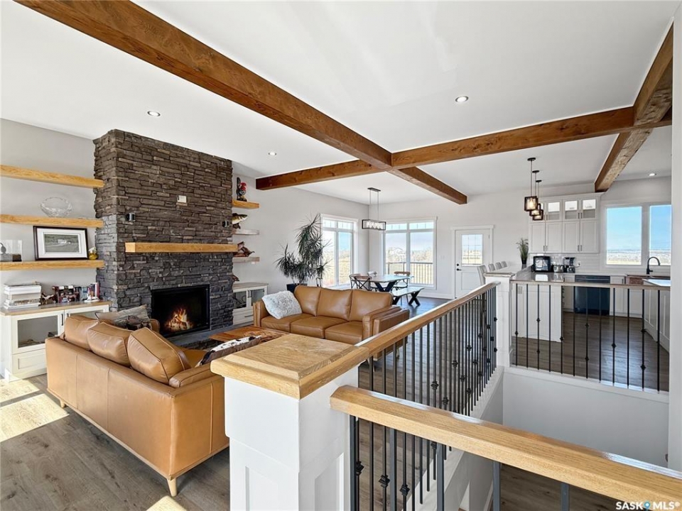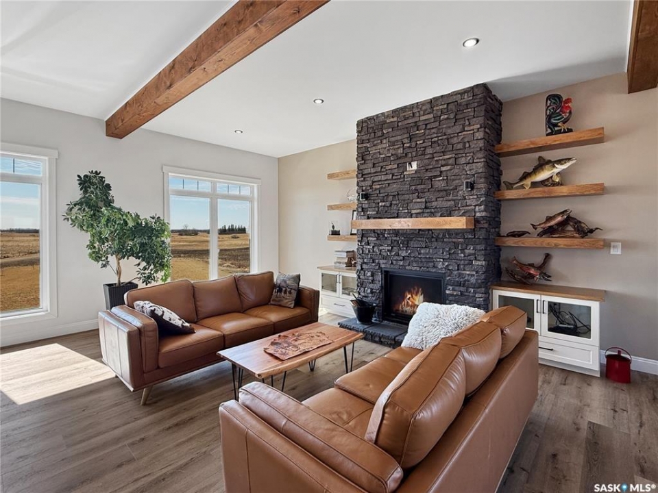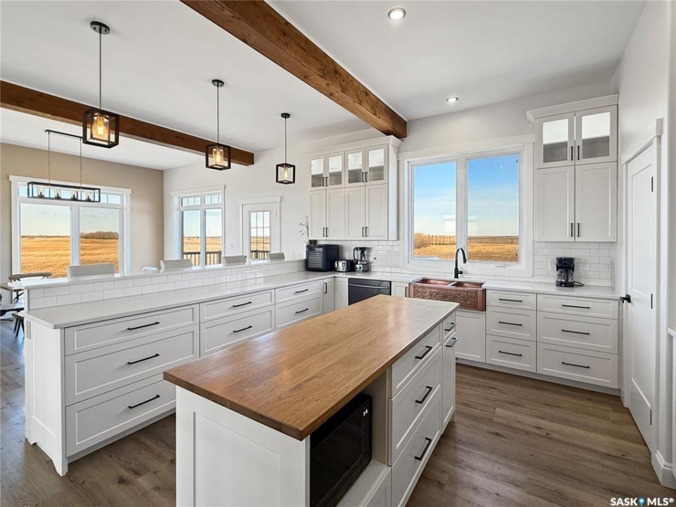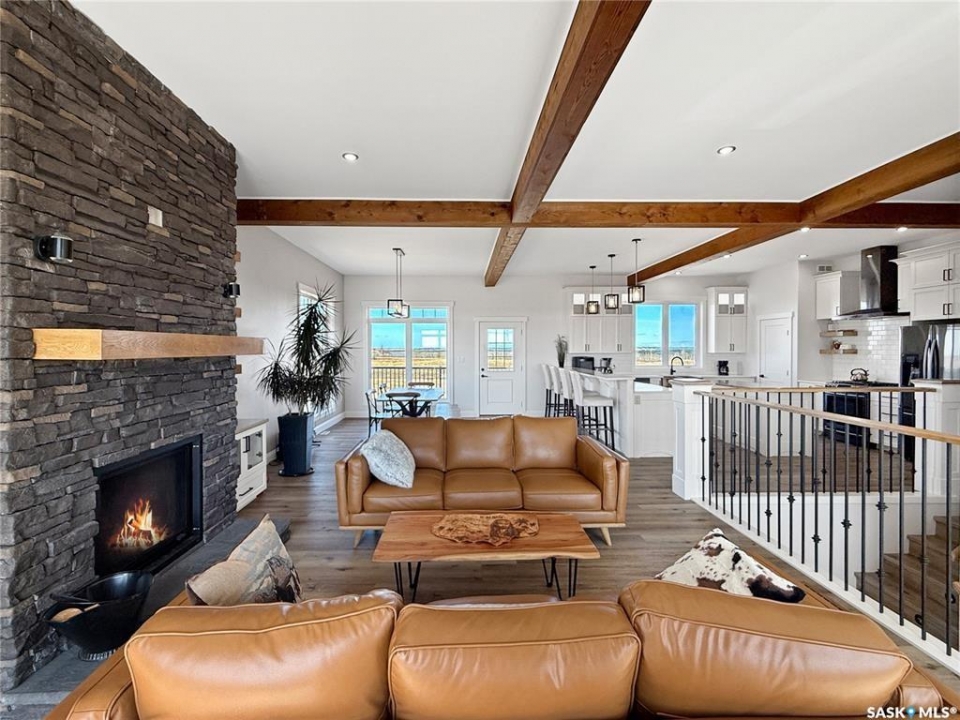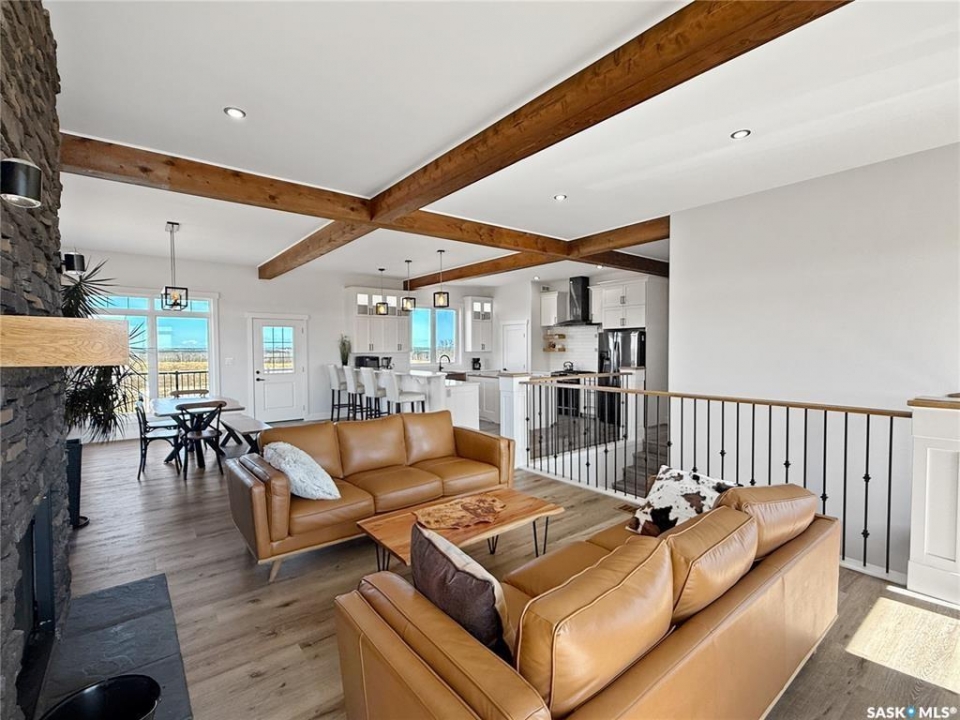 Country living at its finest with breathtaking views. This custom-built 2,835 sq ft home offers 4 bedrooms, 3 bathrooms, and a triple attached garage, all set on 10 acres just minutes from town. The main level features 10-foot ceilings and oversized windows, filling the home with natural light. The open-concept layout includes a chef's kitchen with a large island, breakfast bar, 6-burner gas range, walk-in pantry, and copper farmhouse sink. The spacious living room with wood-burning fireplace flows seamlessly into the dining area. The primary suite offers stunning views, a 5-piece ensuite, walk-in closet, and direct deck access. Two additional bedrooms and a 3-piece bath complete the main floor. The bright lower level features 9-foot ceilings, large windows, a full kitchen, additional living space, bedroom, 4-piece bath, and a dedicated office—ideal for extended family or guests. A combined mudroom and laundry area provides convenient access to the garage. The triple attached garage includes a 30' x 26' drive-through bay plus an additional 14' x 22' bay. Other notable features include: NG generator, city water, central air, pump-out system, and LED lighting. A perfect blend of space, function, and lifestyle—this could be #yourhappyplace.