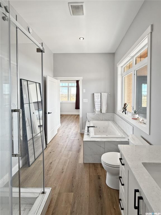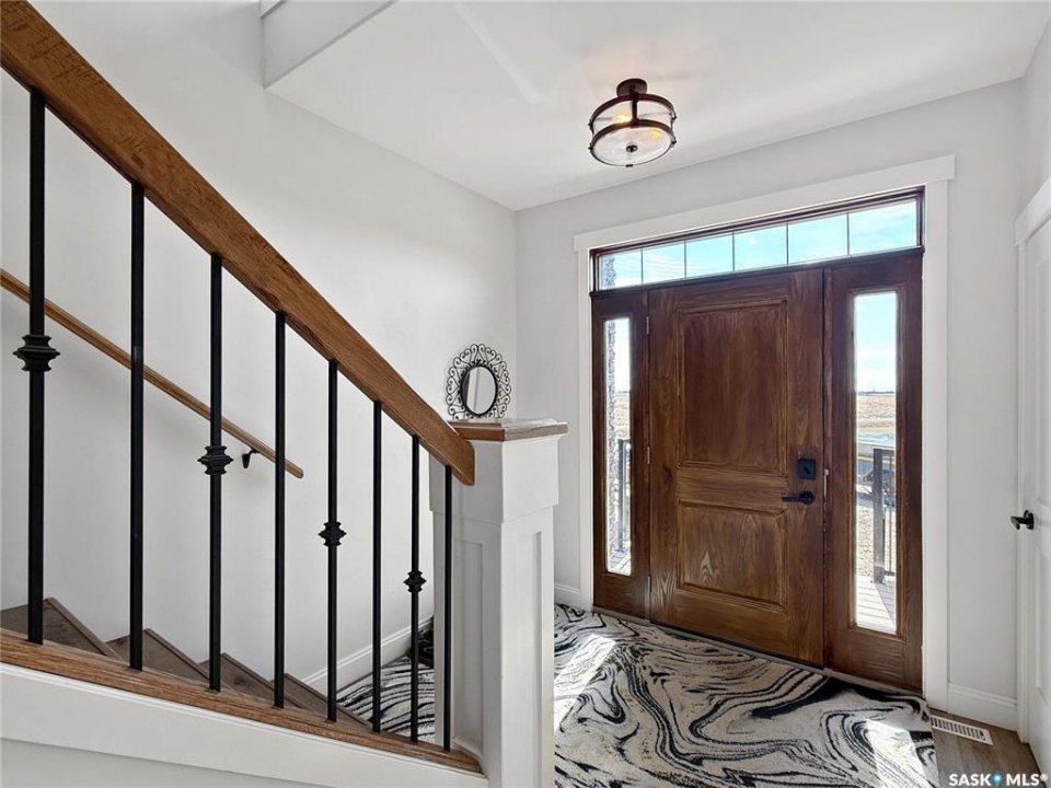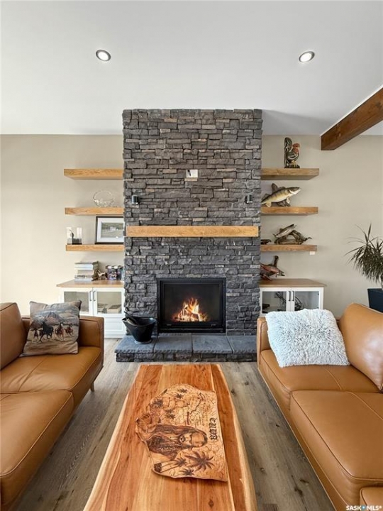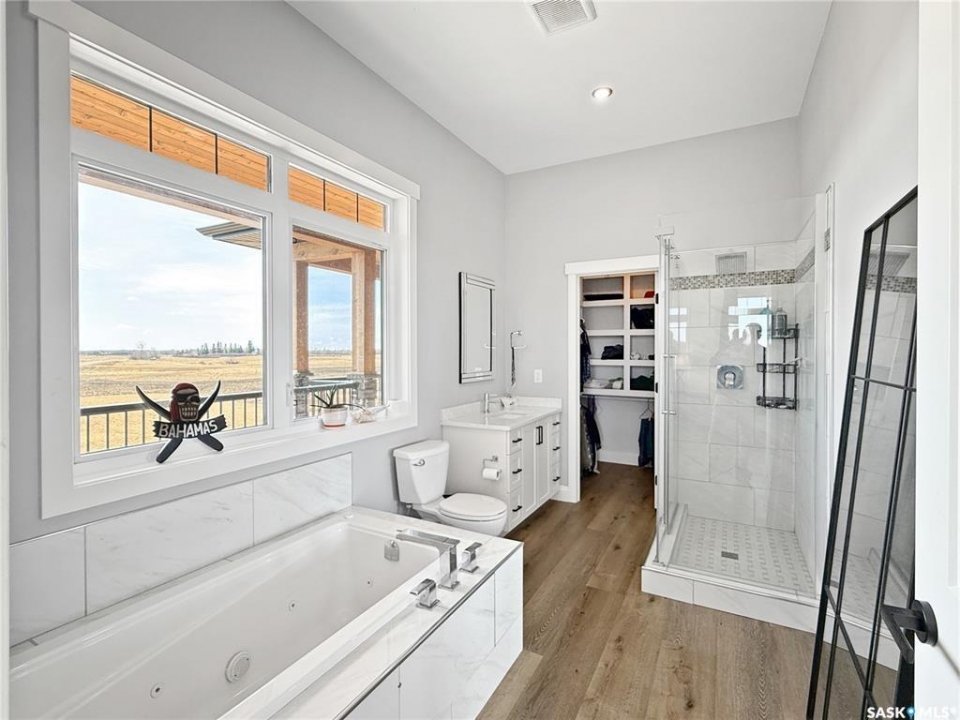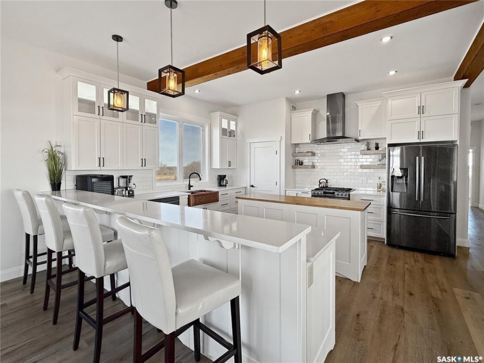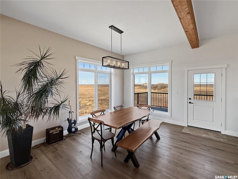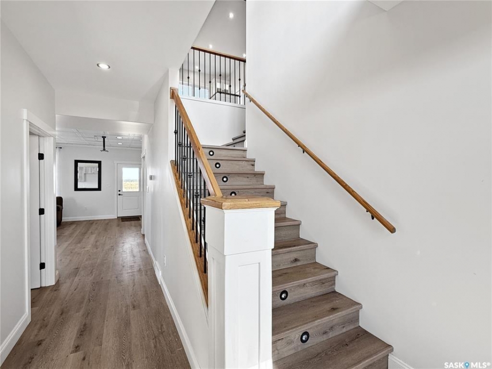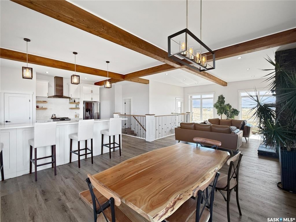 Country living at its finest with breathtaking views. This custom-built 2,835 sq ft home offers 4 bedrooms, 3 bathrooms, and a triple attached garage, all set on 10 acres just minutes from town. The main level features 10-foot ceilings and oversized windows, filling the home with natural light. The open-concept layout includes a chef's kitchen with a large island, breakfast bar, 6-burner gas range, walk-in pantry, and copper farmhouse sink. The spacious living room with wood-burning fireplace flows seamlessly into the dining area. The primary suite offers stunning views, a 5-piece ensuite, walk-in closet, and direct deck access. Two additional bedrooms and a 3-piece bath complete the main floor. The bright lower level features 9-foot ceilings, large windows, a full kitchen, additional living space, bedroom, 4-piece bath, and a dedicated office—ideal for extended family or guests. A combined mudroom and laundry area provides convenient access to the garage. The triple attached garage includes a 30' x 26' drive-through bay plus an additional 14' x 22' bay. Other notable features include: NG generator, city water, central air, pump-out system, and LED lighting. A perfect blend of space, function, and lifestyle—this could be #yourhappyplace.