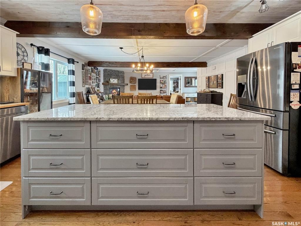 Just 8 minutes south of Esterhazy in the RM of Fertile Belt sits this fully renovated spacious 6-bedroom, elite 3-bathroom home on 14.56 acres—. We're talking down-to-the-studs renos/additions in 2016/2017, inside and out, electrical/mechanical/insulation & cosmetic. No “future projects" here. Just unpack. A timber stepping path with west and north facing decks set the stage here. An over sized entry way with copious storage greets you on the south side of the house. Steps up into the open concept main floor & you'll feel it right away—on trend color hues, granite countertops, updated cupboards, beams, a warm fireplace, and a clean mix of brick, ceramic tile, and hardwood running through the main floor. It's the kind of space that feels solid, finished, and built to last & hold its worth. The master bedroom is a league of its own, large well lit, with a 5 pc ensuite and walk in.5 More bedrooms and another full bath finish the main floor.The basement?Fully finished. 2 separately connected zones to the basement rec area. Whether its cinematics, board games/cards or play there is a space and a place for everyone.A basement 3 pc bath & a large fully separate laundry keep your unmentionables out of site to your crew with a updated washer and dryer and large washing sink. All mechanical was smartly designed in to one area, No wasted square footage. Outside is where it really separates itself. A natural gas-heated pool (yes, no reason to drive to town this summer),a fully insulated 3-car detached garage with concrete, multiple outbuildings, and more than enough room to expand, start a hobby & setup, or just enjoy your own space without neighbours on top of you.Whether it's a big family, guests, or working from home—you've got options.And here's the kicker… taxes are just $968/year. Acreages like this don't come around often—especially this close to town, fully redone, and priced to make sense. Its the perfect time to move, seed your garden & hit the pool for the summer.