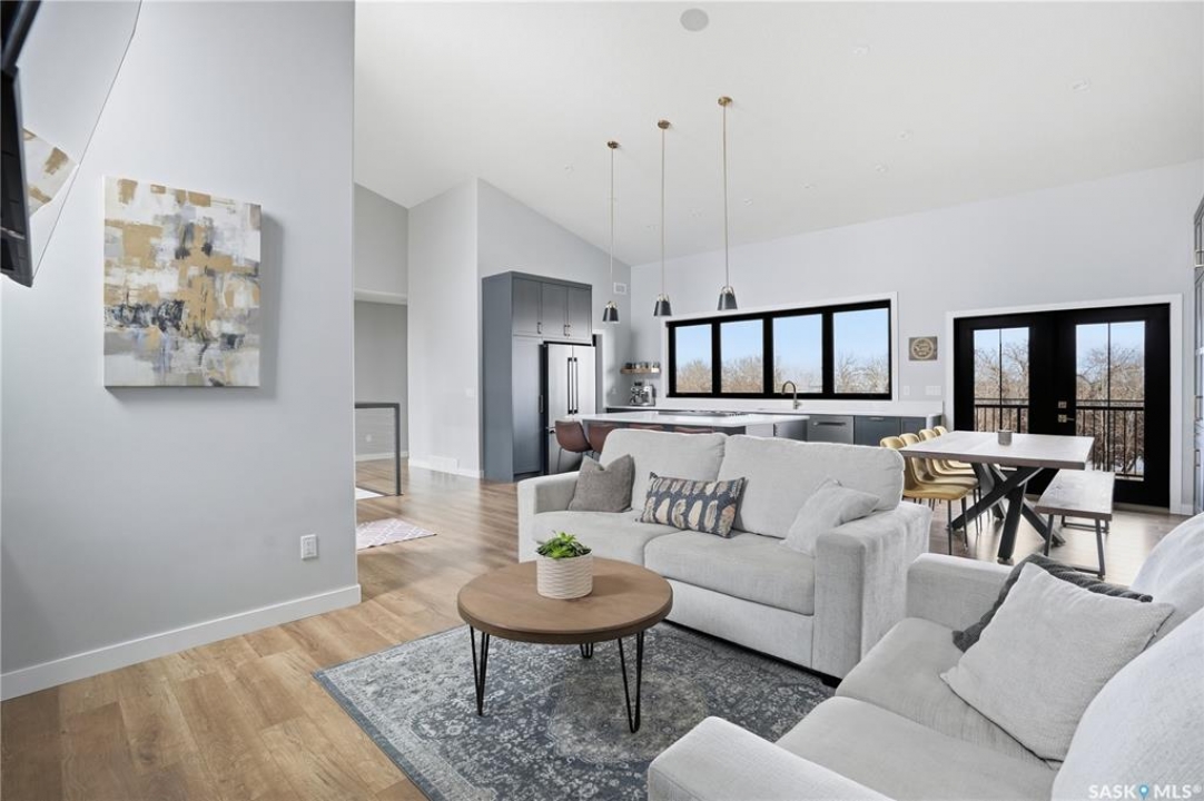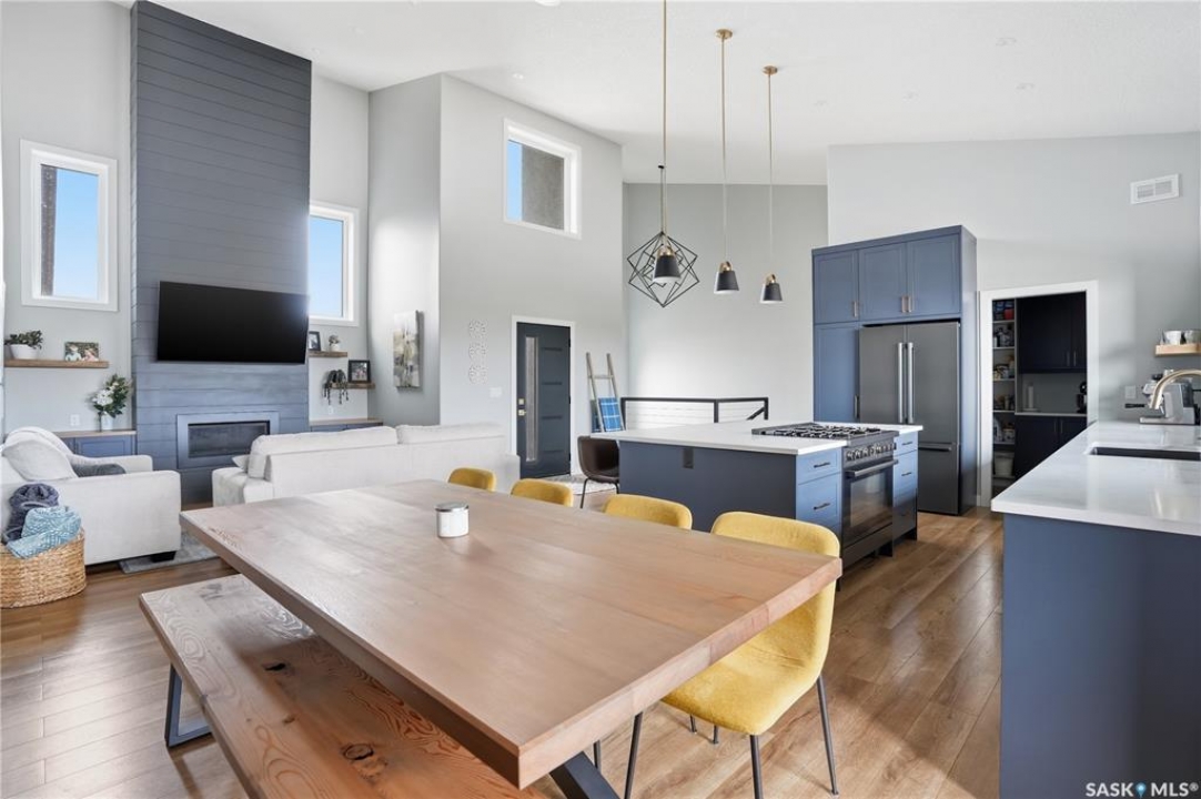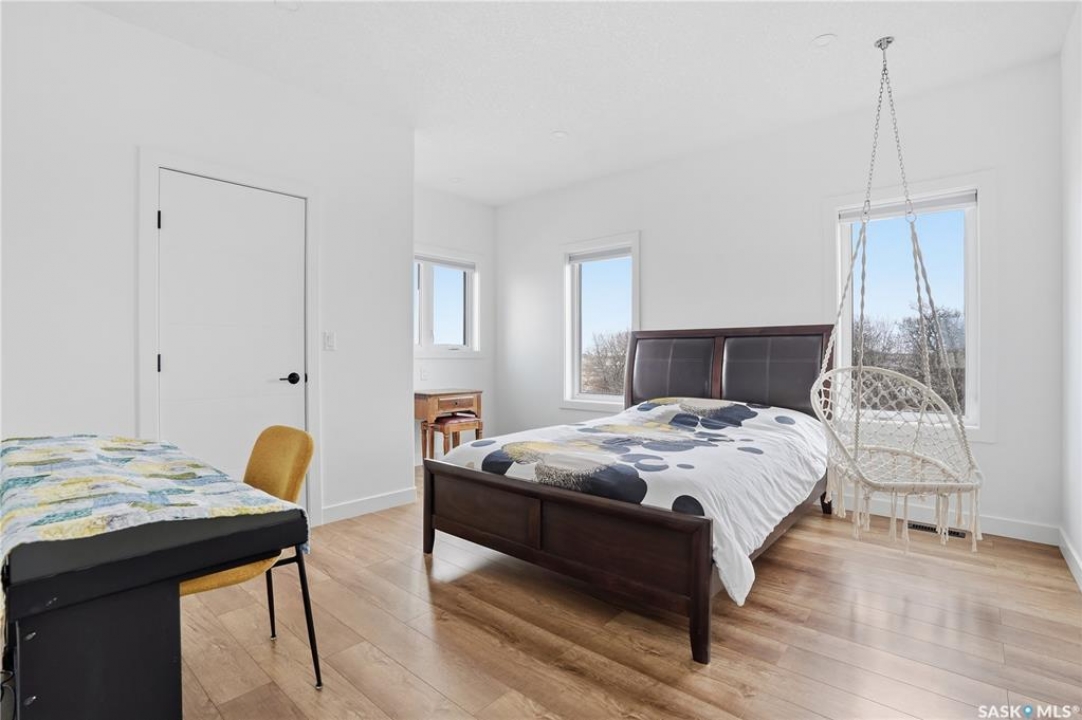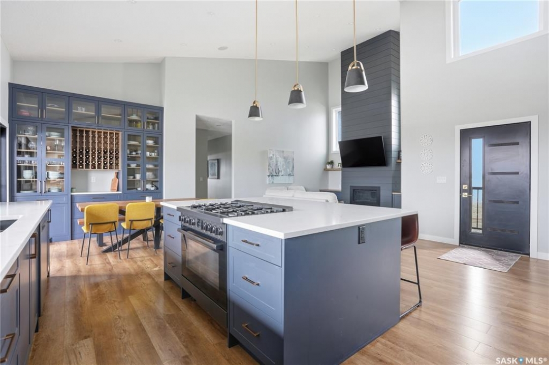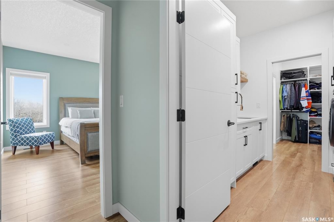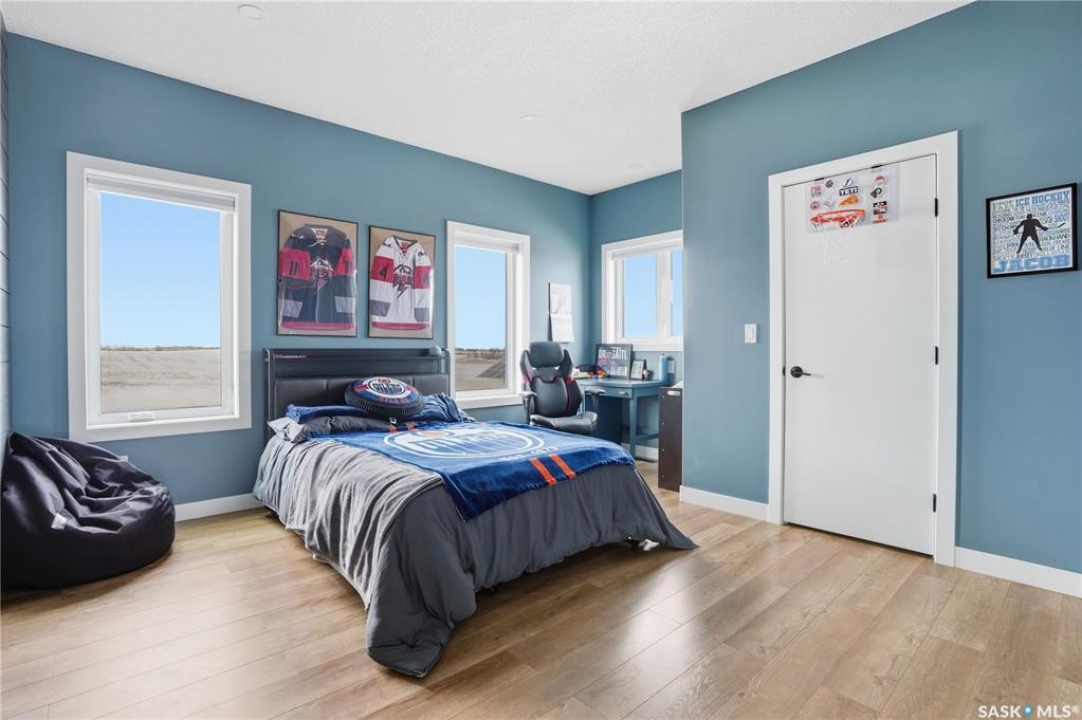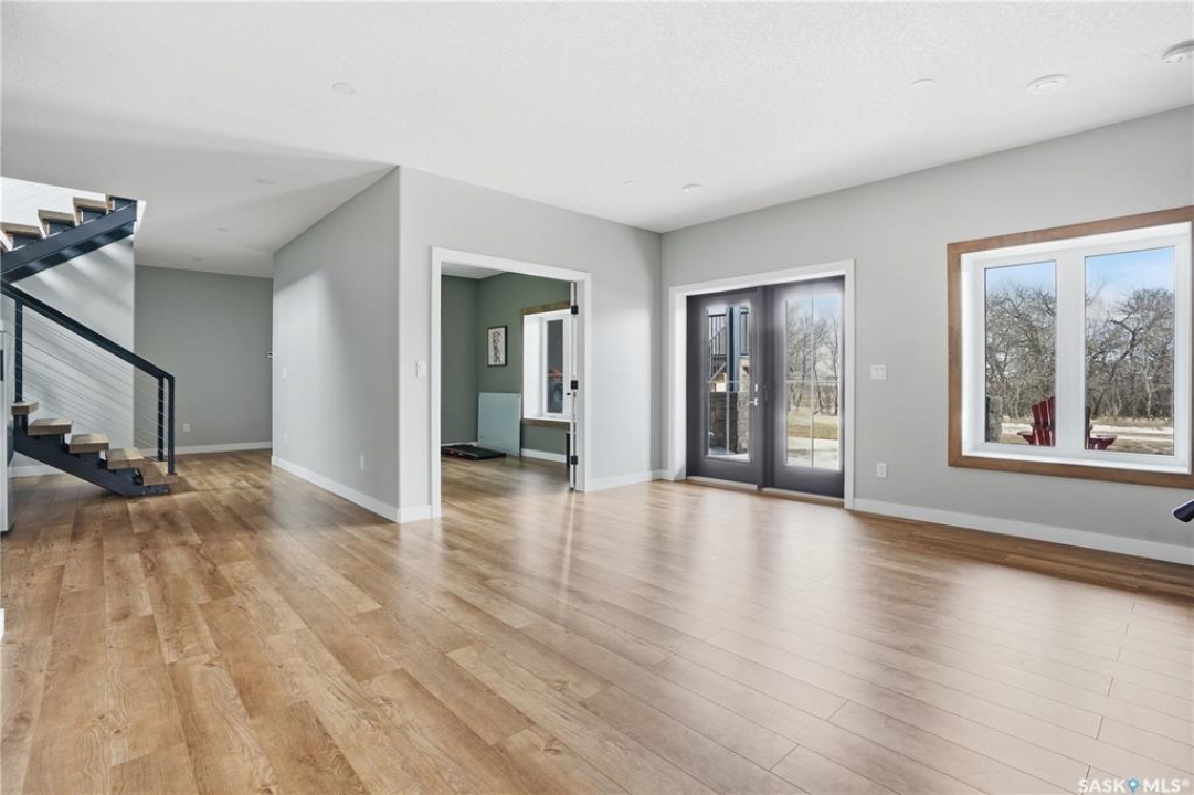 Welcome to acreage life on just over 10 acres with direct highway access, only 30 minutes to the city. This 2022 custom home was built with extraordinary craftsmanship and features throughout. Upon entering the front entrance, you are welcomed into an expansive great room with tons of natural light and towering vaulted ceilings. The custom kitchen is east facing with plenty of windows allowing you to enjoy the morning sun either sitting at the huge quartz topped island or through the access and on your large deck. The island houses a 36" bosch gas range for the fussiest of chefs. Plenty of storage is everywhere with plenty of cabinetry as well as the walk-in pantry. The dining area supports a large table for large family gatherings. The living room is focused on a gas fireplace with room for a flat-screen above. The back entrance comes in off of your huge 36x32 heated and insulated garage with a 2-pce bath and a convenient locker closet room. The Primary bedroom is well appointed with a 5 pce ensuite, featuring his/her sinks, a doorless shower and soaker tub. A walk-in closet, with direct access to the main floor laundry is a well planned touch. The other side of main floor features 2 large bedrooms and 4 piece bath. Downstairs you will find plenty of natural light from the walk-out deesign. A huge rec-room is centered around wood burning fireplace. A well lit office, 4th bedroom, 3 piece bath with custom shower and wet bar round out the basement. The property runs off of town water, is primarily supplimented with solar electricity and has in-floor heat throughout basement, garage as well as ensuite and main bath upstairs. Too many features to list them all, book your personal showing today.