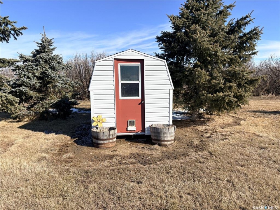 Acreage for Sale with dream shop in the RM of Newcombe #260. This property is located on 44.92 acres the yardsite is 3 acres and has 35 acres of cultivated land and 7 acres of pastureland. The well-maintained house was built in 1960 with an addition in 2015. 1380 sqft updated bungalow. The home has a beautiful kitchen with a large island and access to a large pantry with space and storage for a second kitchen that has outside access. (previously used for a catering business). The dining room is open to the living room with door to a 366 sqft deck with hot tub. 2 bedrooms and a 4-piece bath complete this level. Basement has 1 bedroom, and an office that can be converted to a 2nd bedroom by adding a window. A 3-piece bath, storage room and laundry /utility area with a newer energy efficient furnace. The house has a RO system that is tied to the house and shop. Newer septic system in the house and shop. The property has a 28' x 48' machine shop with overhead door, tin roof and sides. The 40' x 50' shop has a metal roof with metal exterior and interior walls. 18' x 21' overhead door, 2 walk out doors, 3-piece bath, mezzanine with storage and a bedroom. The shop has radiant heat, compressor, central vac, wifi and good cell service. 2 more shed included. Dugout that has water piped to garden. Well treed and landscaped yard. 1.5 miles of gravel, paved roads to Eston, Eatonia and Kindersley. R.V hook up's with power & water. Call to book your tour of this beautiful property today!