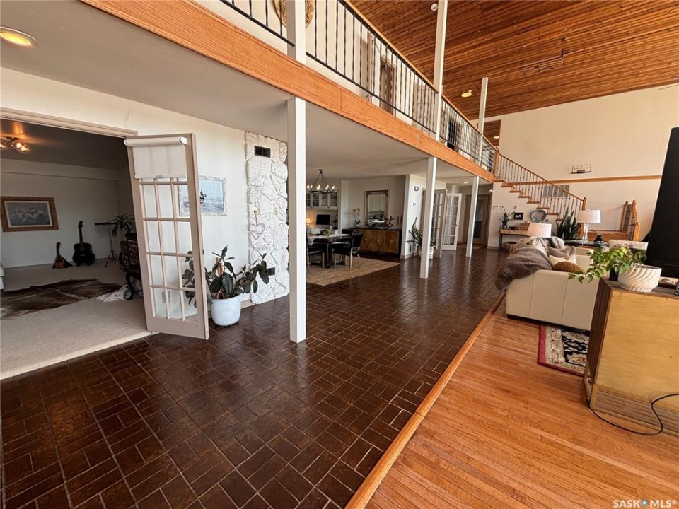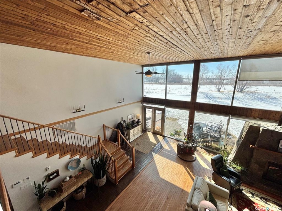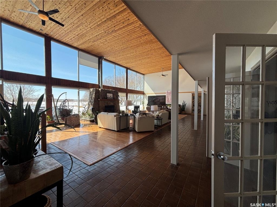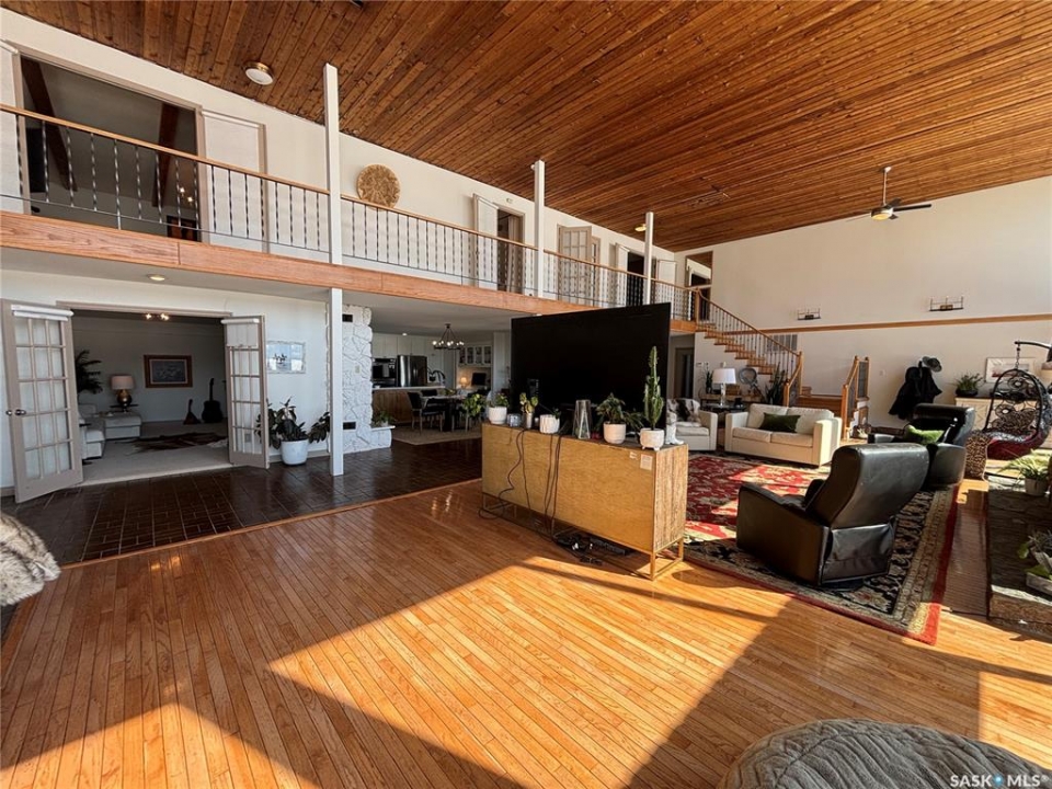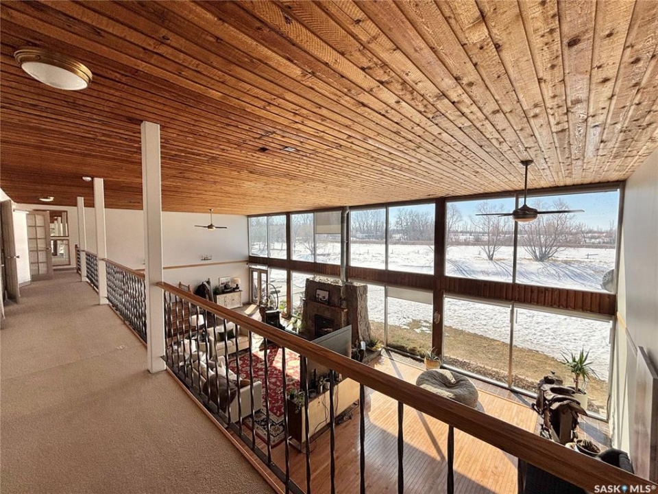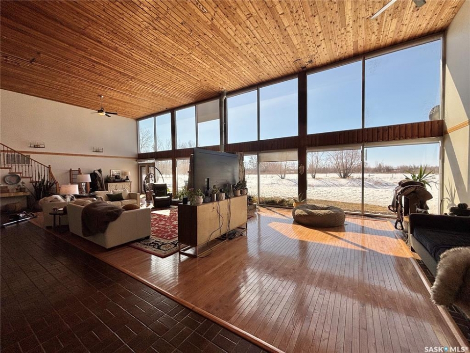 This property offers a rare combination of peaceful country living and modern amenities! Step inside to a bright, open-concept layout with soaring ceilings, expansive south-facing windows that flood the space with natural light and a welcoming feel. The living room is the heart of the home, featuring a stunning fireplace and room to create multiple spaces in one. The newly renovated kitchen blends modern design and everyday function. Complete with updated cabinetry, stainless steal appliances, plenty of quartz counter space, designated desk area and a large walk in pantry. Open to the dining room and living area is the perfect spot for family suppers and or entertaining!!! There is a family room and office with French doors off the main area and a three piece bath plus a dry sauna to finish off the main floor!!! Upstairs there are two good sized bedrooms, 4 piece bath and a designated laundry room! Two direct entry garages and a large sunroom that can be used for storage or a green house if you wish.The large primary bedroom has a walk in closet, beautiful decorative fireplace, wood beams and a three piece bath. Patio doors lead you out to your own oasis with a hydro pool so you can cool off or warm up in every season. The picturesque acreage has equestrian-ready amenities including a barn, riding pen and fenced areas—ideal for horse enthusiasts. Enjoy quiet mornings, wide-open skies, and the beauty of nature right at your doorstep. With 16.31 acres there's plenty of room to create whatever you wish.