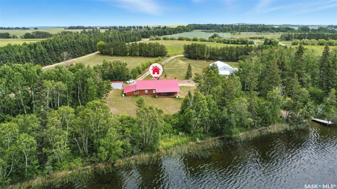 Welcome to this one and kind waterfront private acreage located at Fish Lake, SK offers a serene and picturesque setting. The property spans across 4.99 acres The house was built in 2016 and boast over 1800 sq ft with three spacious bedrooms. The open concept kitchen has plenty of cupboard and counter space with island. Master bedroom has 5pc bathroom! House is equipped with in floor radiant heat and wood burning stove for supplement heat. Head on out the living room door to back deck overlooking the lake. The property numerous outbuilding for storage and wood cutting station. The house is equipped with a well and a septic tank. The property has large heated shop measuring 33 X 38 and heated attached garage. There is no public reserve on the lake front and the well is under ground spring fed.