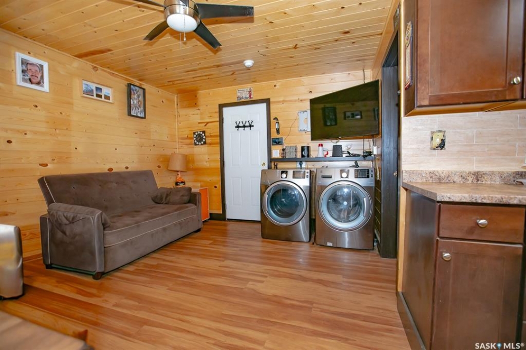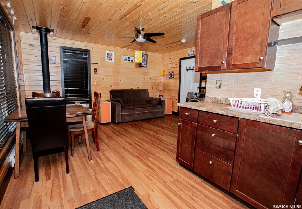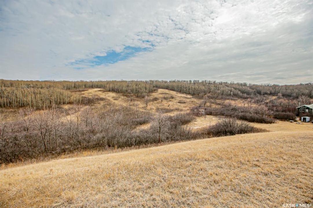 Unique property located approximately 33kms from North Regina. This opportunity includes 39'x39' quonset with concrete floor. 14'x10' door with 12' walls. 200 amp electrical service. Home is setup with wood stove and electric baseboard heaters. Main level includes functional kitchen, dining area with adjacent living-room. Four piece bathroom. Bedroom (is framed into a portion of the quonset) allows direct access into quonset. Yard site blends the sunset views into the valley plus the natural hillside with atv/walking trailers and plenty of natural bush.