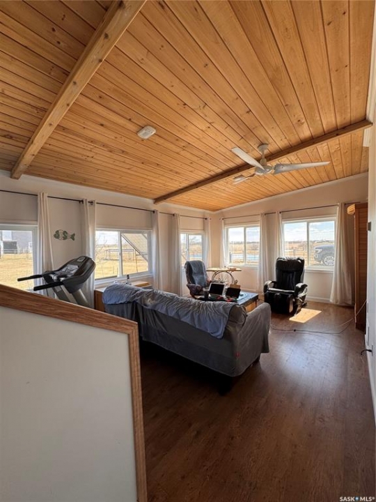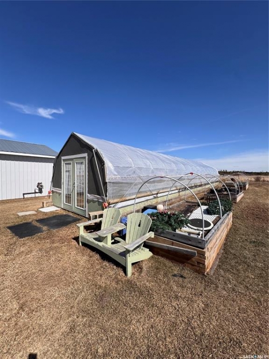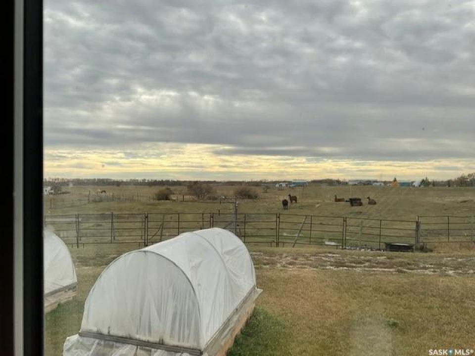 Set along Highway 10 between Balgonie and Fort Qu'Appelle, this 35.71-acre acreage offers the ideal blend of rural living and convenience—just 20 minutes from Regina with quick access to year-round recreation in the Qu'Appelle Valley. Well-suited for a hobby farm or small-scale livestock operation, the property features perimeter and cross fencing, along with a dugout water supply. The yard site is well-equipped with a shop, barn, quonset, greenhouse, and a converted 2-car garage currently set up as a chicken coop. The 1,512 sq ft bungalow is well-maintained, and full of potential. The open-concept kitchen, dining, and living area is highlighted by vaulted ceilings, a large island, ample cabinetry, and a walk-in pantry. A sunken living room with a stone natural gas fireplace and large east-facing windows creates a warm, inviting space. The home currently offers 1 bedroom and 1 bathroom, with the east-facing sunroom providing an excellent opportunity to easily add a second bedroom. Notable upgrades include a solar and wind power system that operates independently of SaskPower, helping reduce power costs by approximately $100 per month according to the Sellers, and a high-end Multi-Pure membrane RO water filtration system. Essential services include natural gas, power, well water, SaskTel, and a lagoon sewer system. A versatile acreage with incredible access, natural beauty, and an easy commute—ideal for those looking to enjoy the rural lifestyle without sacrificing accessibility.