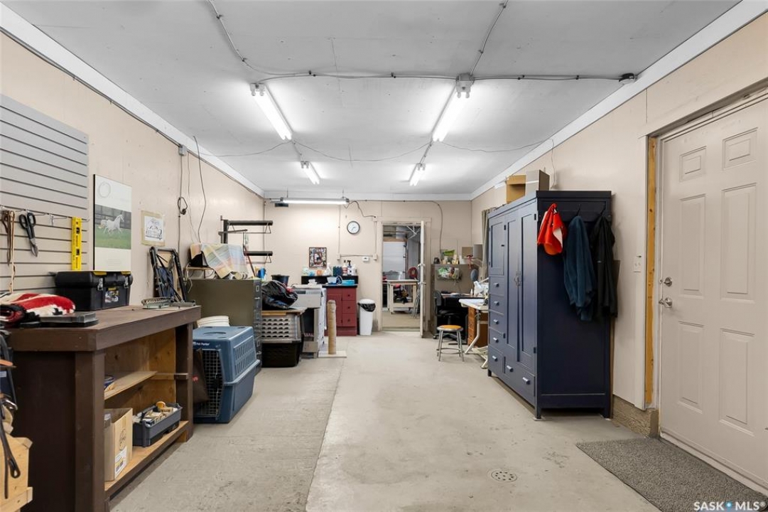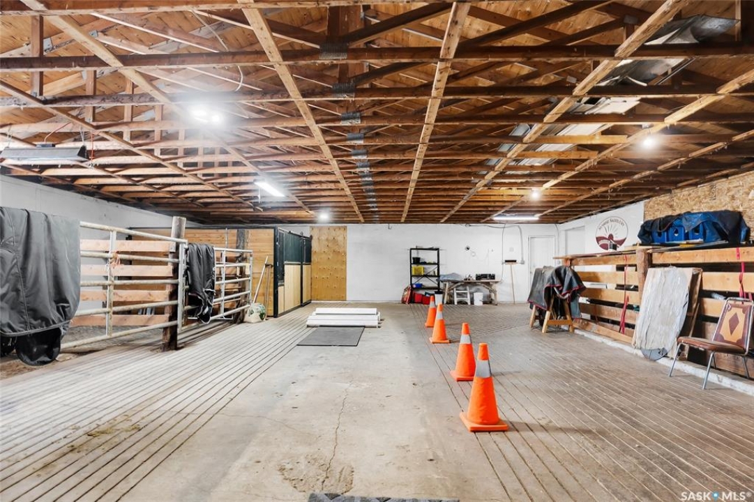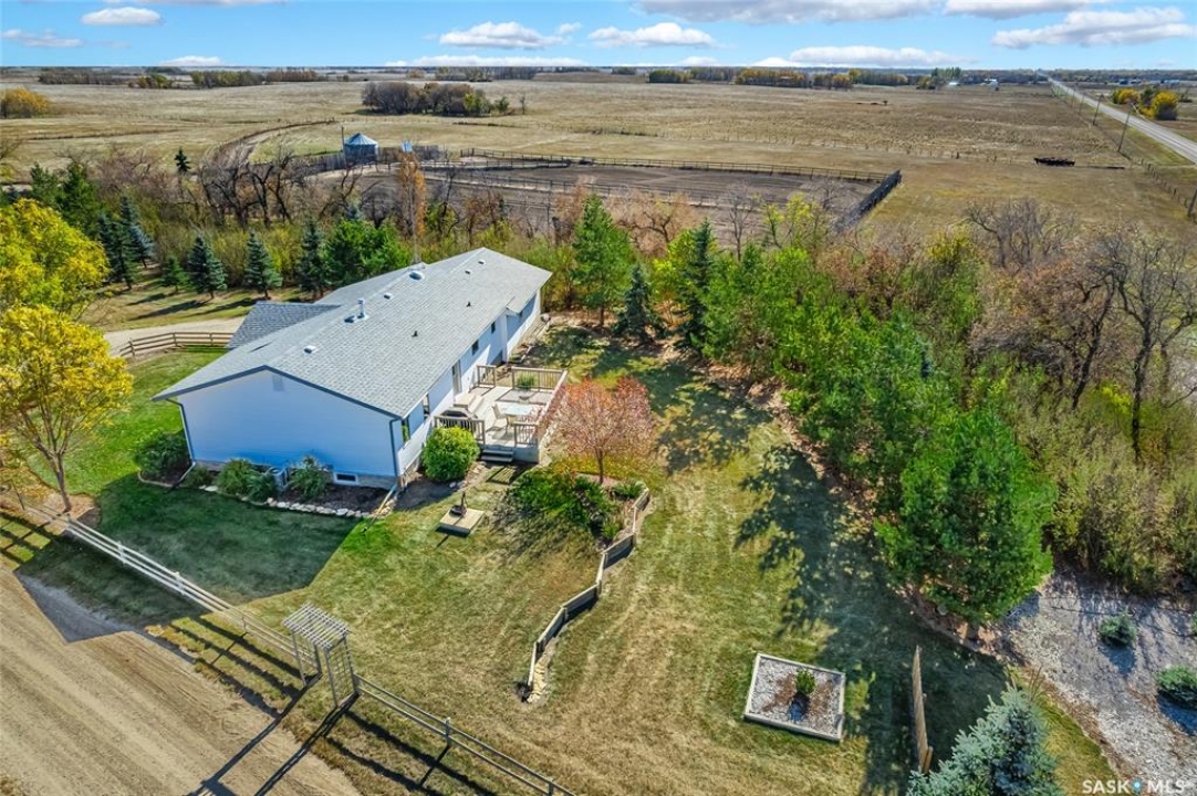 This well established equestrian acreage west of Saskatoon offers the space and functionality that horse owners are searching for. This property has been cared for by the same owner for 21 years, with thoughtful improvements made over time to support both comfortable living and a working country property. The yard is beautifully matured with established trees, creating a private, sheltered setting. The equine setup is extensive and ready to use, featuring a large arena that can be split, 7 corrals, 5 water bowls, a hydrant, and multiple shelters including a large livestock shelter and hay storage. The former dairy barn has been upgraded with metal siding and offers a versatile space with a generous tack room and room to expand your setup if needed. A heated shop and separate workshop adds even more flexibility, ideal for hobbies, projects, or business use. The 1,266 sq. ft. home built by Warman Homes offers a functional layout with 3 bedrooms up and a finished basement, providing additional living space, a 3-piece bath, a bedroom, and a large storage area/den. If desired, it would not be hard to turn the den into an additional bedroom. Numerous updates have been completed over the years, including all new flooring, fresh paint throughout, updated bathrooms (March 2023), newer shingles, updated window panes, and a newer hot water tank (2020/2022). Water systems have also been upgraded with a reverse osmosis system (approx. 3 years), water softener (5 years), and a new well pump (2022). Outside, enjoy both front and back decks, irrigation to the trees, and fencing set up with a combination of 3 & 4 strand barbed wire. The property offers plenty of room to expand or tailor the setup to your specific needs. Services include natural gas, a well water system, and septic surface pump out. This is a great opportunity to step into a well developed acreage ideal for horse owners, hobby farmers, or anyone looking to enjoy country living without starting from scratch.