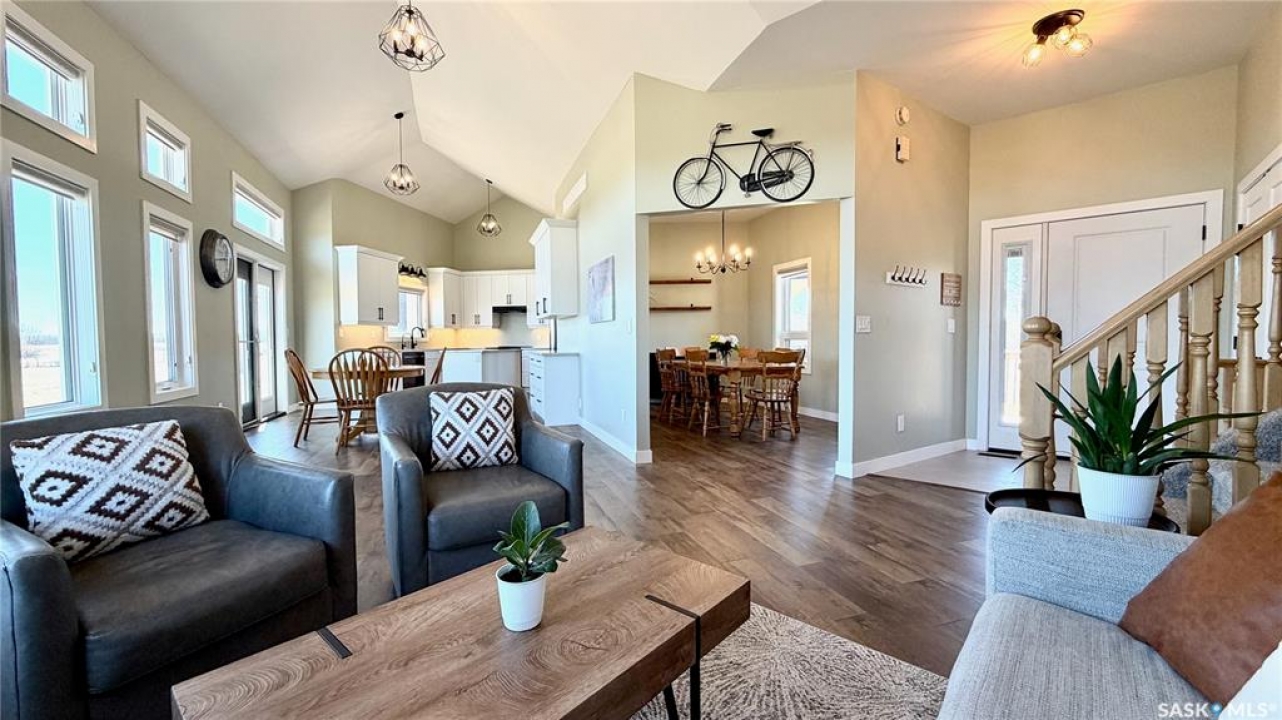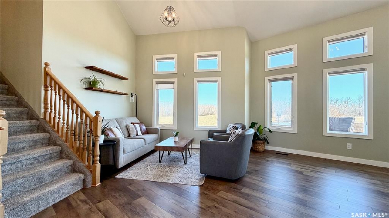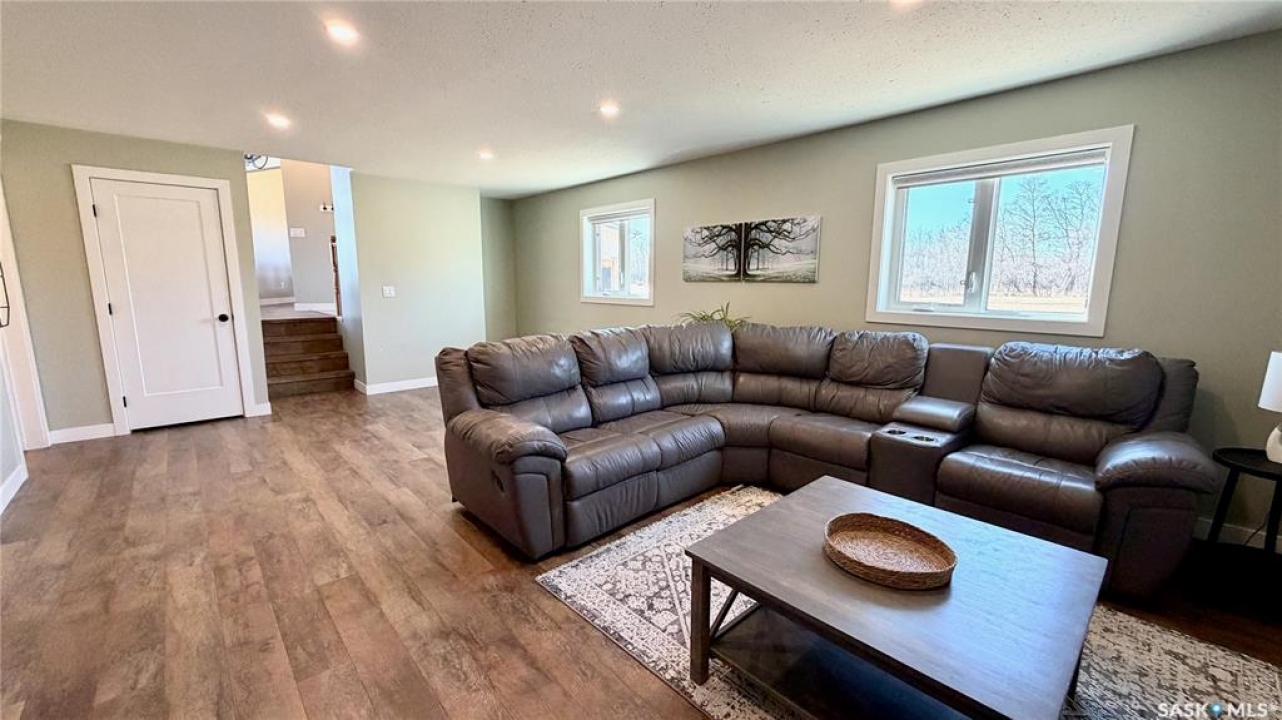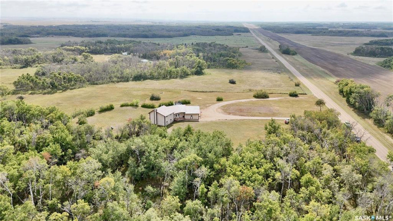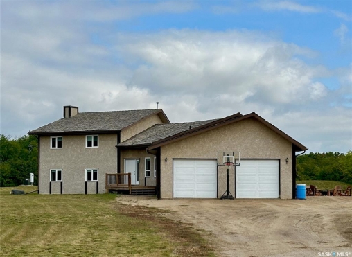 Acreages like this don't come along twice. Set on 28.2 heavily treed acres just 15 minutes from Saskatoon and 10 minutes to Dundurn, this fully renovated two-storey split delivers the privacy, space, and convenience buyers chase for years but rarely find. With over 2,200 sq ft above grade plus 400 sq ft of undeveloped basement, there's room here to grow, including the potential for a fifth bedroom, fifth bathroom, and additional living space. Step inside to a large welcoming foyer that opens into a stunning vaulted main living area, where a wall of southeast-facing windows floods the space with natural light. The layout balances everyday function with entertaining, offering an eat-in kitchen alongside a separate cozy dining room. Upstairs features three spacious bedrooms and two bathrooms, including a primary suite with a walk-in closet and custom walk-in shower, while the additional bedrooms are generously sized with excellent storage. The third level is where this home really separates itself, with a massive family and games area that feels bright and open thanks to oversized windows from the raised design. This level also includes a fourth bedroom, full bathroom, and a large dedicated laundry room. The basement remains undeveloped, giving you the flexibility to finish it exactly how you want. Nearly every inch of this home has been completely redone to the feel of new construction, from the custom kitchen, countertops, and brand-new appliances to flooring, trim, paint, and fully renovated bathrooms. Mechanical updates and septic upgrades have also been completed. The property is serviced by a well, with a public waterline already at the ditch for future connection if desired. Surrounded by mature trees and offering a setting that simply can't be recreated, this is a rare opportunity to own a private, turnkey acreage in a location that continues to grow in demand.