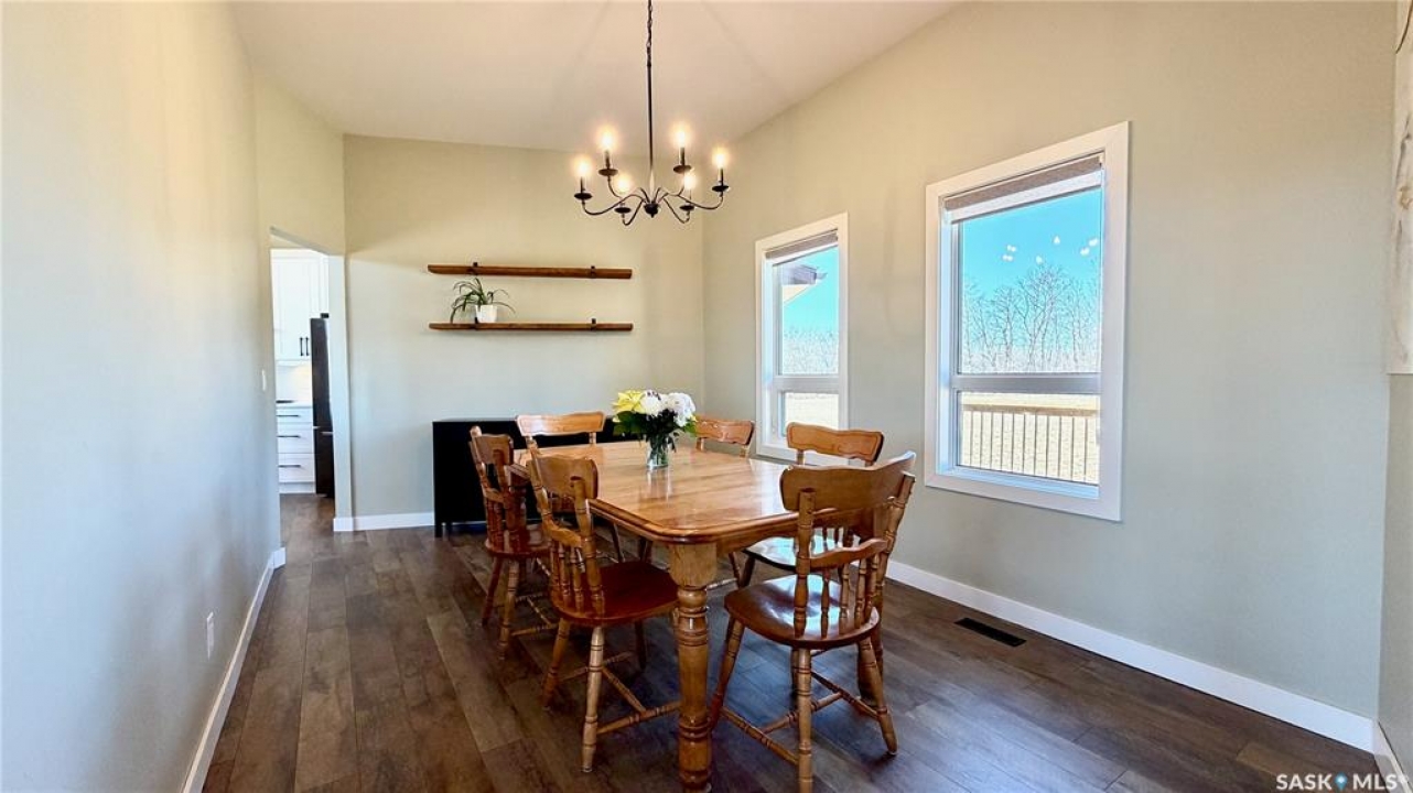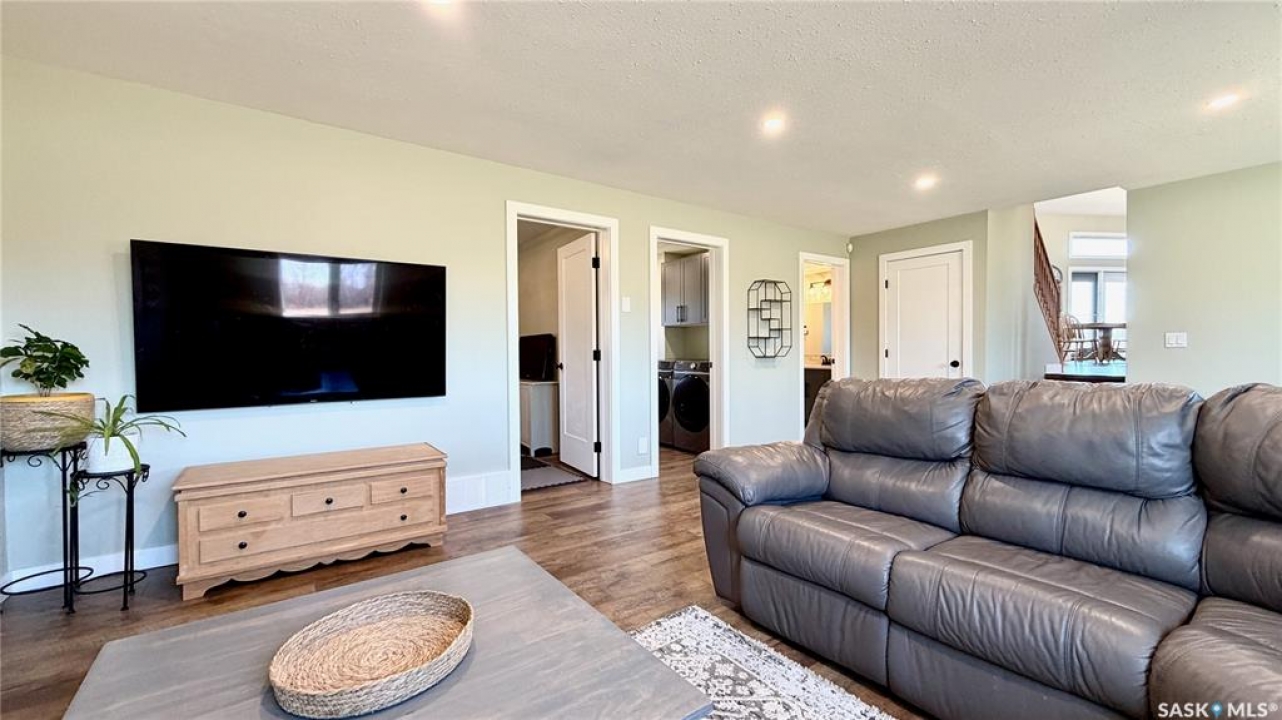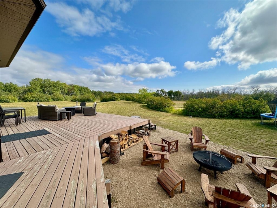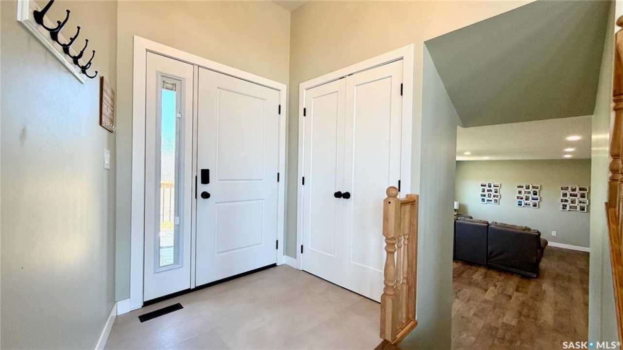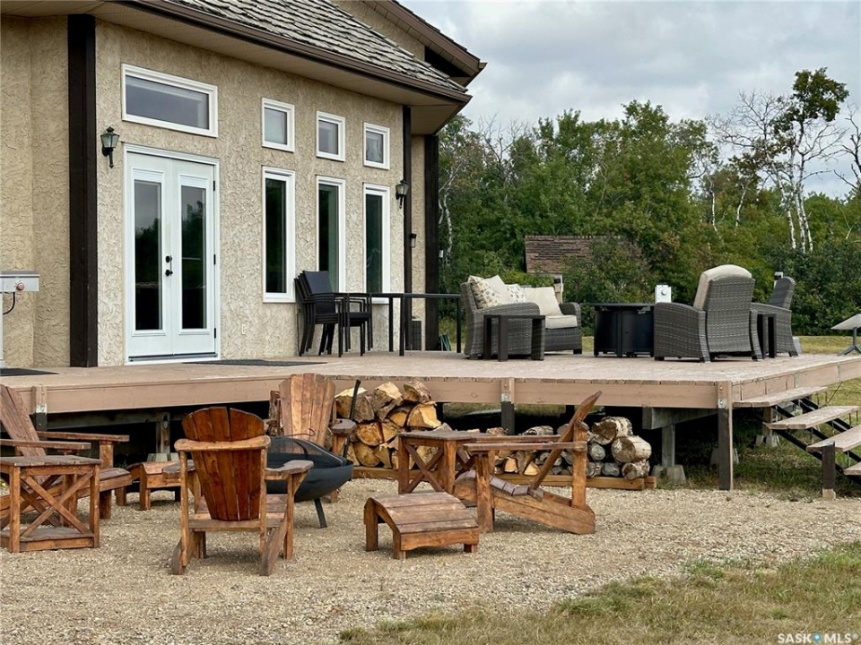 Acreages like this don't come along twice. Set on 28.2 heavily treed acres just 15 minutes from Saskatoon and 10 minutes to Dundurn, this fully renovated two-storey split delivers the privacy, space, and convenience buyers chase for years but rarely find. With over 2,200 sq ft above grade plus 400 sq ft of undeveloped basement, there's room here to grow, including the potential for a fifth bedroom, fifth bathroom, and additional living space. Step inside to a large welcoming foyer that opens into a stunning vaulted main living area, where a wall of southeast-facing windows floods the space with natural light. The layout balances everyday function with entertaining, offering an eat-in kitchen alongside a separate cozy dining room. Upstairs features three spacious bedrooms and two bathrooms, including a primary suite with a walk-in closet and custom walk-in shower, while the additional bedrooms are generously sized with excellent storage. The third level is where this home really separates itself, with a massive family and games area that feels bright and open thanks to oversized windows from the raised design. This level also includes a fourth bedroom, full bathroom, and a large dedicated laundry room. The basement remains undeveloped, giving you the flexibility to finish it exactly how you want. Nearly every inch of this home has been completely redone to the feel of new construction, from the custom kitchen, countertops, and brand-new appliances to flooring, trim, paint, and fully renovated bathrooms. Mechanical updates and septic upgrades have also been completed. The property is serviced by a well, with a public waterline already at the ditch for future connection if desired. Surrounded by mature trees and offering a setting that simply can't be recreated, this is a rare opportunity to own a private, turnkey acreage in a location that continues to grow in demand.