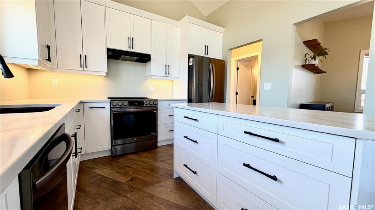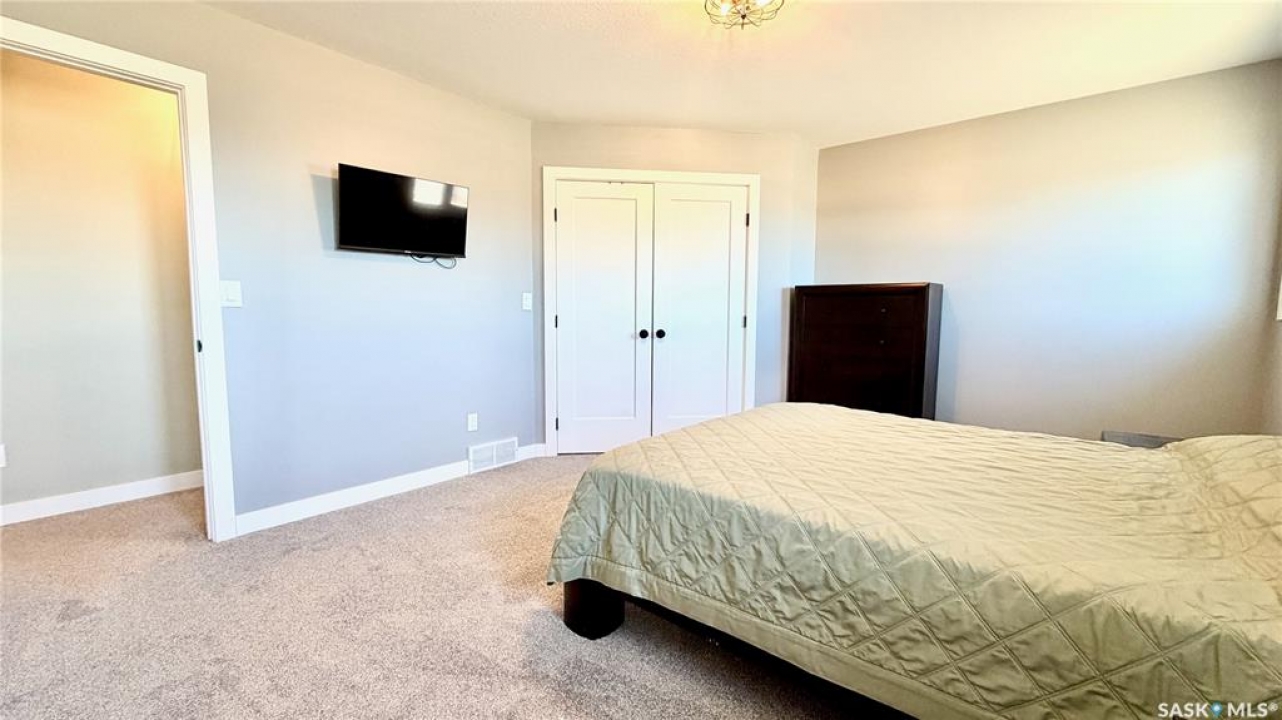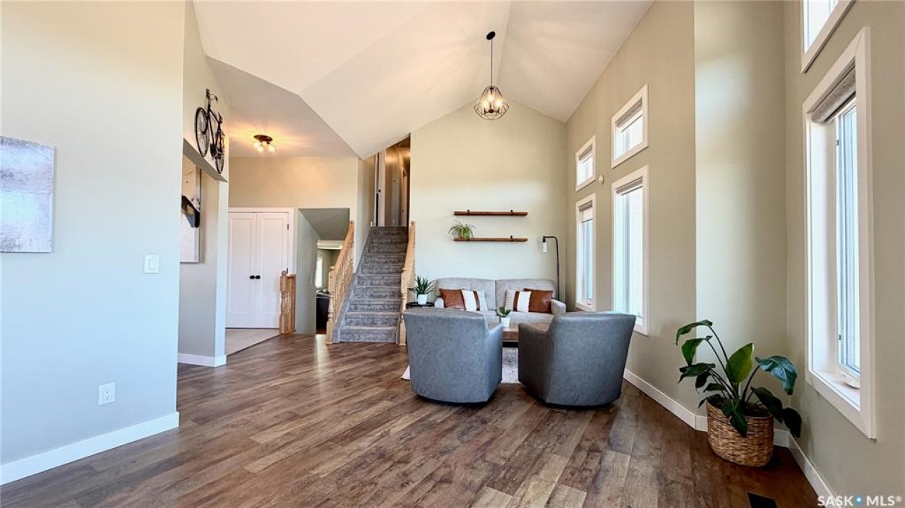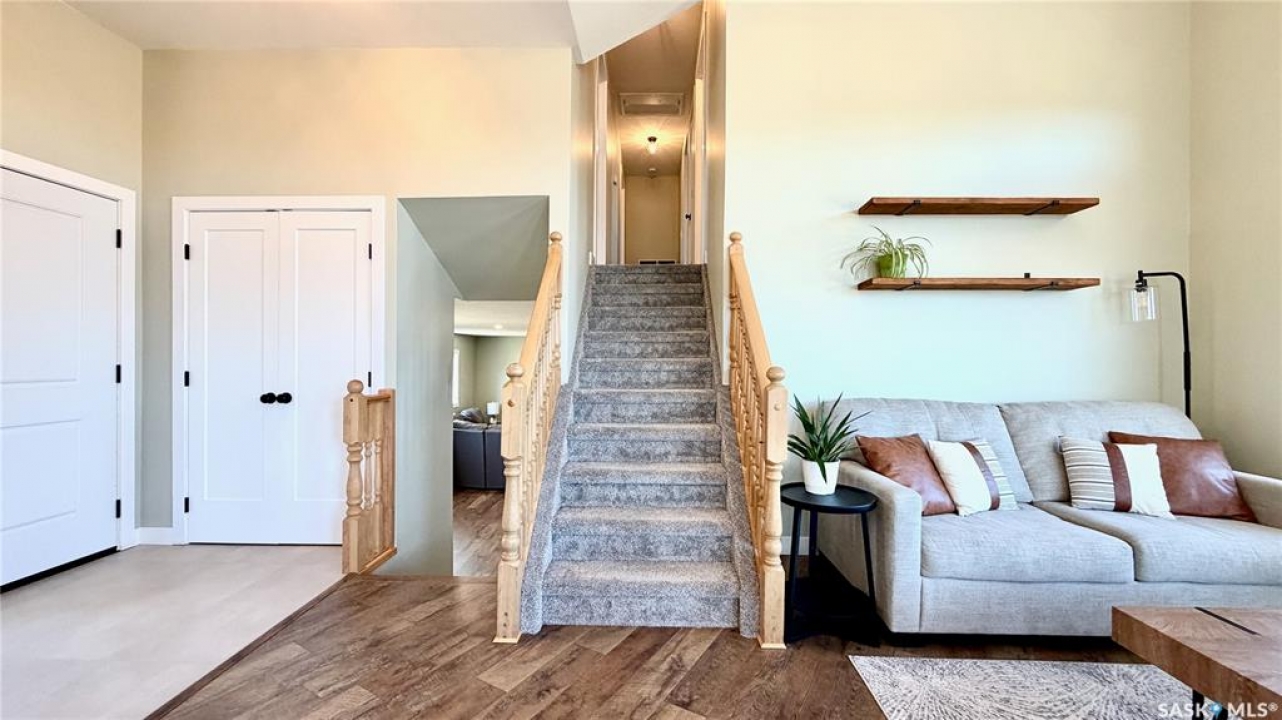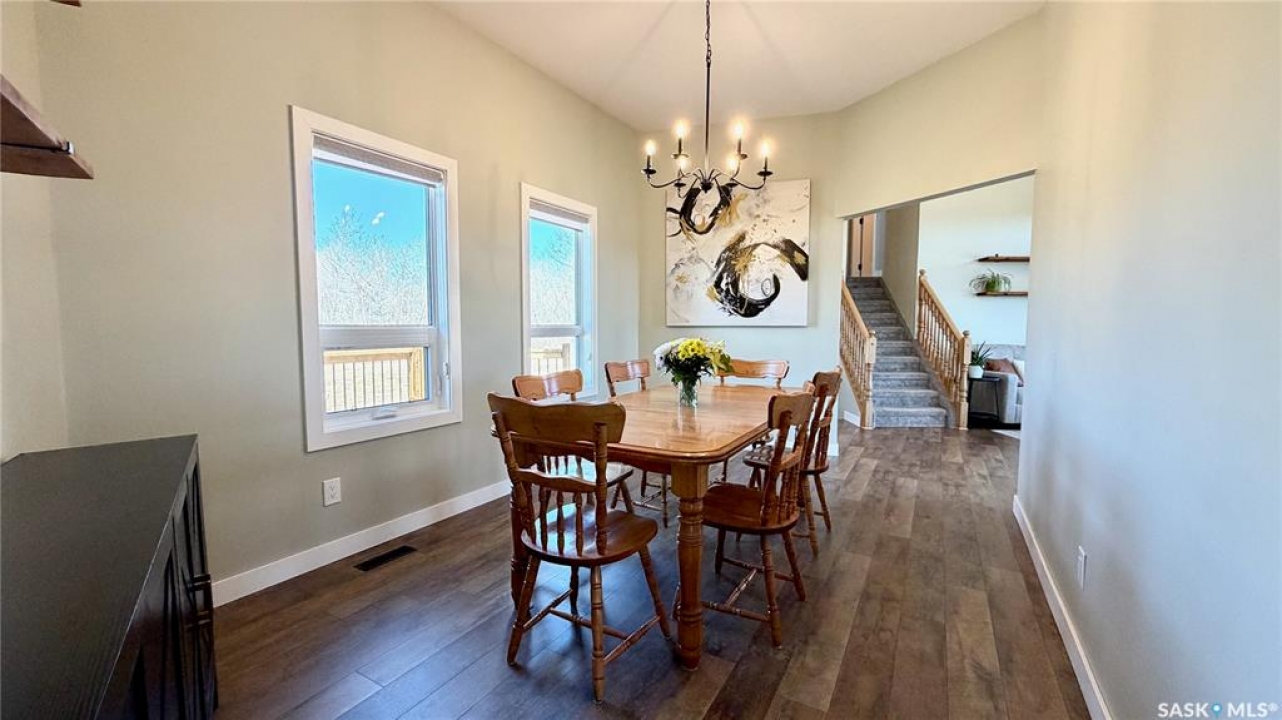 Acreages like this don't come along twice. Set on 28.2 heavily treed acres just 15 minutes from Saskatoon and 10 minutes to Dundurn, this fully renovated two-storey split delivers the privacy, space, and convenience buyers chase for years but rarely find. With over 2,200 sq ft above grade plus 400 sq ft of undeveloped basement, there's room here to grow, including the potential for a fifth bedroom, fifth bathroom, and additional living space. Step inside to a large welcoming foyer that opens into a stunning vaulted main living area, where a wall of southeast-facing windows floods the space with natural light. The layout balances everyday function with entertaining, offering an eat-in kitchen alongside a separate cozy dining room. Upstairs features three spacious bedrooms and two bathrooms, including a primary suite with a walk-in closet and custom walk-in shower, while the additional bedrooms are generously sized with excellent storage. The third level is where this home really separates itself, with a massive family and games area that feels bright and open thanks to oversized windows from the raised design. This level also includes a fourth bedroom, full bathroom, and a large dedicated laundry room. The basement remains undeveloped, giving you the flexibility to finish it exactly how you want. Nearly every inch of this home has been completely redone to the feel of new construction, from the custom kitchen, countertops, and brand-new appliances to flooring, trim, paint, and fully renovated bathrooms. Mechanical updates and septic upgrades have also been completed. The property is serviced by a well, with a public waterline already at the ditch for future connection if desired. Surrounded by mature trees and offering a setting that simply can't be recreated, this is a rare opportunity to own a private, turnkey acreage in a location that continues to grow in demand.