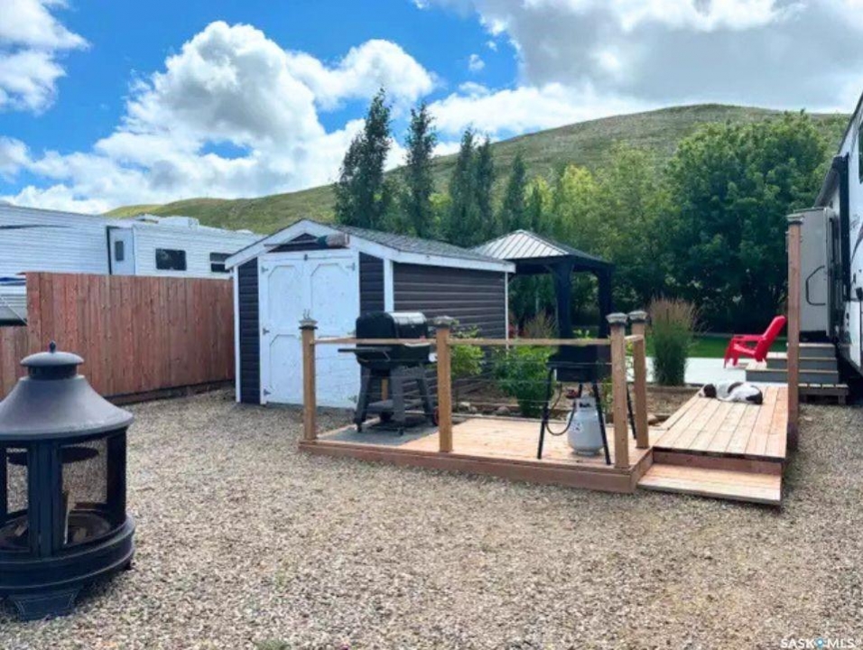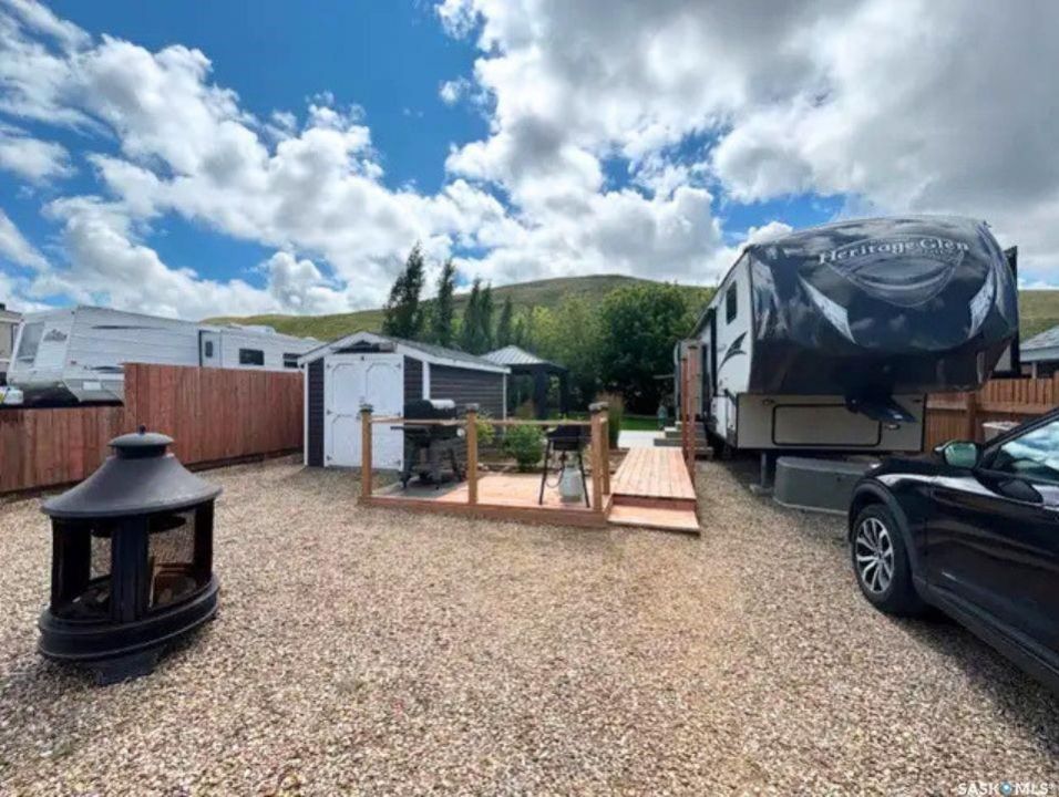 Looking for your own seasonal getaway at Lac Pelletier Regional Park? This beautifully developed lease lot offers the chance to enjoy the 2026 camping season and many years to come in one of Saskatchewan's most popular regional parks. The secure lease runs to December 31, 2044 and includes an automatic 25 year renewal clause, offering long term peace of mind. Designed for both relaxing and entertaining, the lot features a large concrete patio with gazebo plus a separate wood patio area ideal for your BBQ and outdoor cooking setup. The spacious grassed yard is framed by mature and maturing trees, creating privacy, shade, and a welcoming outdoor space. A 12 x 10 shed provides great storage, and the large sandbox could easily be repurposed into a fire pit area or additional patio space. An added bonus is the ability to leave your trailer on site year round, with no need for winter storage or the hassle of hauling it back and forth each season. Lac Pelletier Regional Park offers something for everyone, including a 9 hole golf course, licensed clubhouse, on site restaurant and ice cream shop, pickleball courts, disc golf, and a full calendar of community events. The annual lease is $2,300 and includes sewer plus both potable and non potable water. Water service is available from May to October, and electricity is paid separately, historically about $150 per year.